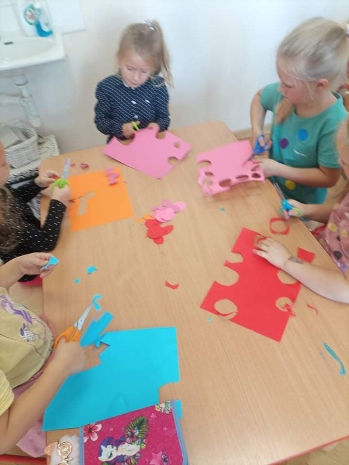 15 września obchodziliśmy święto kreatywności, pokonywania ograniczeń oraz umacniania wiary we własne siły. Dzieci poznały historię Vashti, bohaterki książki "Kropka" Petera H. Reynoldsa. Tego dnia ubrania dzieci i personelu wzbogacone zostały akcentem kropek. Panie zadbały również o bogaty scenariusz zajęć. Były zabawy, tańce oraz piękne prace plastyczne.