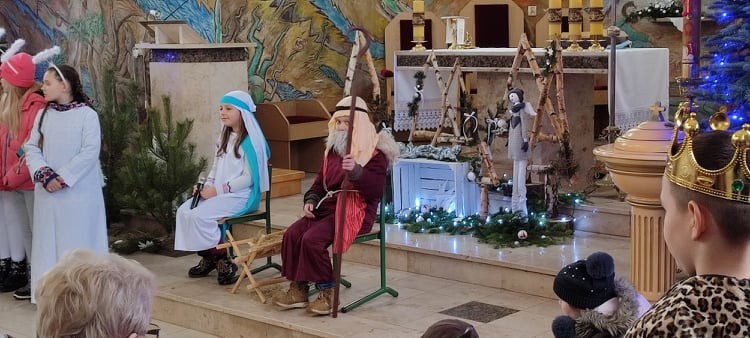 Obecni w kościele po raz kolejny mogli przeżyć historię szukających schronienia Maryi i Józefa, którzy po bezowocnych poszukiwaniach zdecydowali się przenocować w stajence. Jednak to do nich i małego Jezuska przybyli tak honorowi goście jak trzej mędrcy i złożyli dzieciątku pokłon. Całość przedstawienia pokazująca scenki z życia nowonarodzonego dzieciątka, pasterzy, mędrców, dzieci oraz aniołów przeplatana była kolędami i pastorałkami.
