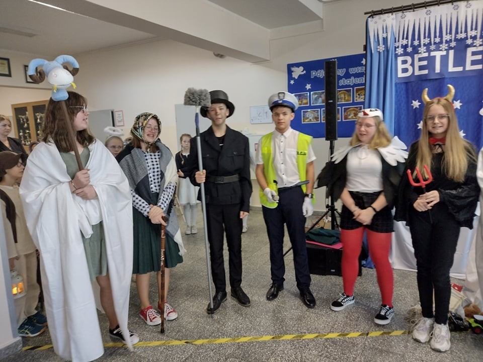 Kolędnicy zawitali również do naszej szkoły. Był Gwiazdor, śmierć, kominiarz, baba , diabeł, bocian, kozioł, policjant, koń, gajowy... Zaśpiewali kolędy i złożyli życzenia świąteczne.