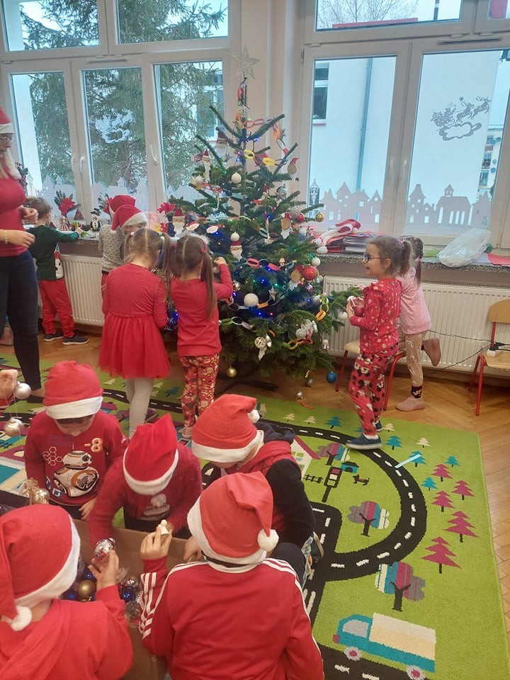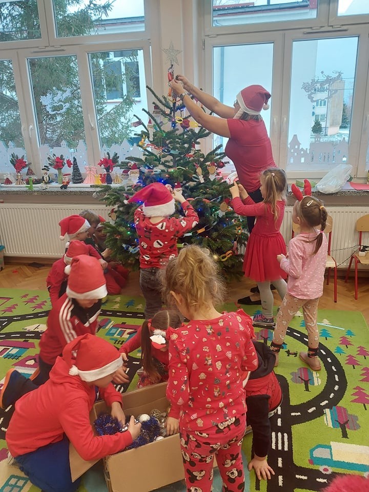 6 grudnia to ulubiony dzień nie tylko naszych przedszkolaków, ale też wszystkich dzieci. Tego dnia obchodzimy Dzień Świętego Mikołaja, bohatera każdego dziecka. To dla niego dzieci ubrane były w piękne mikołajkowe stroje i starały się być grzeczne z obawy przed otrzymaniem rózgi zamiast wymarzonego prezentu. Cały dzień wypełniały wspólne zabawy i piosenki śpiewane dla Mikołaja. Oprócz tego w każdej sali przedszkolnej pojawiło się świąteczne drzewko - choinka, którą dzieci z wielkim entuzjazmem przystroiły. Nie zabrakło także upominków dla dzieci, które były dopełnieniem tego wyjątkowego dnia. W końcu to dzień św. Mikołaja, dobrego biskupa z Miry, który kochał ludzi i obdarowywanie ich prezentami.