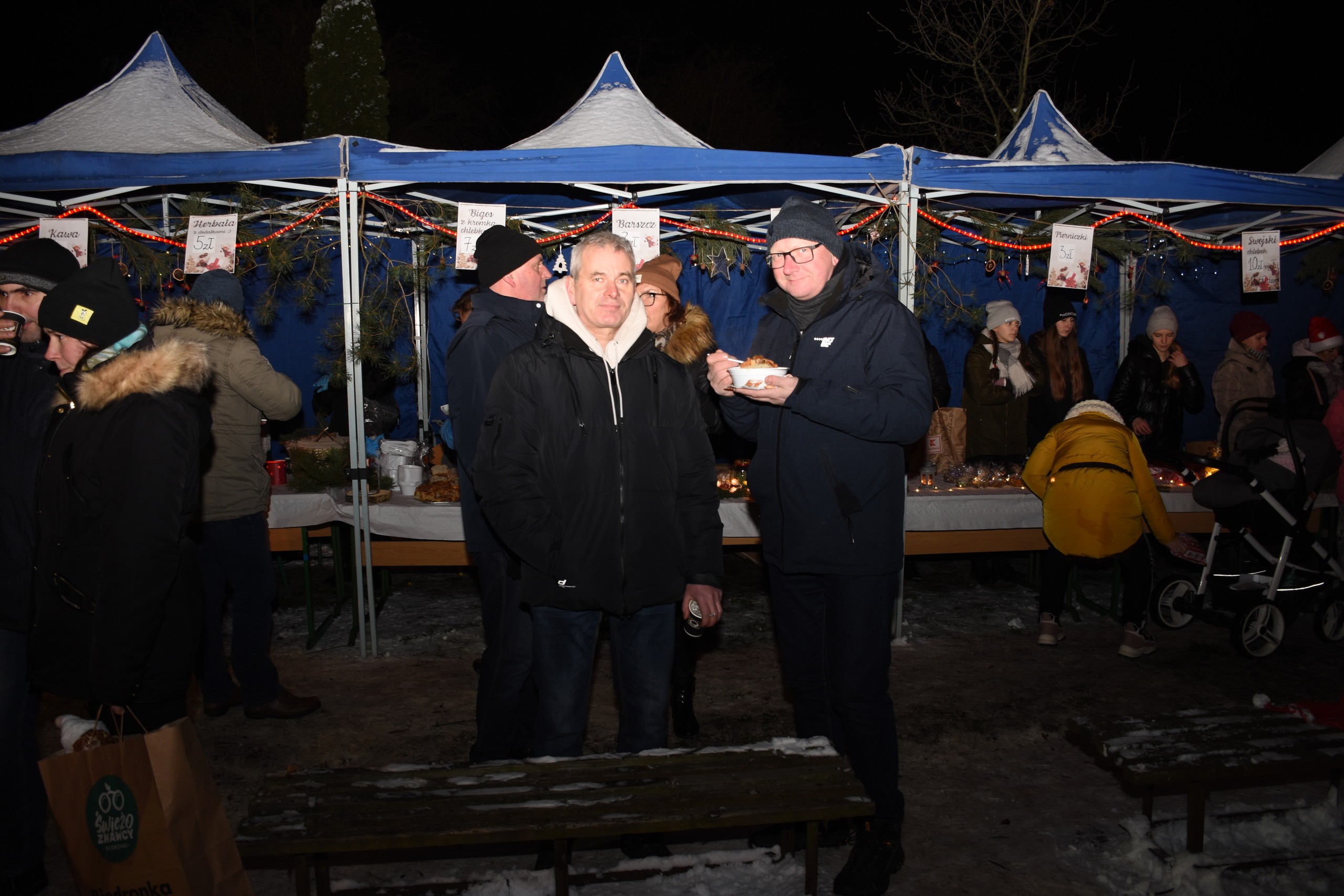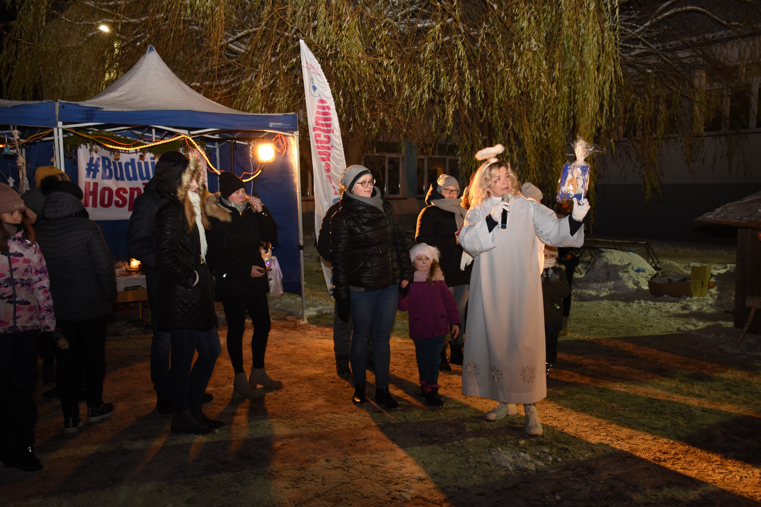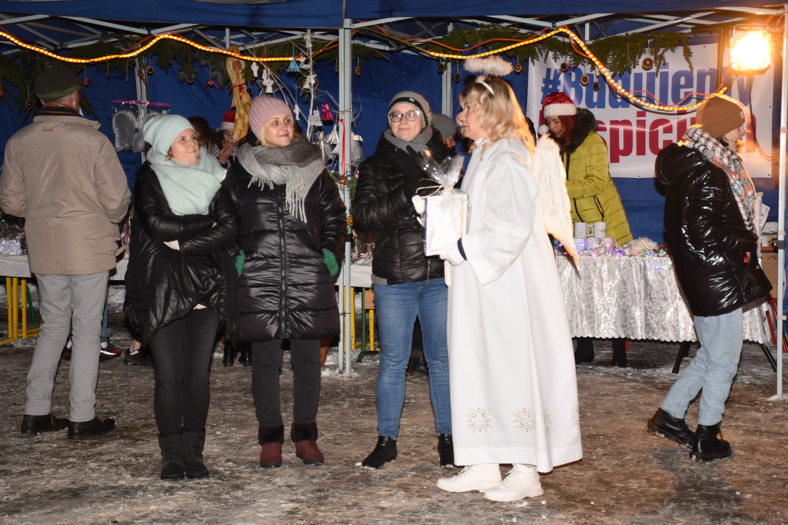 W czasie kiermaszu można było skosztować ciepłe potrawy, ciasta. Odbyła się również licytacja „ cudnych Aniołów”. Piękna sceneria specjalnie przygotowana na tę okoliczność przez niezastąpioną panią Dorotę Studzińską w połączeniu z naturalnym śniegiem, którego sporo tego dnia nasypało dodały tej imprezie magicznego uroku. Dochód z kiermaszu został przeznaczony na budowę Lęborskiego Hospicjum Stacjonarnego w Pogorzelicach, za co dziękowała obecna na imprezie Agata Kozyr szefowa fundacji Lęborskiego Hospicjum Stacjonarnego, zaś członkinie fundacji dzielnie nas wspierały i zagrzewały do działania w czasie kiermaszu.