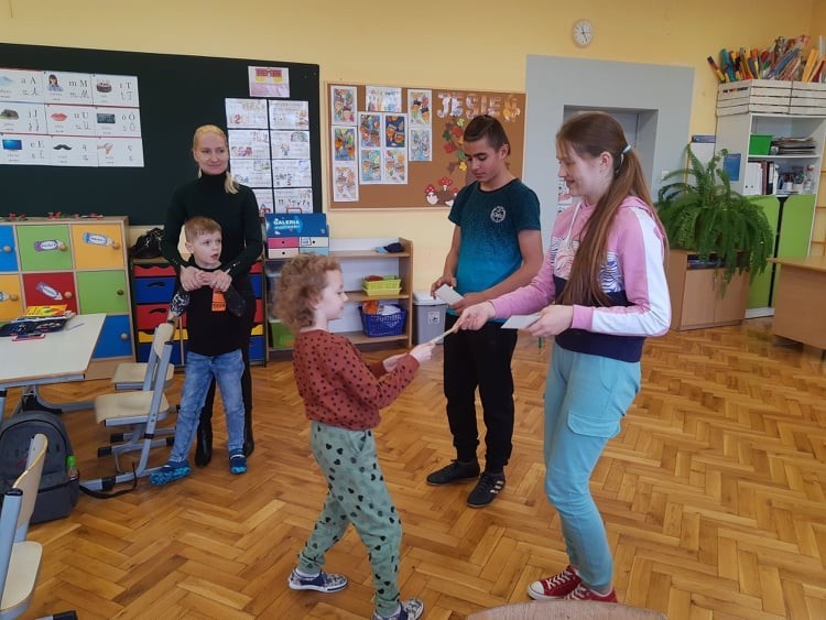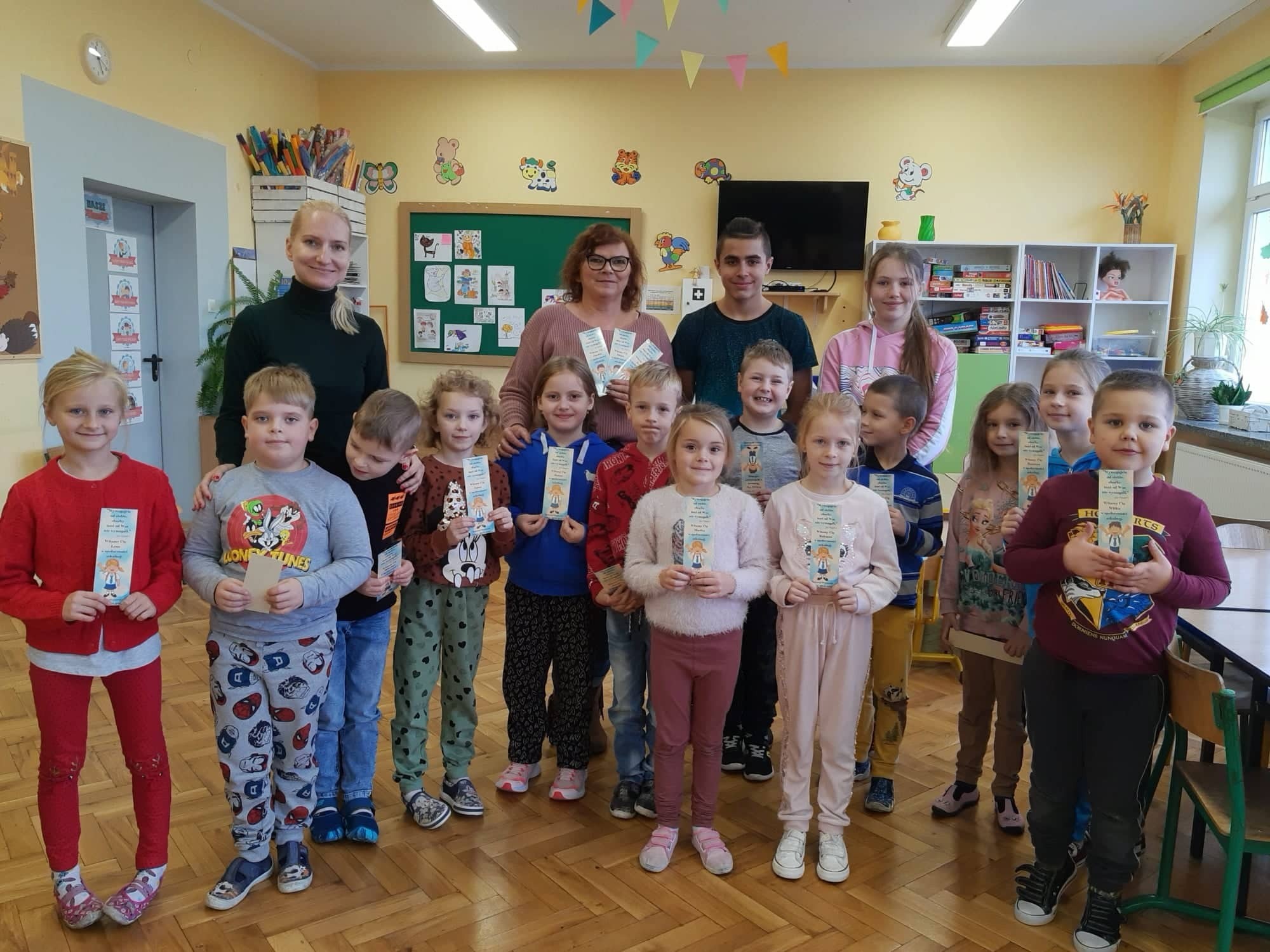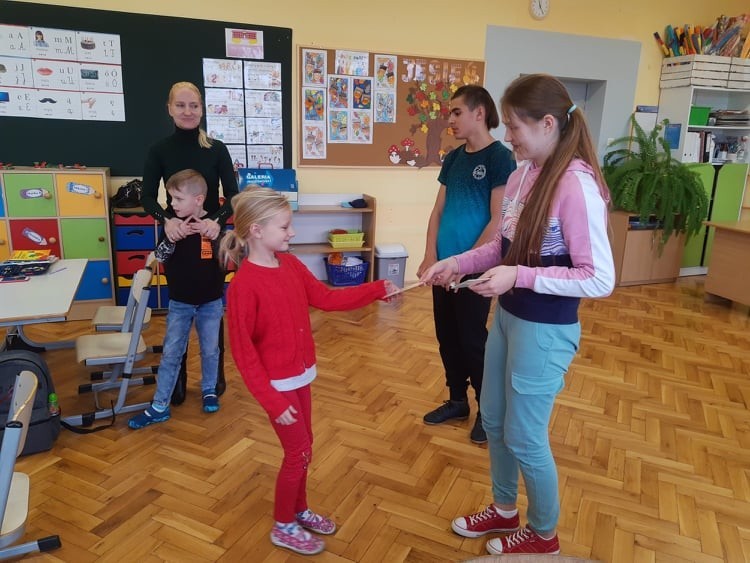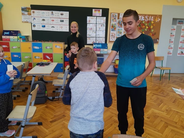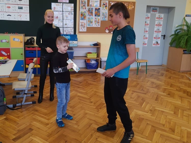 5 listopada przedstawiciele Samorządu Uczniowskiego po uroczystym ślubowaniu powitali uczniów klasy pierwszej w społeczności szkolnej. Starsi koledzy życzyli pierwszakom przyjaźni szkolnych, bardzo dobrych ocen i miłych wrażeń. Pierwszoklasiści obdarowani zostali zakładkami do książek, na których zawarto myśl patrona Naszej szkoły Św. Jana Pawła II: