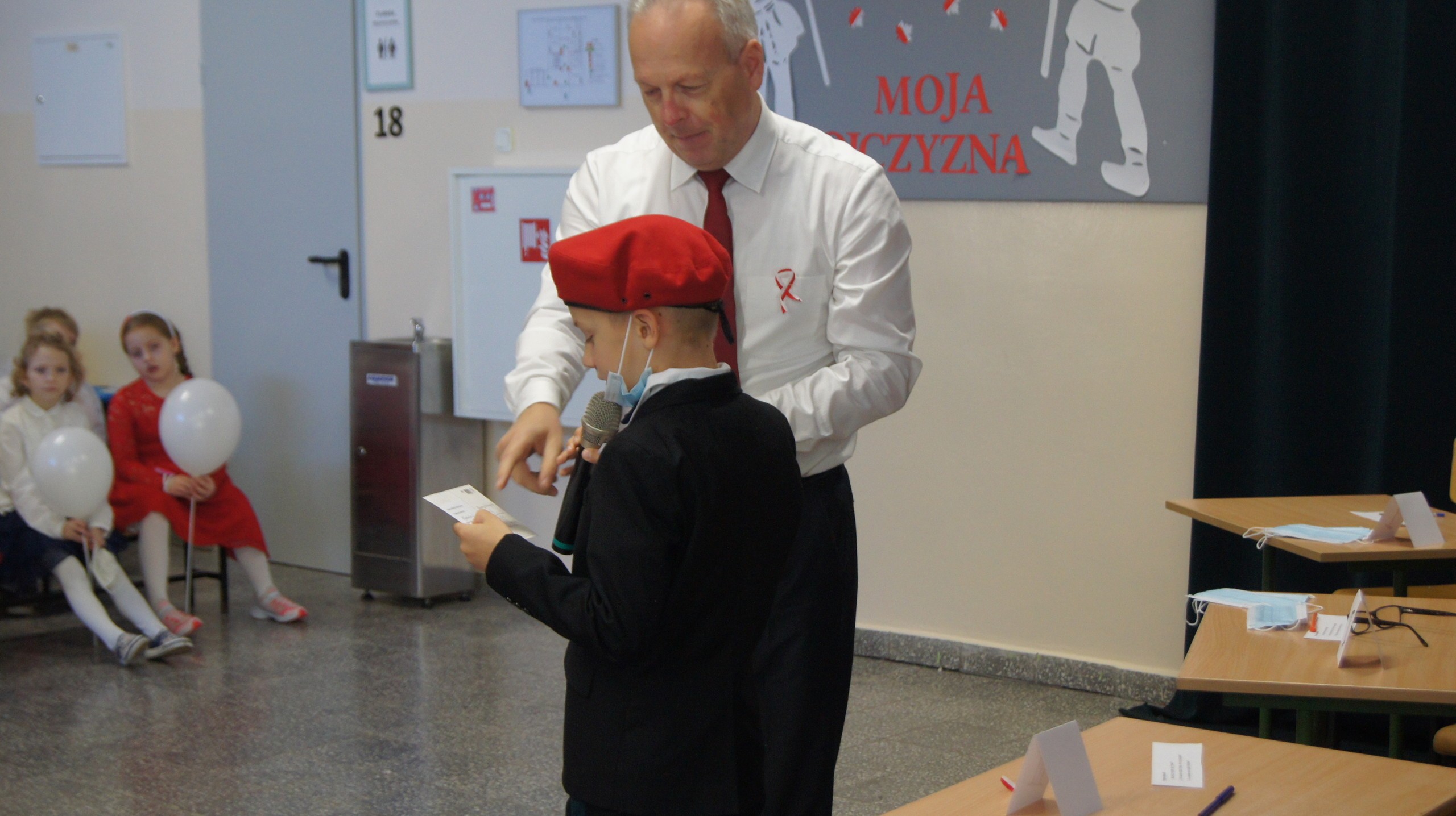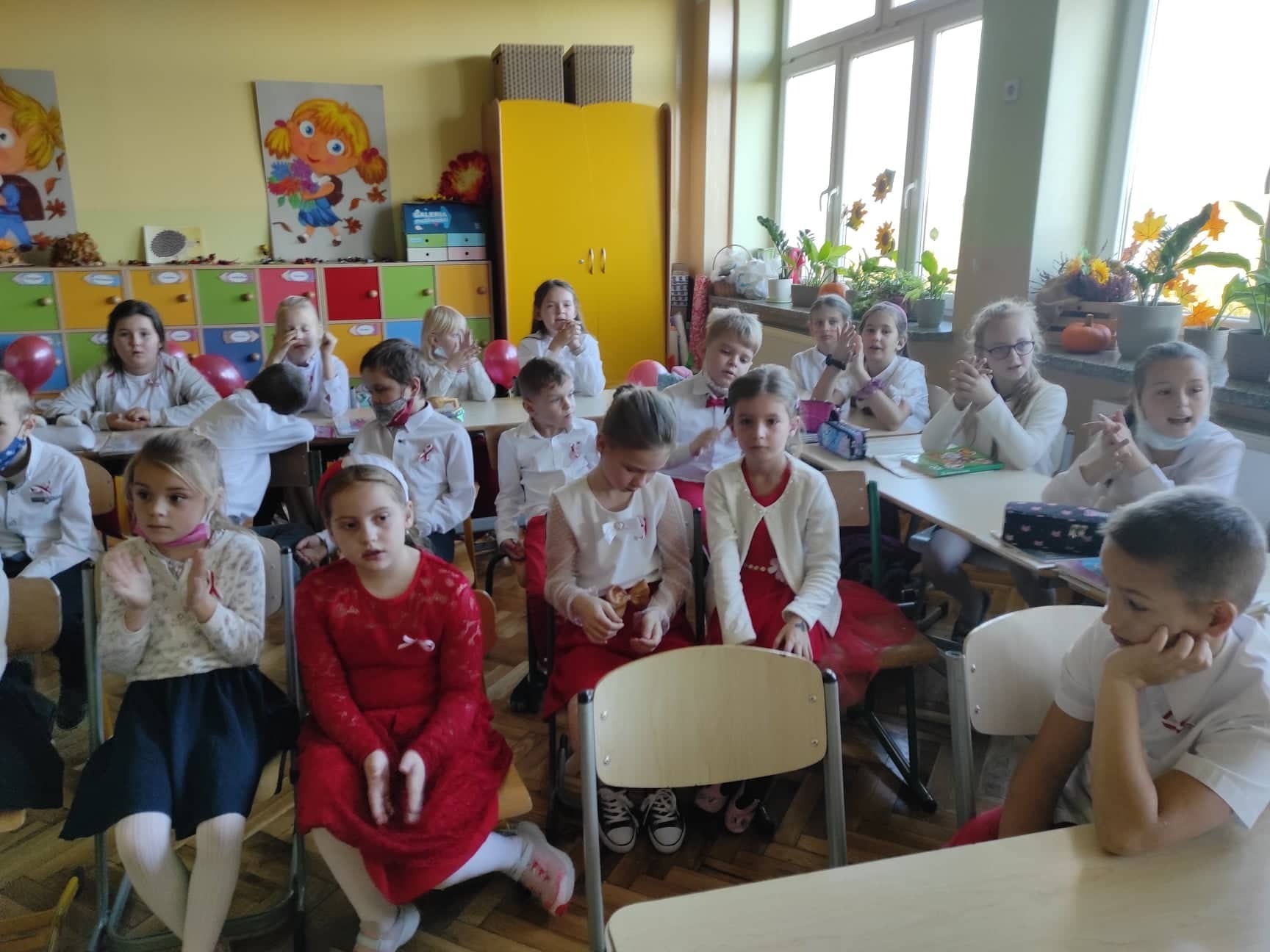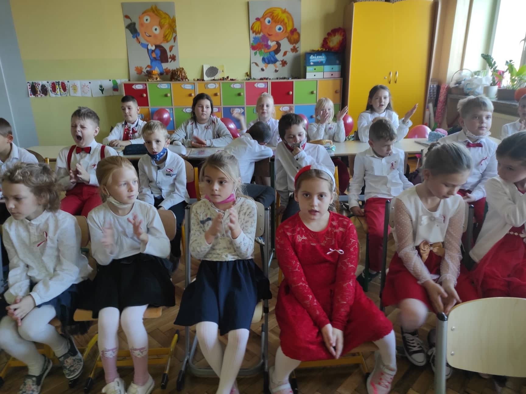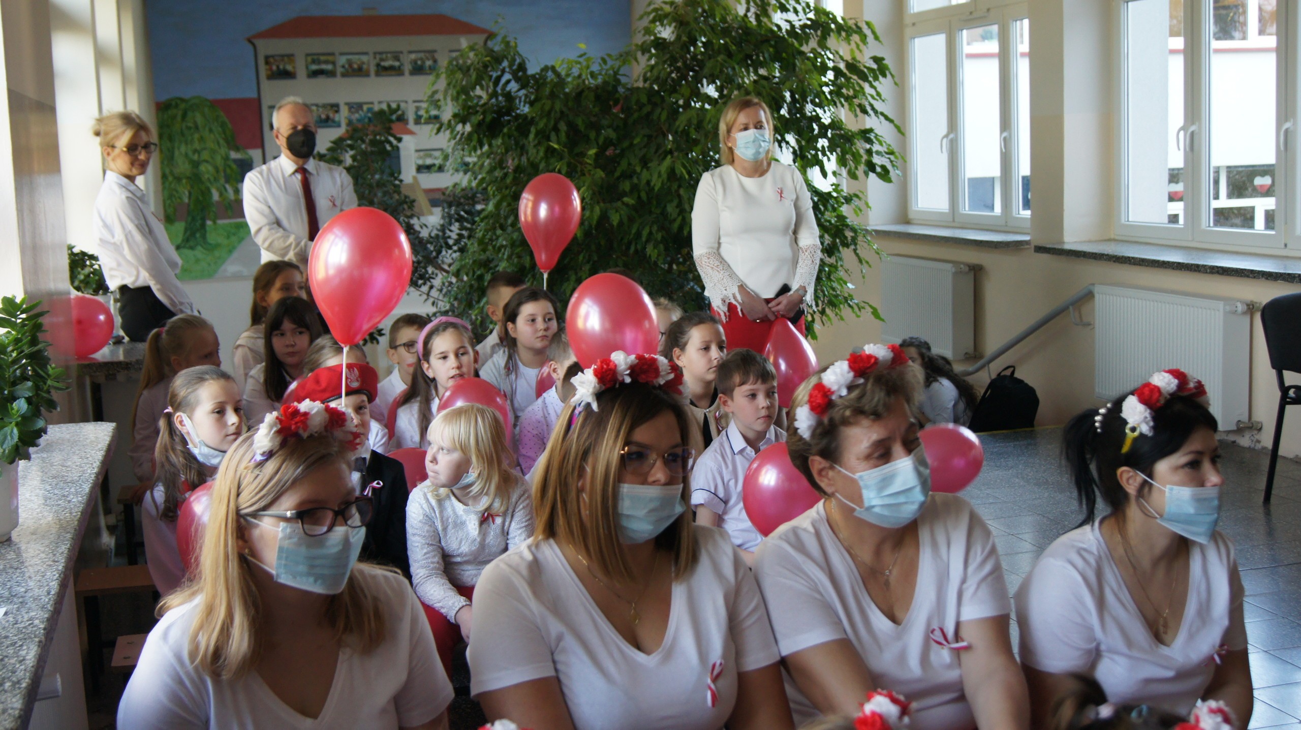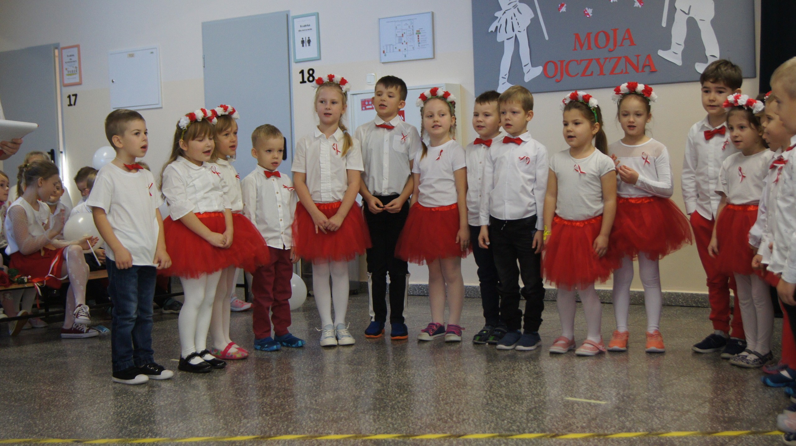 W dniu dzisiejszym społeczność Zespołu Szkół w Łebieniu obchodziła Święto Niepodległości- tym razem- w wesołej formie. Przedszkolaczki, uczniowie i nauczyciele tego dnia czcili święto ubrani w barwy narodowe. Okna naszej szkoły również stały się biało- czerwone. Uroczystość miała formę turnieju- "Za co kocham Cię Polsko?" Już kilka dni wcześniej nasi uczniowie na zajęciach zastanawiali się, za co kochają nasz kraj. Ich odpowiedzi stały się elementem dekoracji. Uroczystość odbyła się w dwóch częściach- oddzielnie dla maluszków i dla starszych uczniów. Zosia i Błażej w roli naszych polskich noblistów- Marii Skłodowskiej- Curie i Henryka Sienkiewicza poprowadzili rozgrywki turniejowe. Każda klasa przygotowała strój patriotyczny, który zaprezentowali wybrani przedstawiciele. Kolejnym zadaniem było udzielenie odpowiedzi na pytania związane z naszym krajem. Zaskoczeniem okazało się zadanie z mapą Polski. Nie zabrakło również pieśni patriotycznych w wykonaniu uczennic klasy VI. Uroku obchodom dodały piosenki i tańce przygotowane przez naszych najmłodszych- przedszkolaczków. Pan dyrektor podzielił się z uczniami wiadomością, którą otrzymał uczeń klasy III- Ksawery Kwidzyński-od uczestniczki Powstania Warszawskiego. Kartka dla Ksawerego jest odpowiedzią na akcję BohaterON, w której nasza szkoła bierze udział od kilku lat.