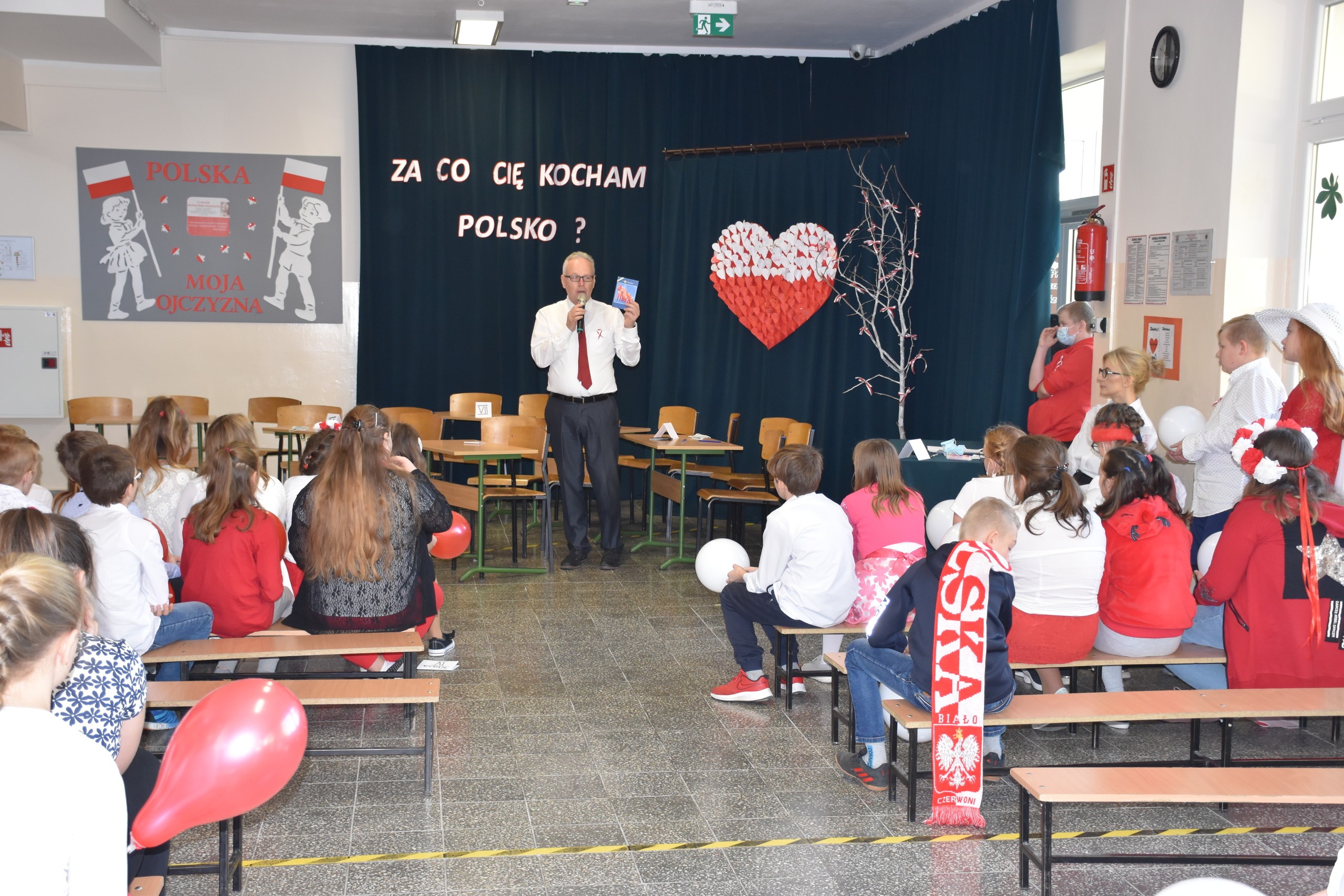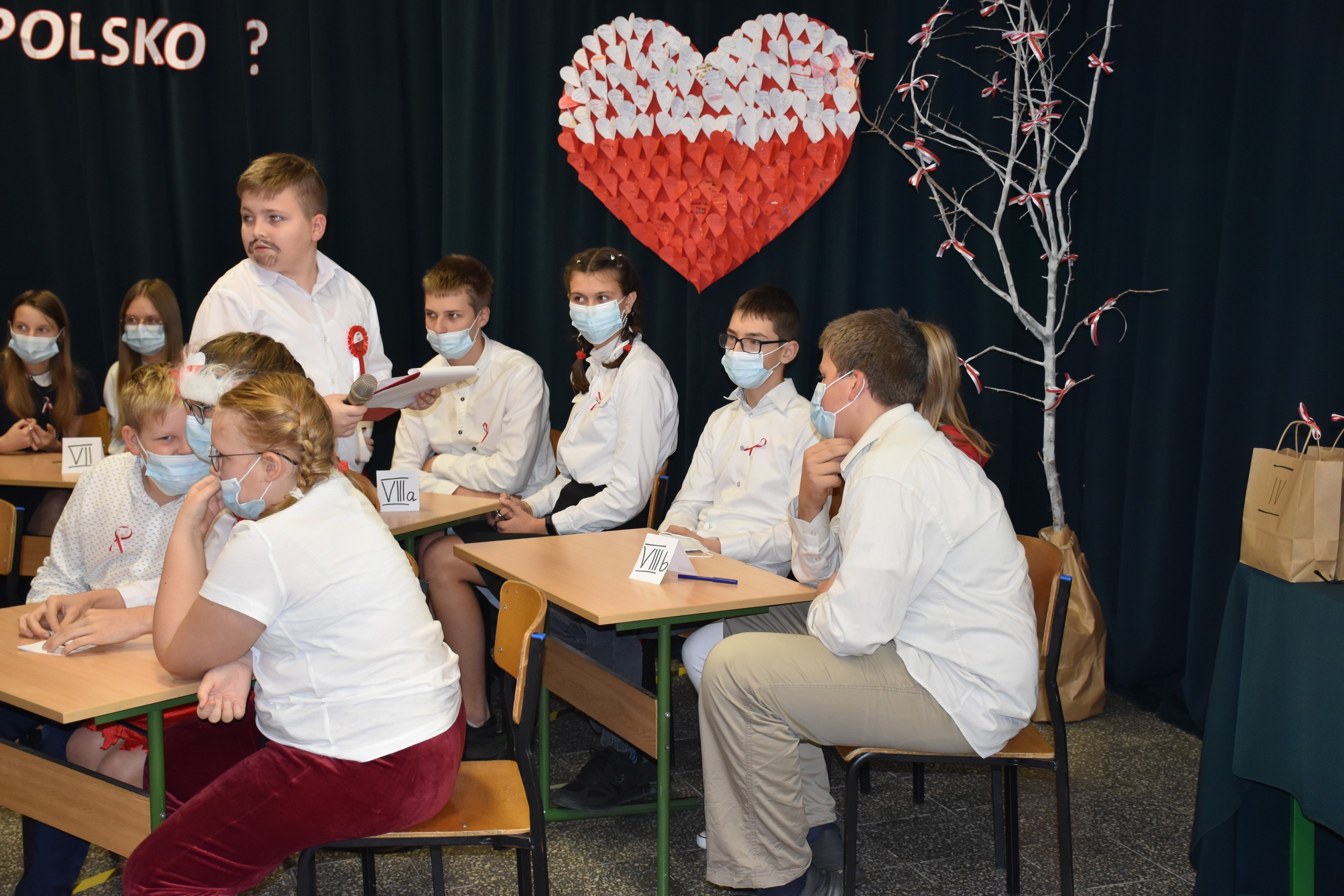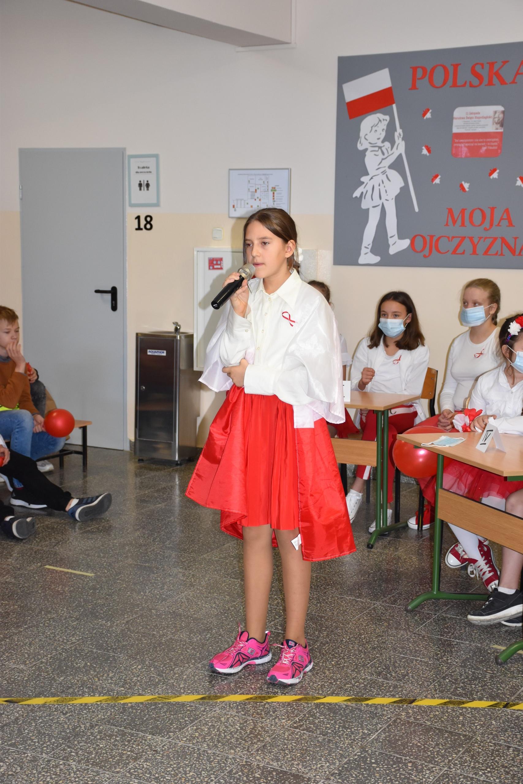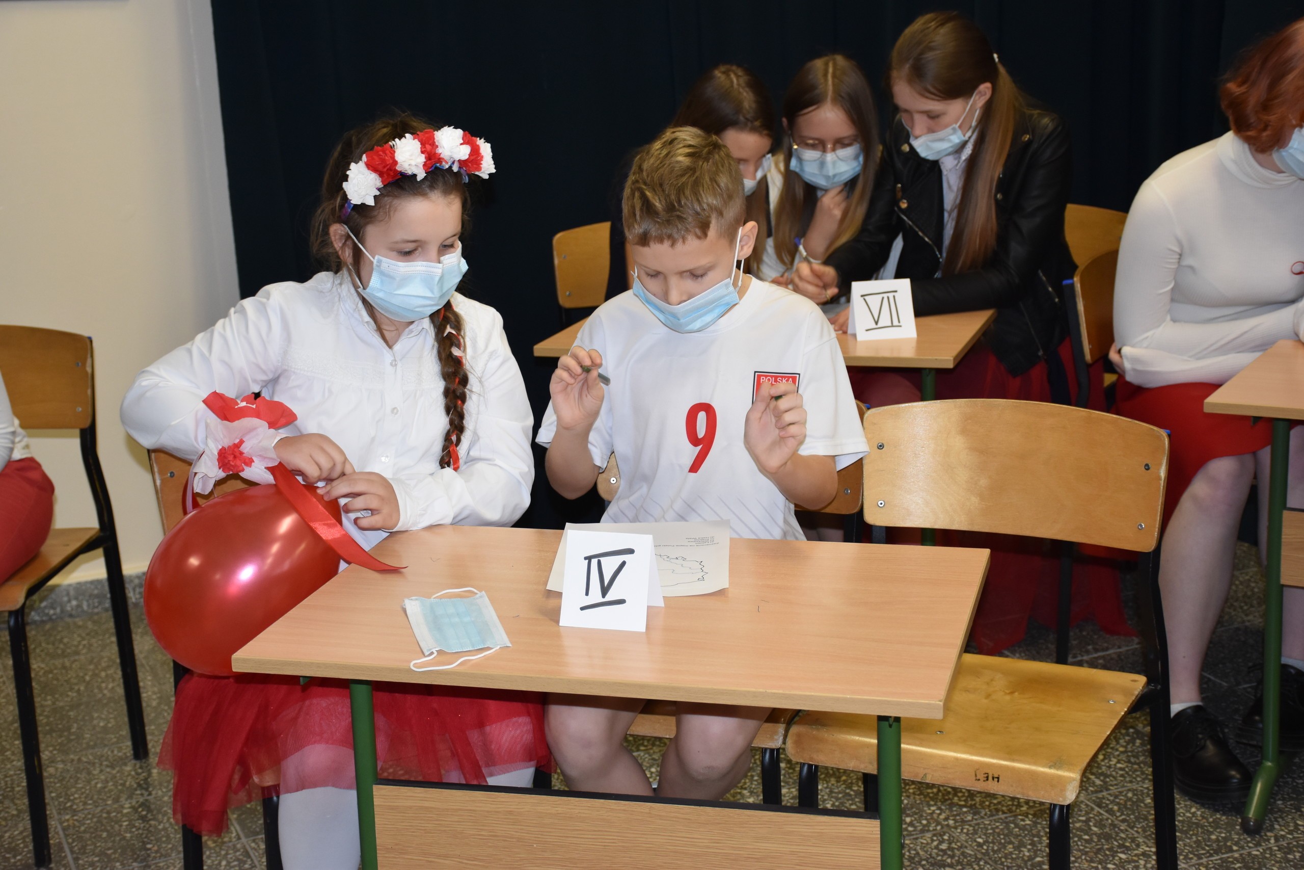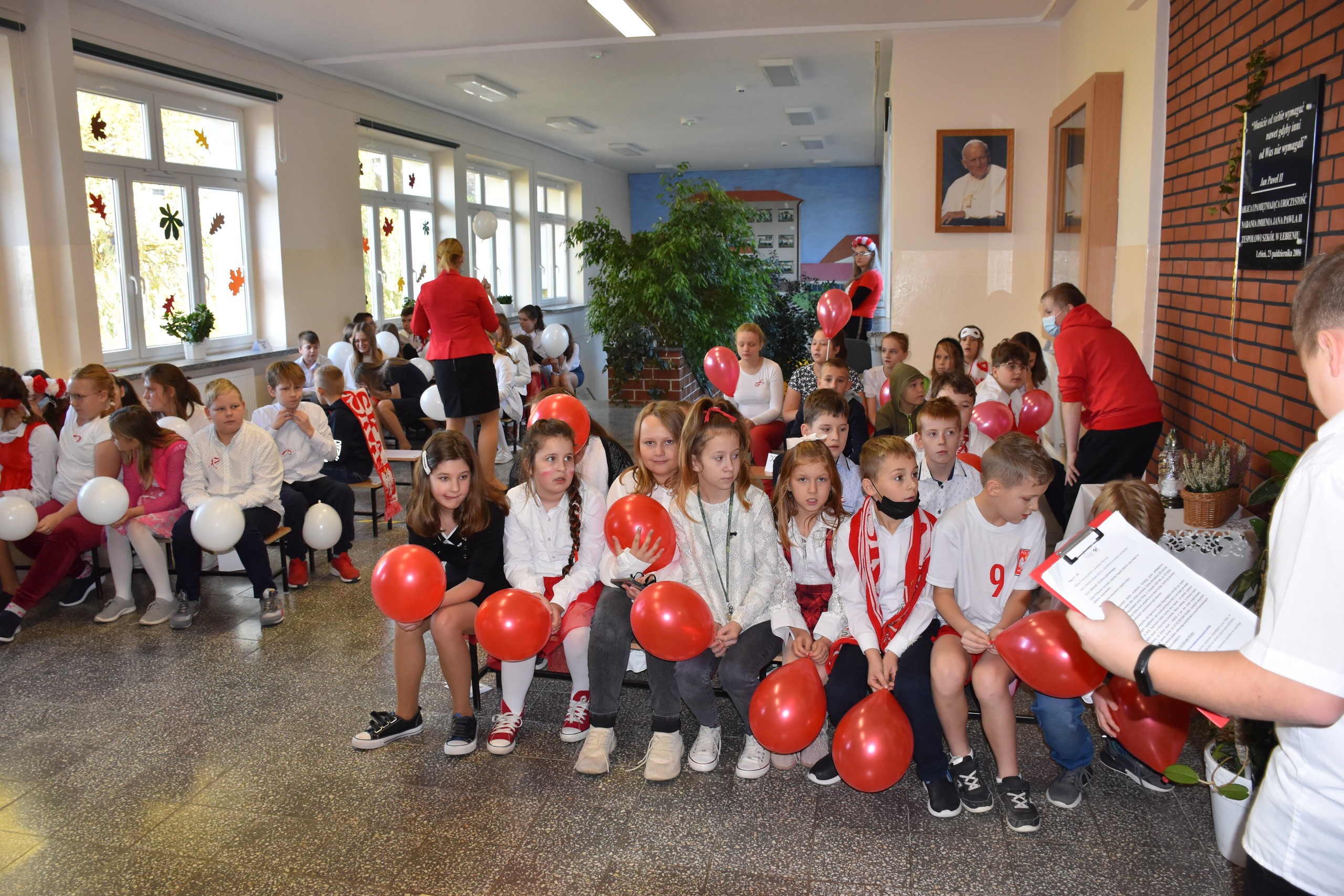 W dniu dzisiejszym społeczność Zespołu Szkół w Łebieniu obchodziła Święto Niepodległości- tym razem- w wesołej formie. Przedszkolaczki, uczniowie i nauczyciele tego dnia czcili święto ubrani w barwy narodowe. Okna naszej szkoły również stały się biało- czerwone. Uroczystość miała formę turnieju- "Za co kocham Cię Polsko?" Już kilka dni wcześniej nasi uczniowie na zajęciach zastanawiali się, za co kochają nasz kraj. Ich odpowiedzi stały się elementem dekoracji. Uroczystość odbyła się w dwóch częściach- oddzielnie dla maluszków i dla starszych uczniów. Zosia i Błażej w roli naszych polskich noblistów- Marii Skłodowskiej- Curie i Henryka Sienkiewicza poprowadzili rozgrywki turniejowe. Każda klasa przygotowała strój patriotyczny, który zaprezentowali wybrani przedstawiciele. Kolejnym zadaniem było udzielenie odpowiedzi na pytania związane z naszym krajem. Zaskoczeniem okazało się zadanie z mapą Polski. Nie zabrakło również pieśni patriotycznych w wykonaniu uczennic klasy VI. Uroku obchodom dodały piosenki i tańce przygotowane przez naszych najmłodszych- przedszkolaczków. Pan dyrektor podzielił się z uczniami wiadomością, którą otrzymał uczeń klasy III- Ksawery Kwidzyński-od uczestniczki Powstania Warszawskiego. Kartka dla Ksawerego jest odpowiedzią na akcję BohaterON, w której nasza szkoła bierze udział od kilku lat.