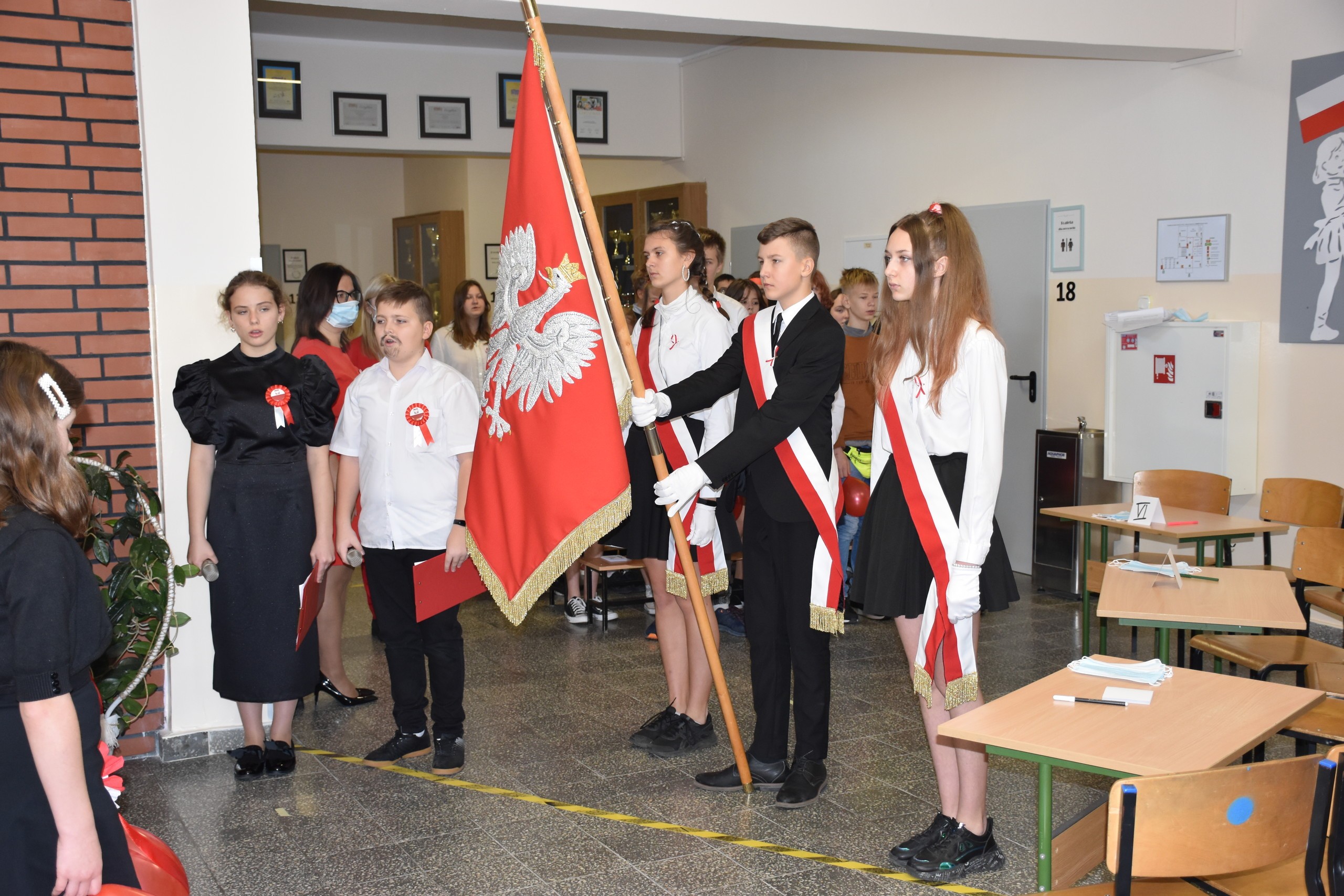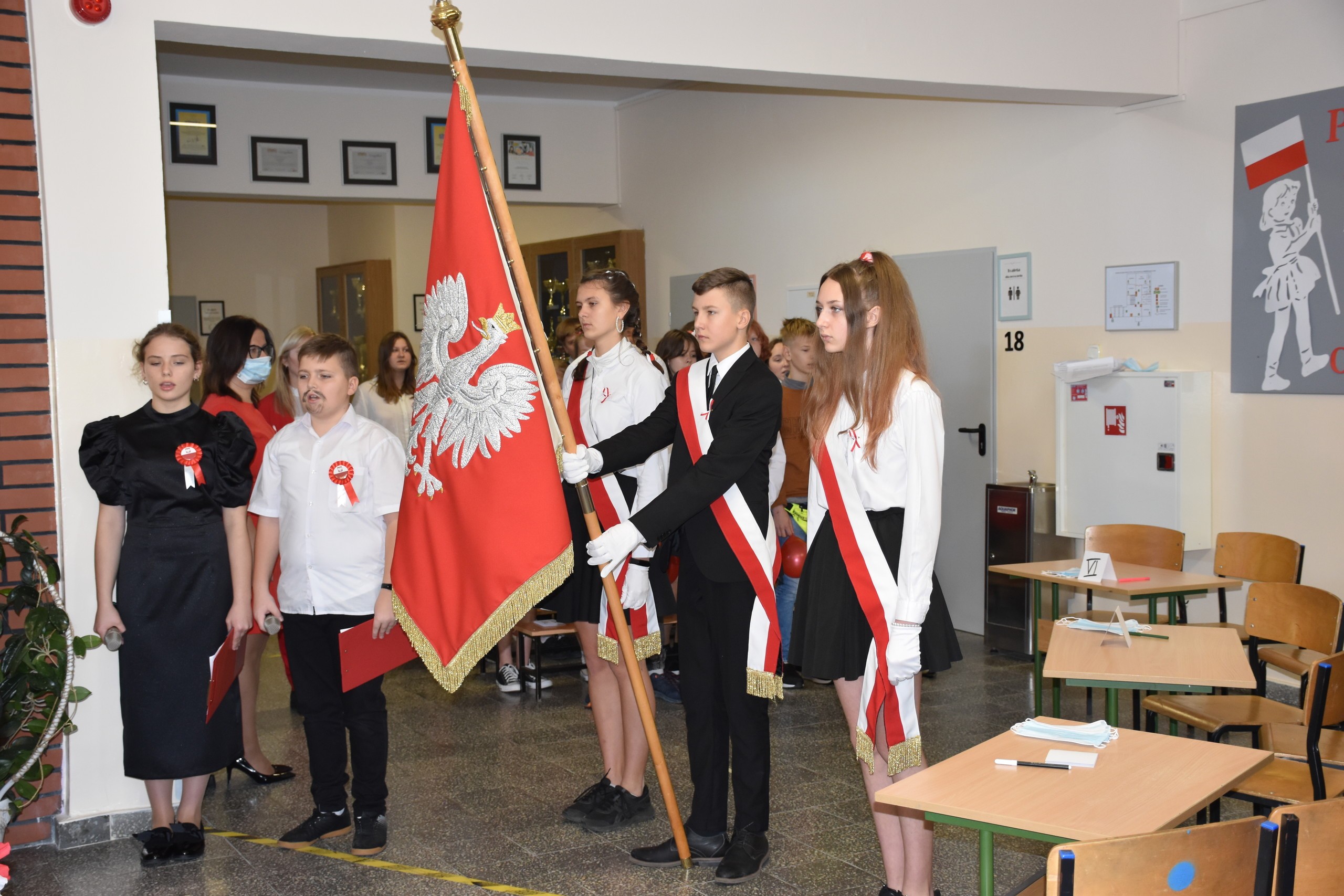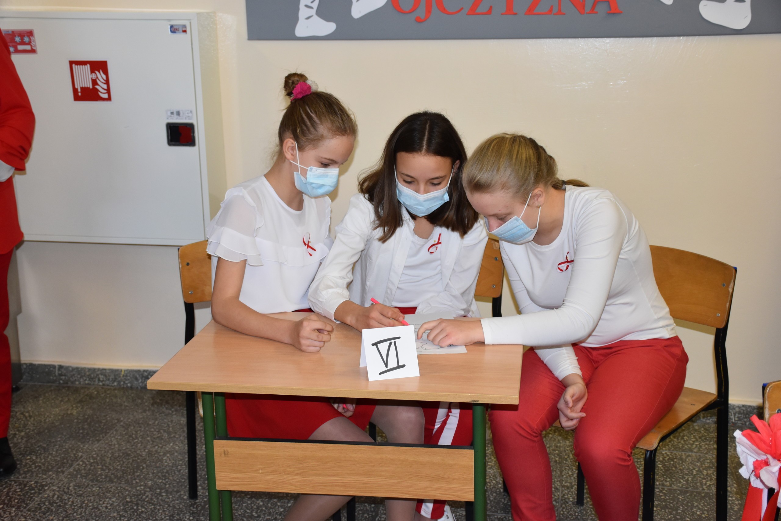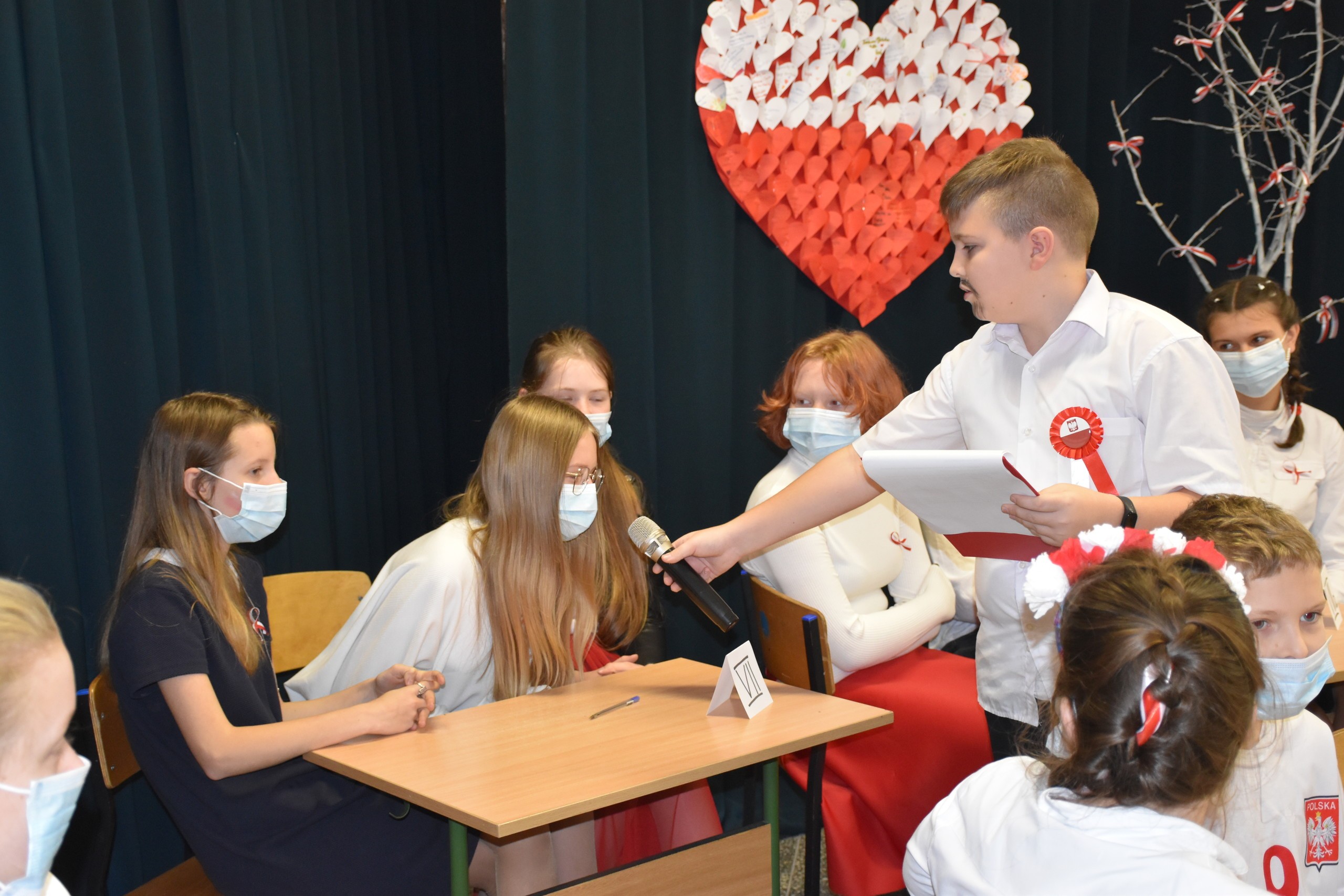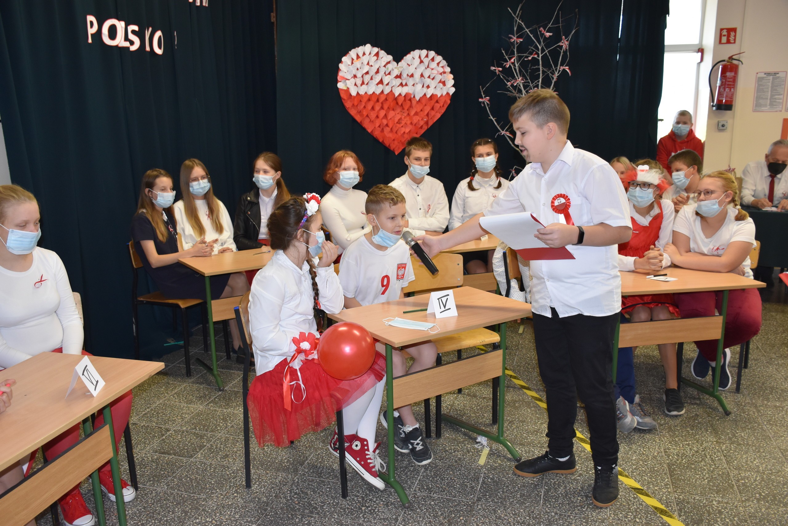 W dniu dzisiejszym społeczność Zespołu Szkół w Łebieniu obchodziła Święto Niepodległości- tym razem- w wesołej formie. Przedszkolaczki, uczniowie i nauczyciele tego dnia czcili święto ubrani w barwy narodowe. Okna naszej szkoły również stały się biało- czerwone. Uroczystość miała formę turnieju- "Za co kocham Cię Polsko?" Już kilka dni wcześniej nasi uczniowie na zajęciach zastanawiali się, za co kochają nasz kraj. Ich odpowiedzi stały się elementem dekoracji. Uroczystość odbyła się w dwóch częściach- oddzielnie dla maluszków i dla starszych uczniów. Zosia i Błażej w roli naszych polskich noblistów- Marii Skłodowskiej- Curie i Henryka Sienkiewicza poprowadzili rozgrywki turniejowe. Każda klasa przygotowała strój patriotyczny, który zaprezentowali wybrani przedstawiciele. Kolejnym zadaniem było udzielenie odpowiedzi na pytania związane z naszym krajem. Zaskoczeniem okazało się zadanie z mapą Polski. Nie zabrakło również pieśni patriotycznych w wykonaniu uczennic klasy VI. Uroku obchodom dodały piosenki i tańce przygotowane przez naszych najmłodszych- przedszkolaczków. Pan dyrektor podzielił się z uczniami wiadomością, którą otrzymał uczeń klasy III- Ksawery Kwidzyński-od uczestniczki Powstania Warszawskiego. Kartka dla Ksawerego jest odpowiedzią na akcję BohaterON, w której nasza szkoła bierze udział od kilku lat.