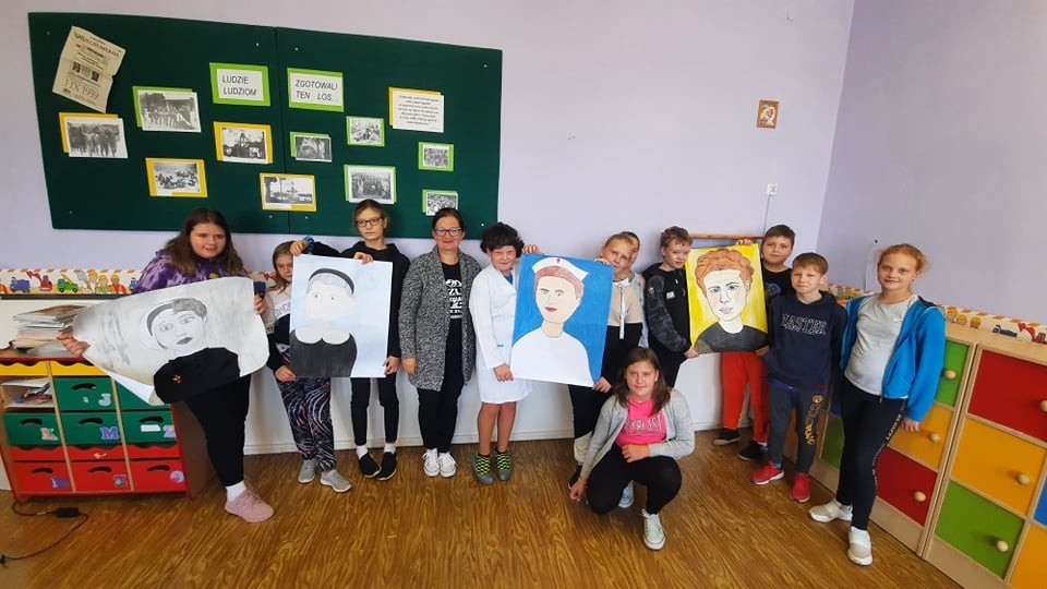 Zadaniem klas było wykonanie portretu Pani Ireny, opis jej działalności oraz przeprowadzenie lekcji o naszej bohaterce wraz z fotorelacją. Klasy były bardzo twórcze i kreatywne. Uczennice i uczniowie chętnie wcielali się w postać Ireny Sendler. Niezależnie od wyniku konkursu, cel został już osiągnięty - uczniowie zapoznali się z Panią Ireną, poznali jej bohaterstwo, poszerzyli swoją wiedzę na temat II wojny światowej i Holocaustu. Trzymamy kciuki za uczniów, którzy walczą o dofinansowanie do 7- dniowej wycieczki do Zakopanego.