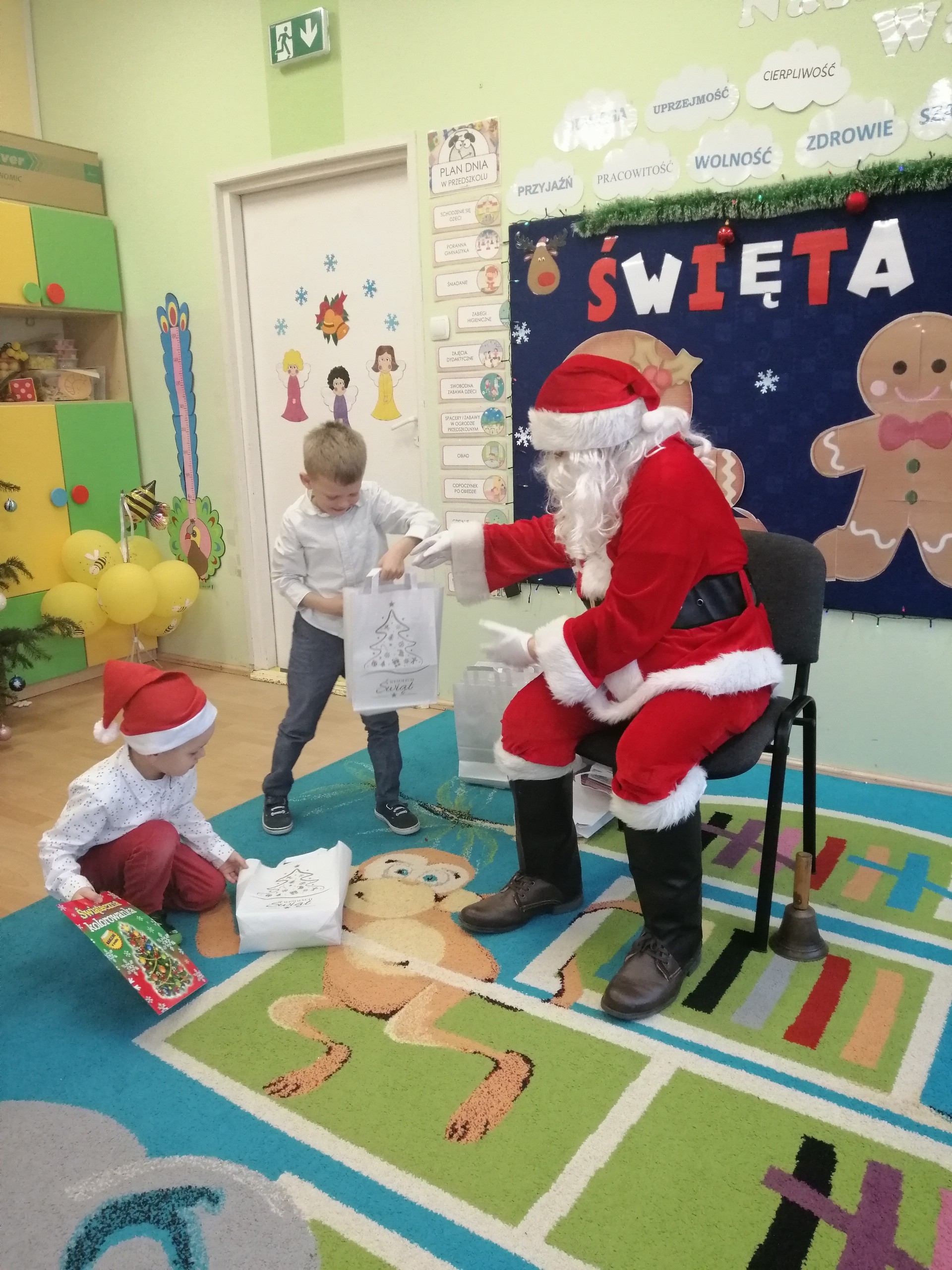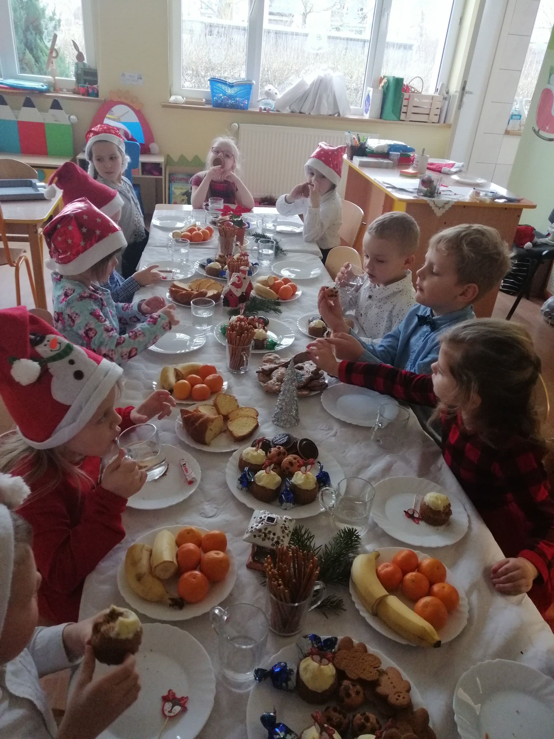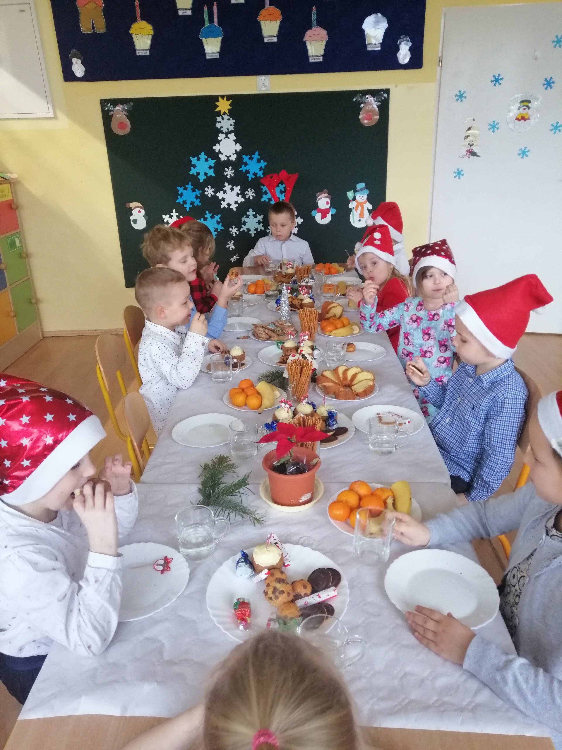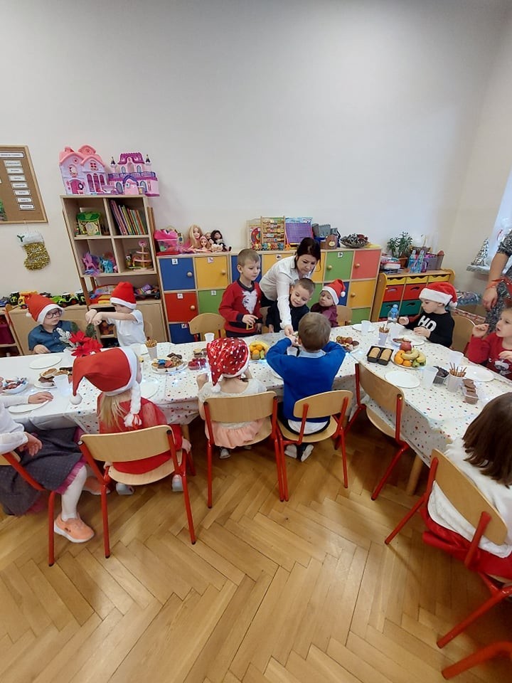 20 grudnia odbyło się w naszym przedszkolu wigilijne spotkanie. Dzieci wspólnie z Paniami kolędowały, składały sobie życzenia i jadły wigilijny posiłek przygotowany przez rodziców. W tym dniu przybył do nas także Mikołaj, który obdarował dzieci wymarzonymi prezentami.