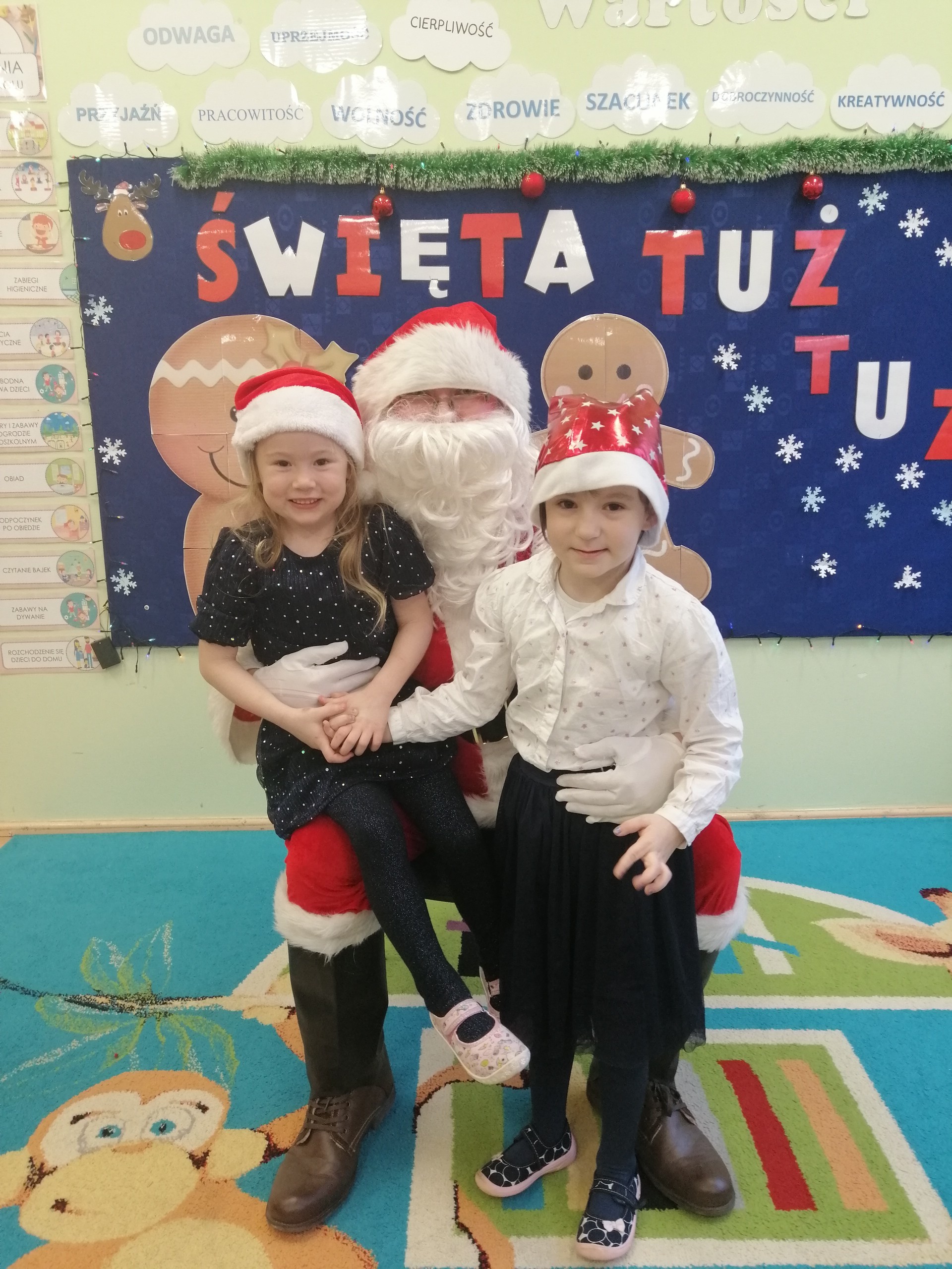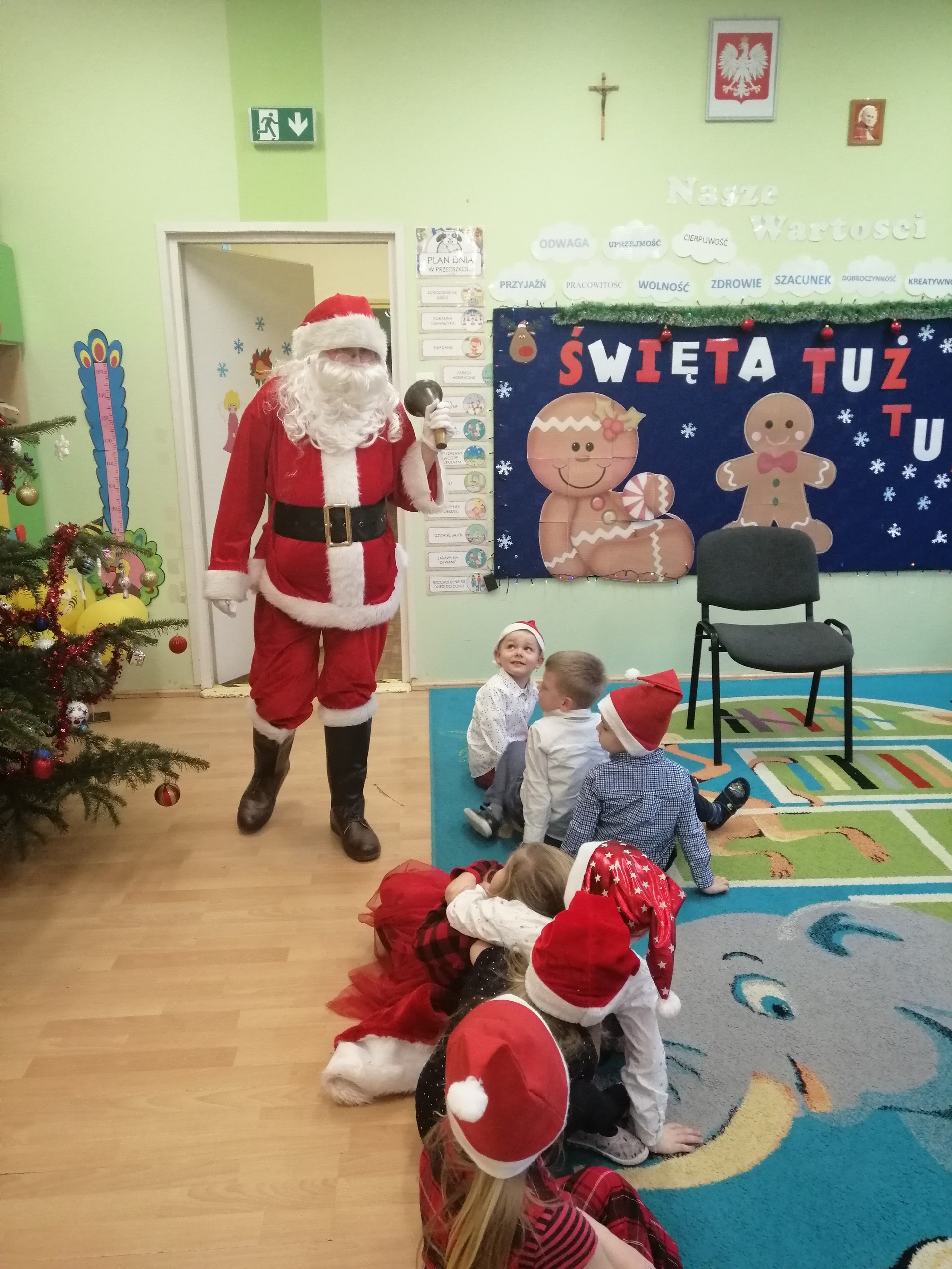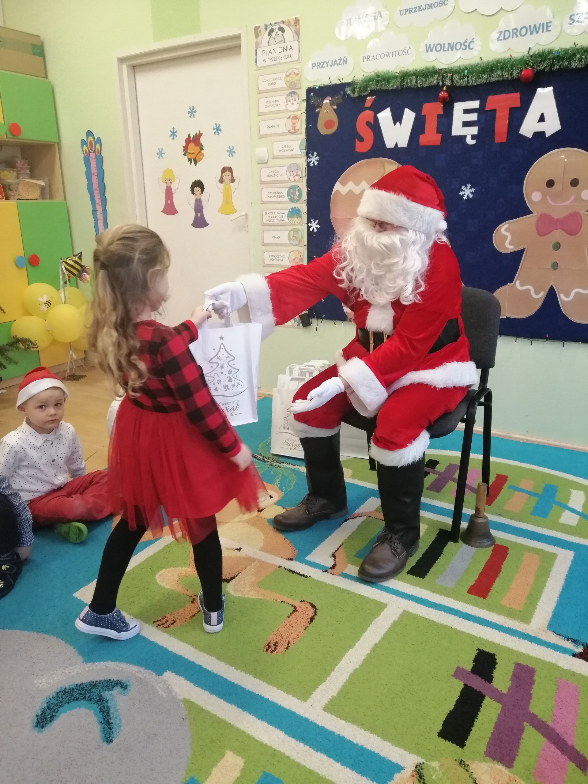 20 grudnia odbyło się w naszym przedszkolu wigilijne spotkanie. Dzieci wspólnie z Paniami kolędowały, składały sobie życzenia i jadły wigilijny posiłek przygotowany przez rodziców. W tym dniu przybył do nas także Mikołaj, który obdarował dzieci wymarzonymi prezentami.
