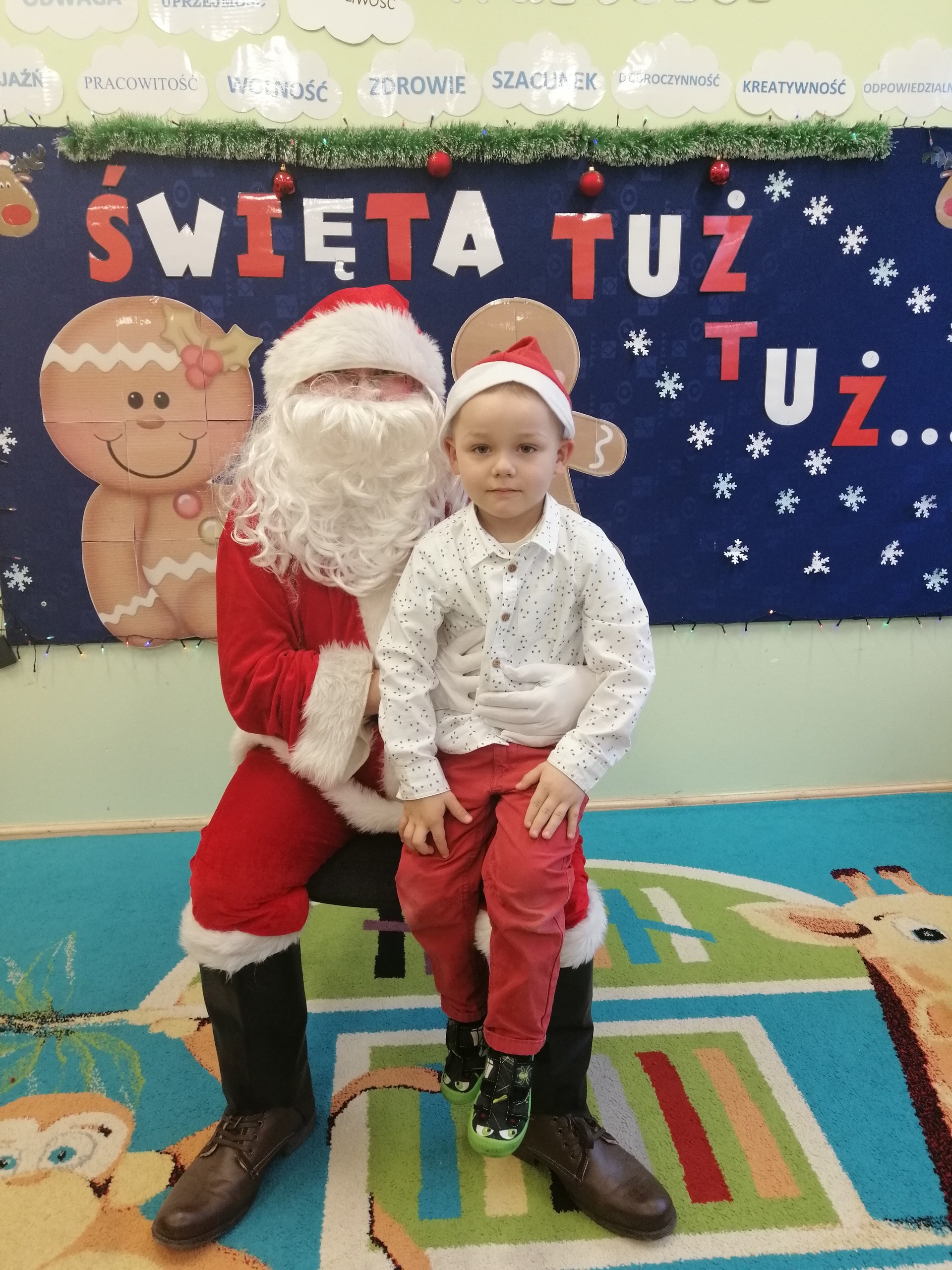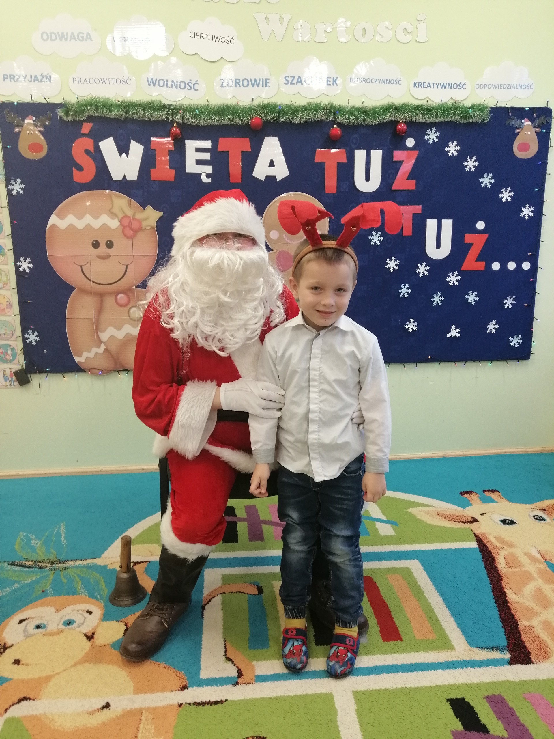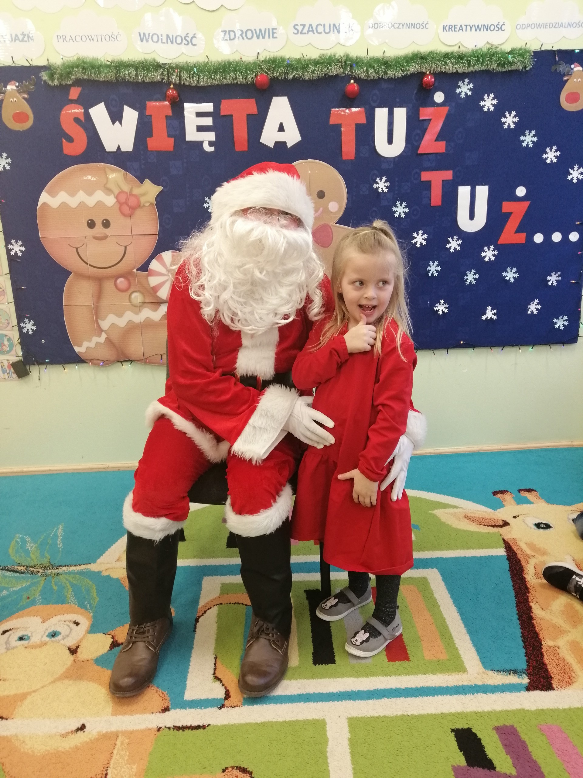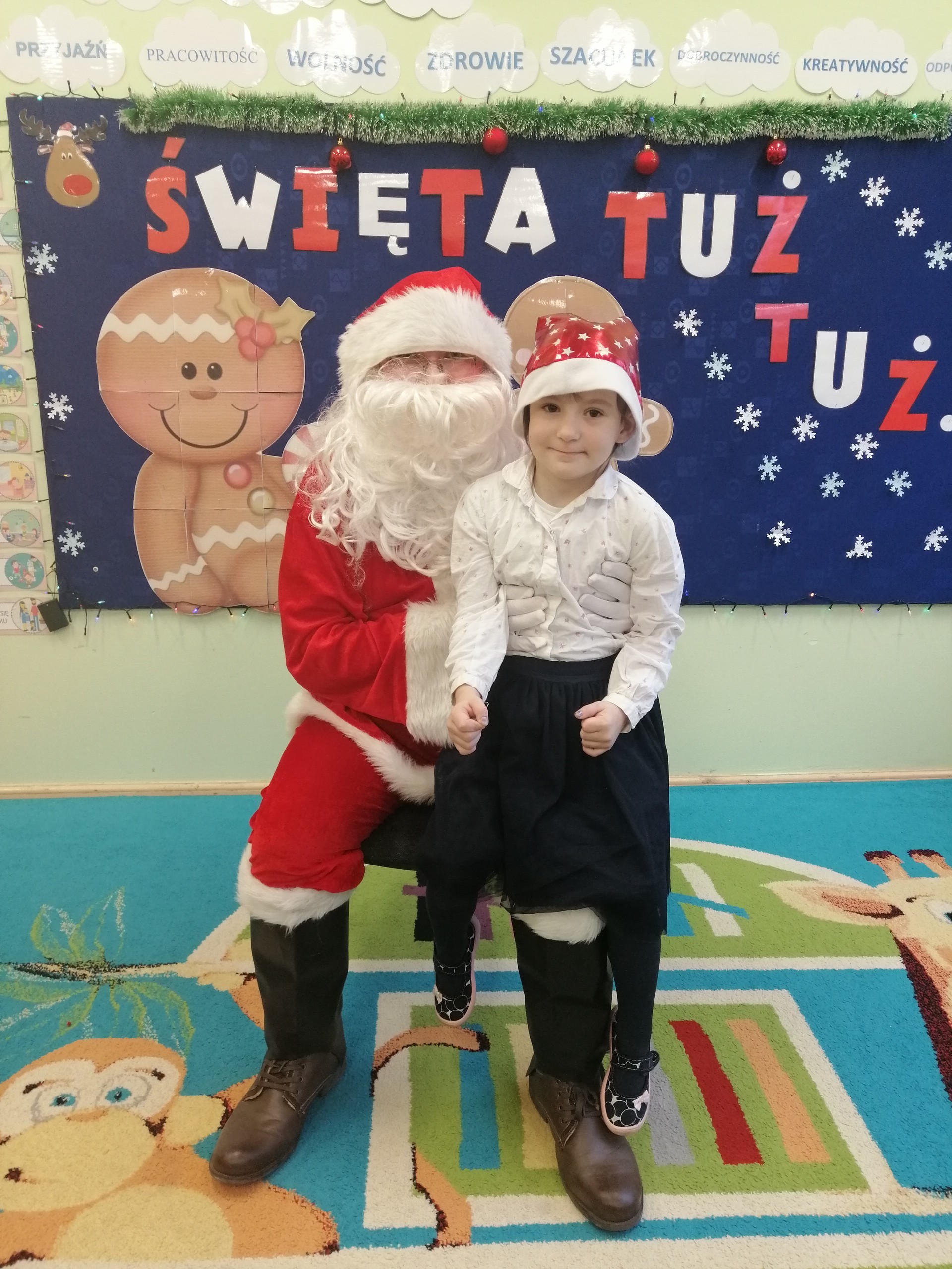 20 grudnia odbyło się w naszym przedszkolu wigilijne spotkanie. Dzieci wspólnie z Paniami kolędowały, składały sobie życzenia i jadły wigilijny posiłek przygotowany przez rodziców. W tym dniu przybył do nas także Mikołaj, który obdarował dzieci wymarzonymi prezentami.