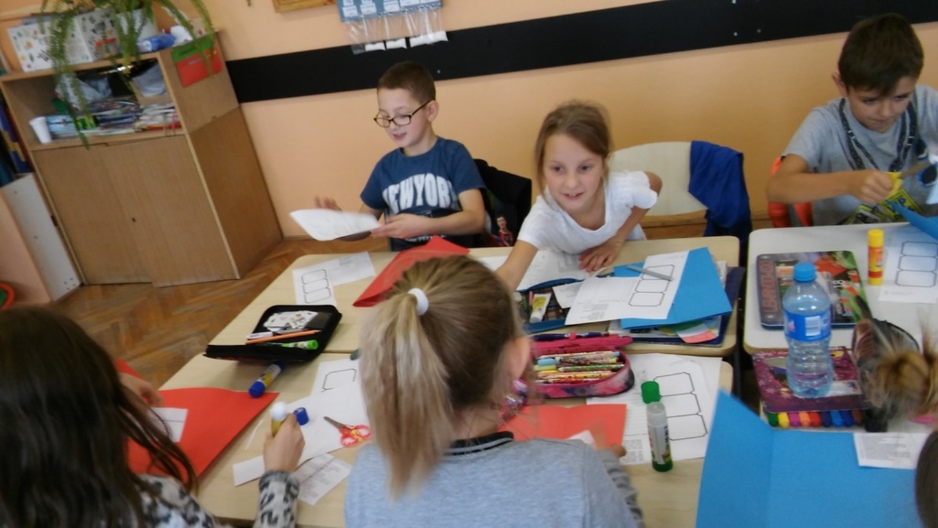 Uczniowie z klasy III a SP zrobiły swoje pierwsze lapbooki. Dzieci w ciekawy sposób utrwalały wiadomości o Europie. Lapbook to w wolnym tłumaczeniu książka na kolanach. Uczeń może ją wykonać dowolnie dobierając elementy, komponując z części logiczną całość, wyróżniając najważniejsze treści i chowając w koperty lub papierowe skrytki to, co uzna za warte odkrycia lub głębszej refleksji. Lapbooki kształtują wiele cennych umiejętności, a ich kolorowa i zróżnicowana forma jest bardzo atrakcyjna. To kreatywna pedagogika.