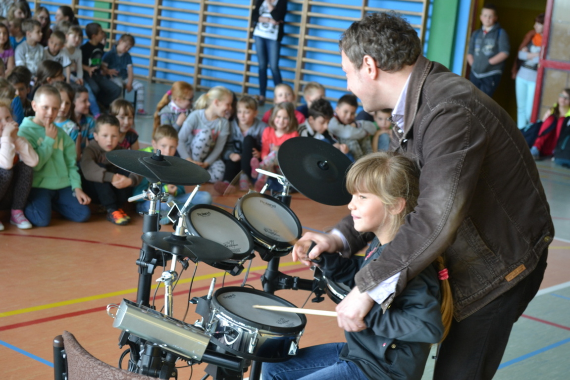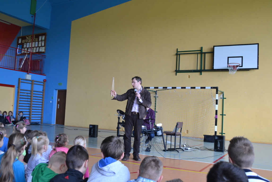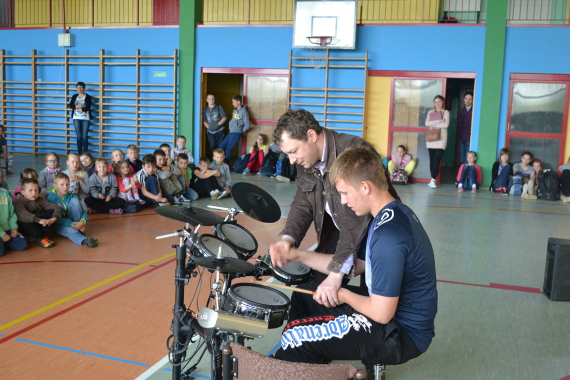 12 maja 2015r. odbył się w naszej szkole niespotykany i bardzo interesujący perkusyjny koncert muzyczny. Uczniowie mieli okazję poznać budowę perkusji, zasady jej działania i możliwość wydobywania z niej dźwięku. Wielu uczniów miło okazję pomuzykować wraz z profesjonalistami, a także stworzyć akompaniament perkusyjny do muzyki współczesnej. Młodzież aktywnie uczestniczyła w spotkaniu i gorącymi brawami pożegnała artystów.