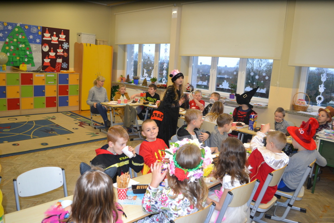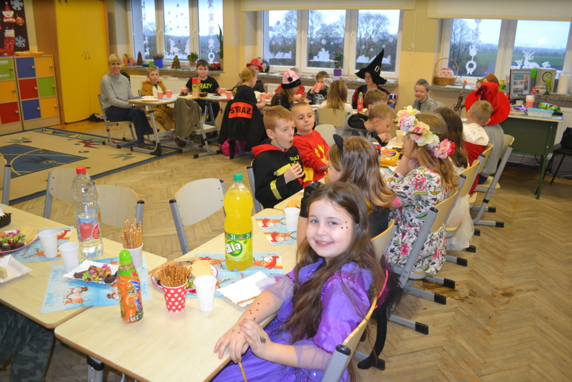 Bal karnawałowy w naszej szkole jest atrakcją szczególnie lubianą przez dzieci. Dostarcza im wielu przeżyć i miłych wrażeń. W tym dniu dzieci wystąpiły w ciekawych, kolorowych kostiumach, przebrane za bohaterów znanych bajek i nie tylko. Niektórzy byli nie do poznania, inni budzili podziw. Wszyscy uczniowie bawili się wyśmienicie przy dźwiękach skocznej muzyki. Były pociągi, kółeczka i tańce w parach. Odbyły się również konkursy, za które dzieci otrzymały drobne nagrody. Dziękujemy dzieciom i rodzicom za zaangażowanie w przygotowanie pięknych strojów.