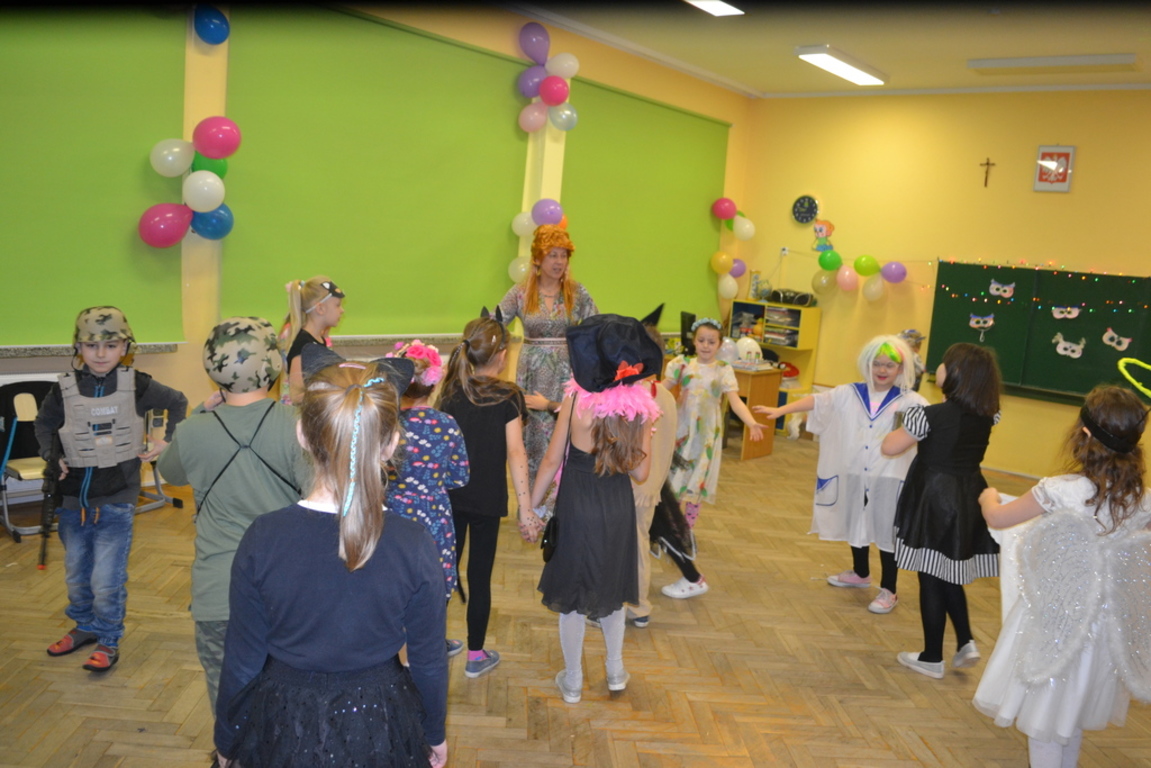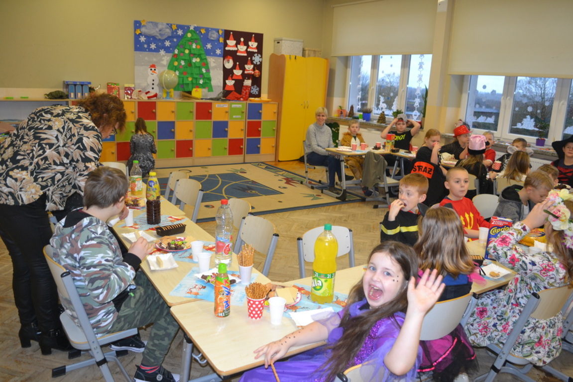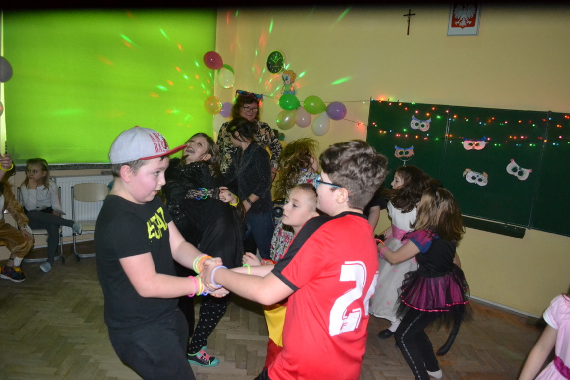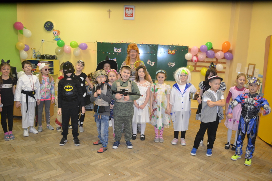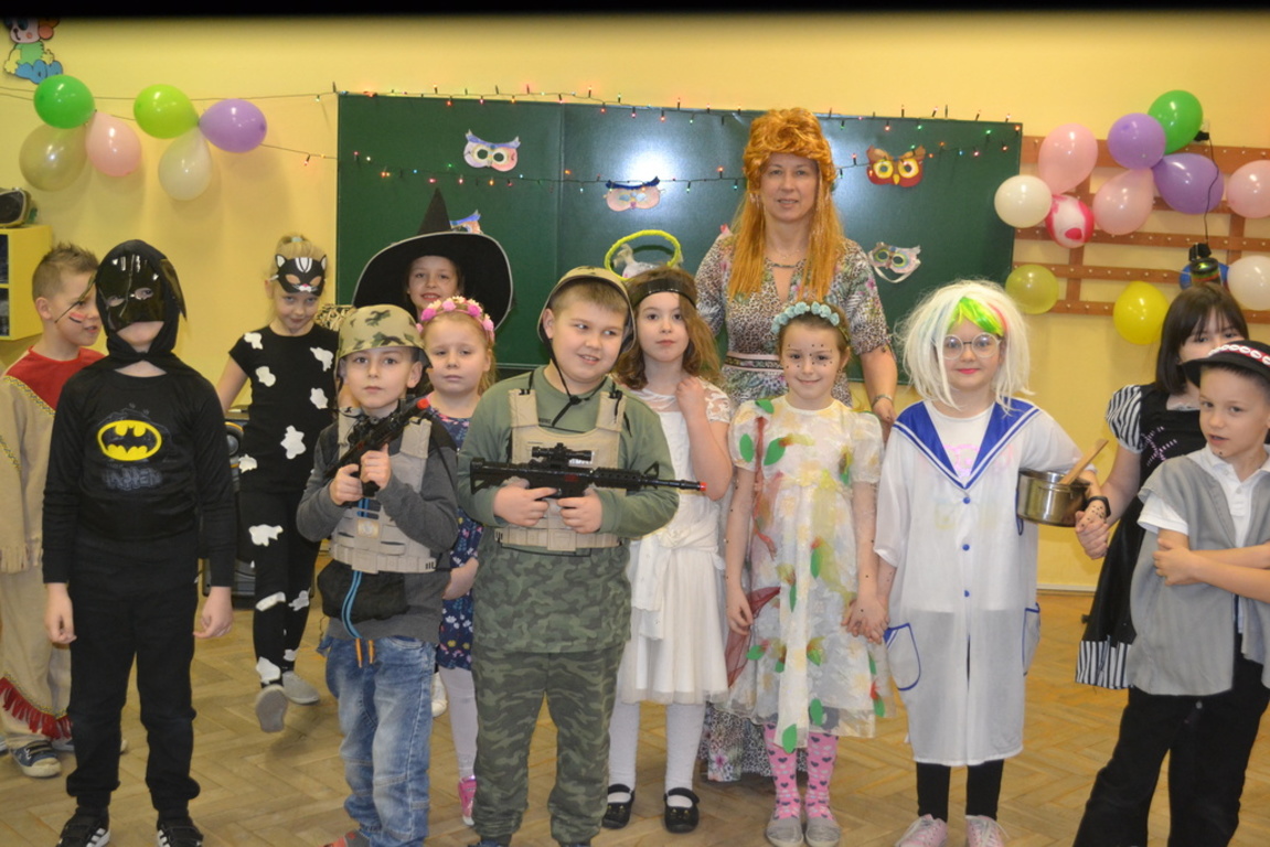 Bal karnawałowy w naszej szkole jest atrakcją szczególnie lubianą przez dzieci. Dostarcza im wielu przeżyć i miłych wrażeń. W tym dniu dzieci wystąpiły w ciekawych, kolorowych kostiumach, przebrane za bohaterów znanych bajek i nie tylko. Niektórzy byli nie do poznania, inni budzili podziw. Wszyscy uczniowie bawili się wyśmienicie przy dźwiękach skocznej muzyki. Były pociągi, kółeczka i tańce w parach. Odbyły się również konkursy, za które dzieci otrzymały drobne nagrody. Dziękujemy dzieciom i rodzicom za zaangażowanie w przygotowanie pięknych strojów.