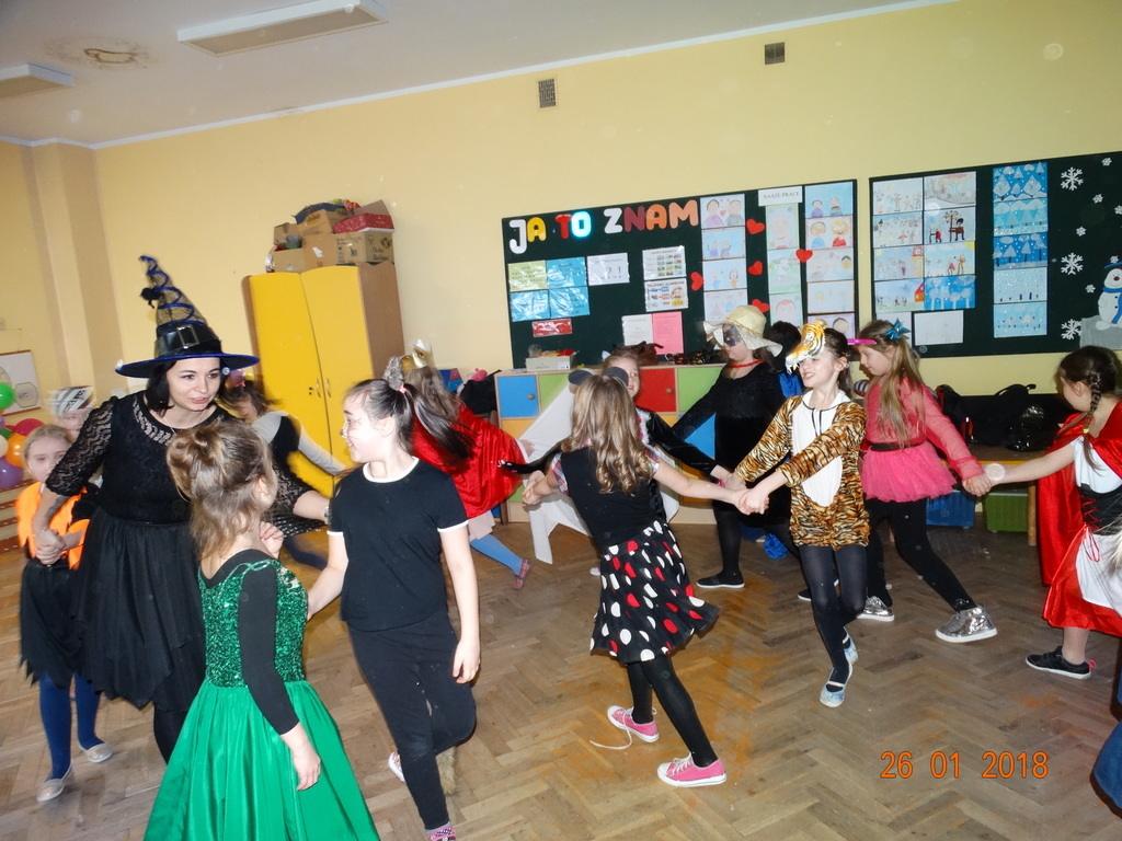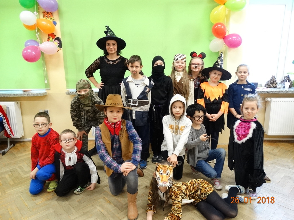 Tradycyjnie już w ostatni dzień przed feriami w szkole jest organizowany Bal Karnawałowy. Uczniowie klas I-III zmieniają się wówczas w postaci z bajek, filmów, książek i gier komputerowych. W tym roku bal był również bardzo udany. Dzieci tańcowały, brały udział w konkursach i przegryzali swoje ulubione niezdrowe przekąski - w karnawale można :-) Każdy uczeń otrzymał też drobny upominek za kostium.