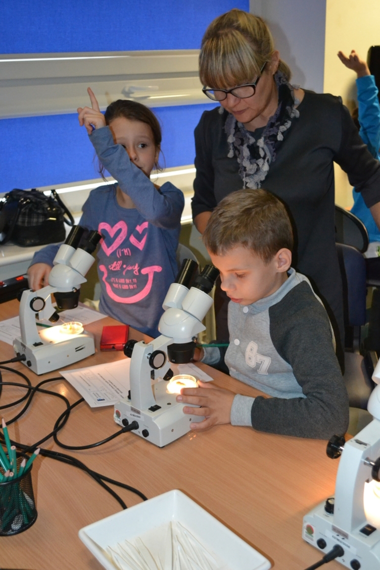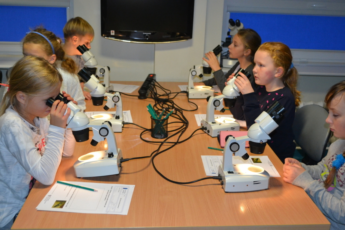 Drugą część zajęć stanowiły zajęcia laboratoryjne, podczas których uczniowie mieli bezpośredni kontakt z przedstawicielami fauny Morza bałtyckiego – krewetką i rybą. Ta część zajęć wzbudziła ogromne zainteresowanie. Na podsumowanie uczniowie wypełnili bardzo ciekawe karty pracy, które wypisane były w języku kaszubskim. Następnie zwiedzili akwarium.