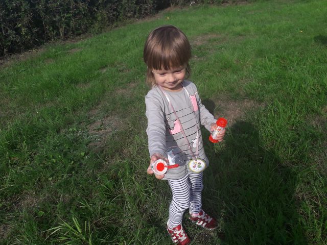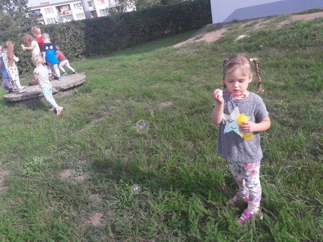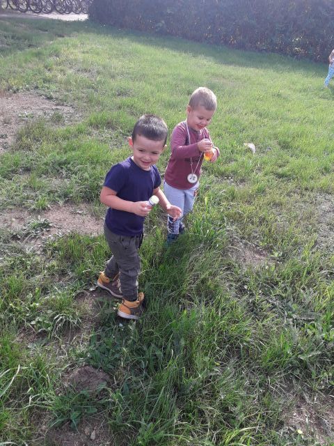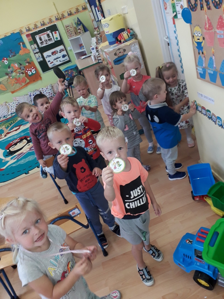 Dzieci otrzymały tematyczne medale, nauczyły się tańca w parach i wyruszyły na poszukiwanie tego co dzieci lubią najbardziej-drobnych upominków ukrytych w ogrodzie przedszkolnym. Jak się okazało prezent był trafny. Dzieci od razu przystąpiły do jego rozpakowania i wypróbowania.