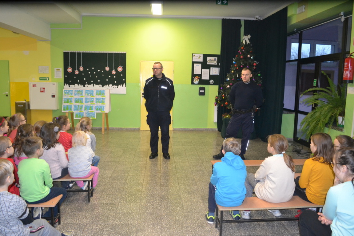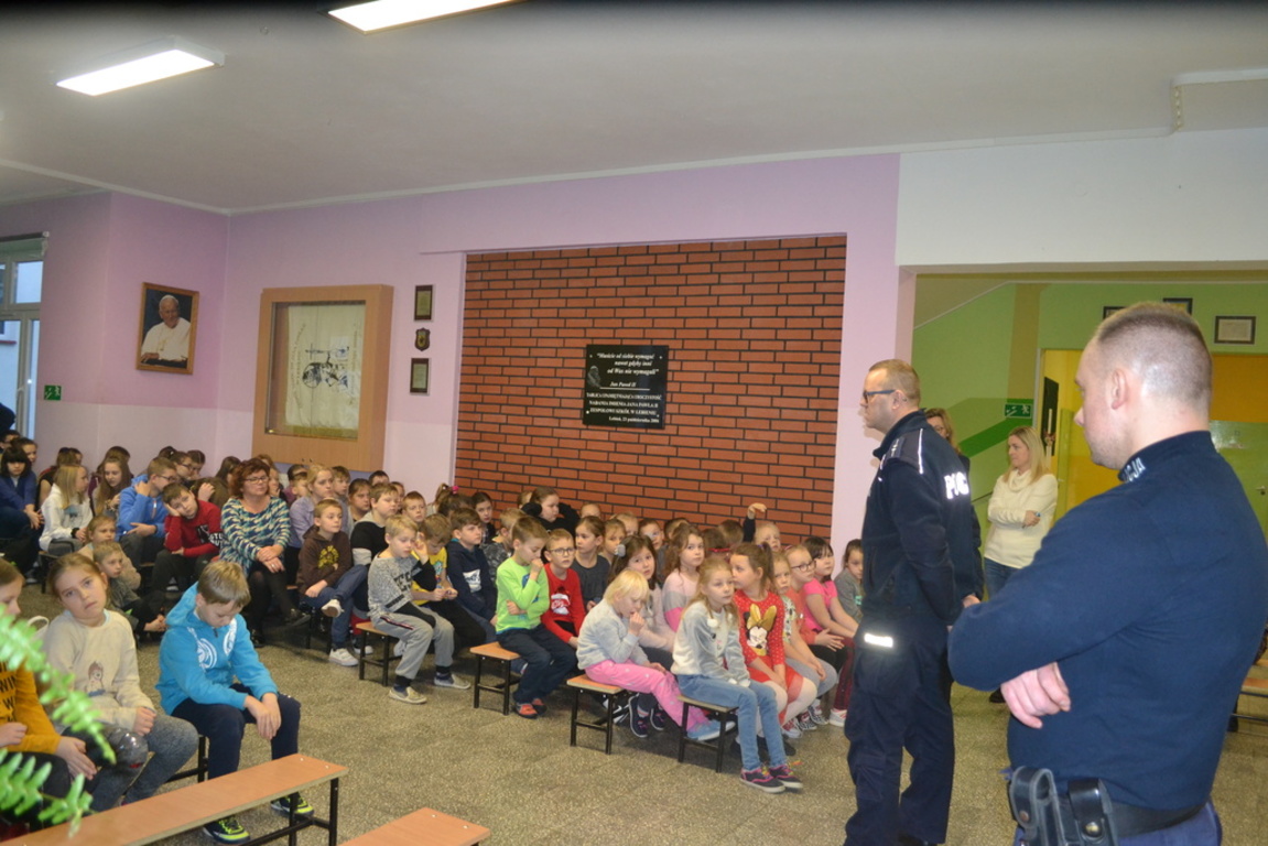 W dniu 10 stycznia 2020r. w szkole gościliśmy funkcjonariuszy policji z Komendy Powiatowej Policji w Lęborku. Wizyta ta była związana ze zbliżającymi się feriami zimowymi dla uczniów. Funkcjonariusze przekazali mnóstwo rad i wskazówek jak bezpiecznie spędzać ferie. Apelowali przede wszystkim o rozważne zachowania podczas zabaw.