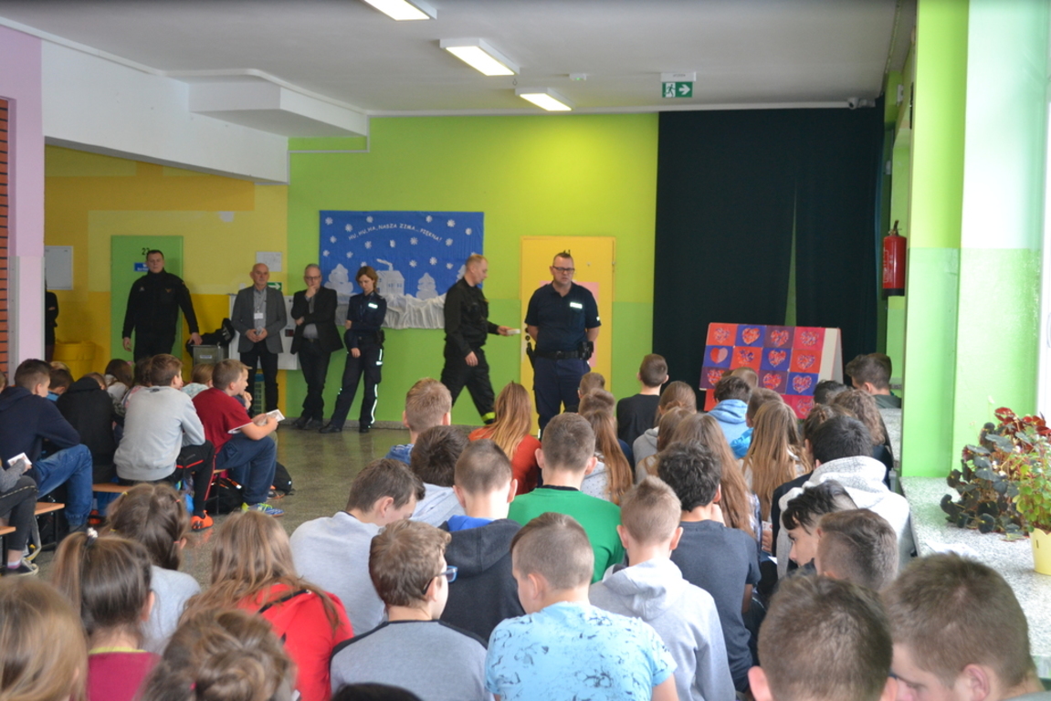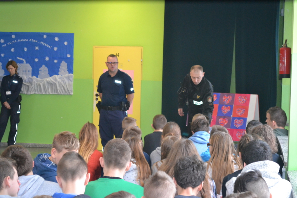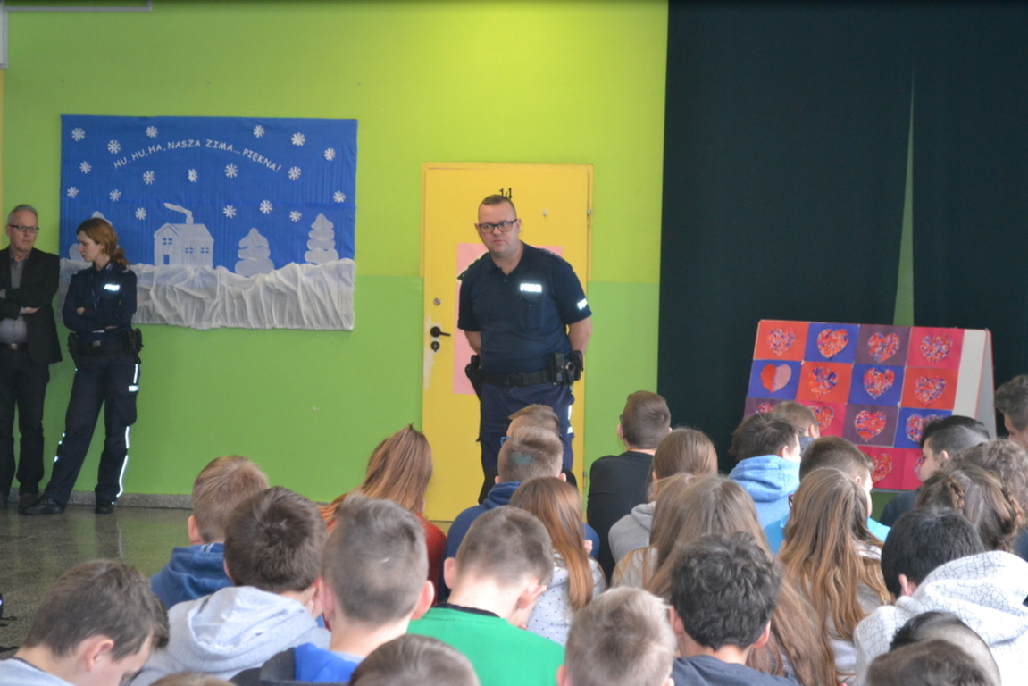 W dniu 30 stycznia 2019r. w szkole gościliśmy funkcjonariuszy policji, straży pożarnej i inspektora ds. zarządzania kryzysowego, wojskowych i obywatelskich z Urzędu Gminy w Nowej Wsi Lęborskiej. Wizyta ta była związana ze zbliżającymi się feriami zimowymi dla uczniów. Funkcjonariusze przekazali mnóstwo rad i wskazówek jak bezpiecznie spędzać ferie. Apelowali przede wszystkim o rozważne zachowania podczas zabaw.