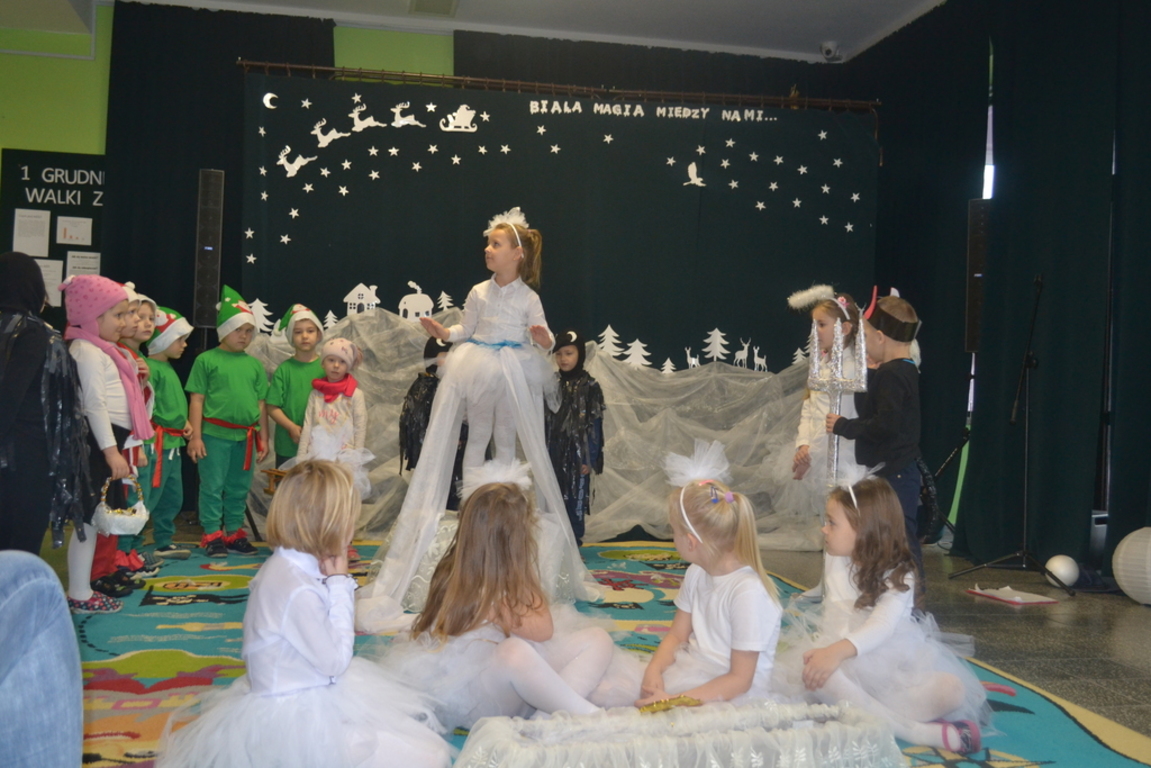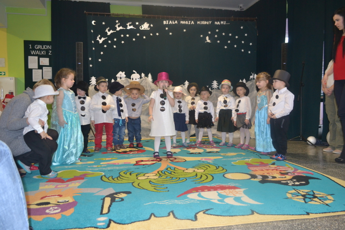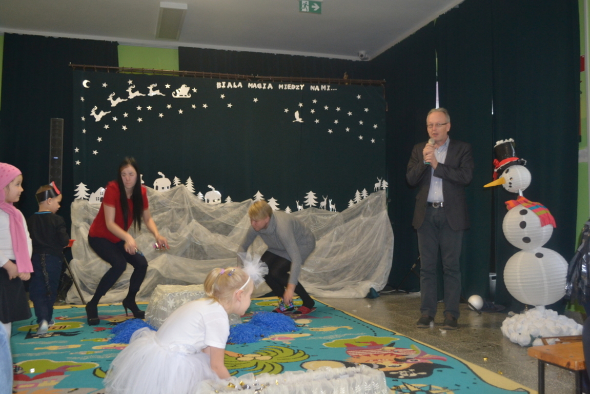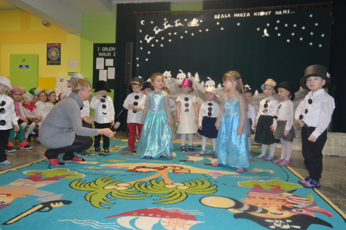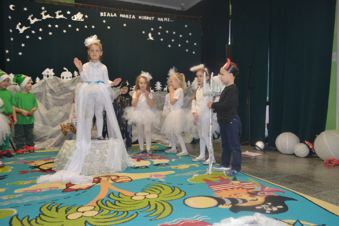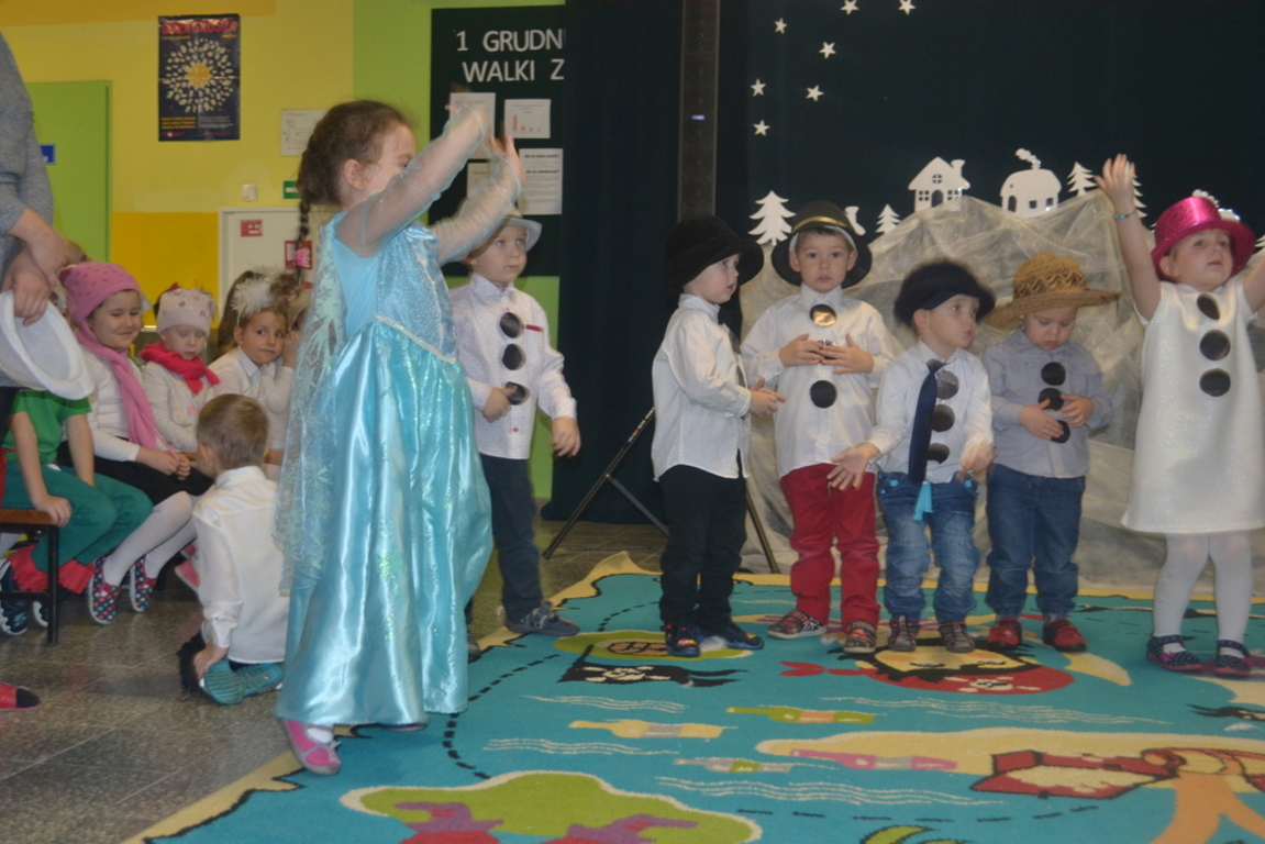 Dnia 20.12.2017 r. w naszym przedszkolu zapanował radosny i świąteczny nastrój. Na tą uroczystość przybyli zaproszeni Rodzice. Na początku swój program zaprezentowali najmłodsi czyli grupa dzieci 3-4 letnich następnie dzieci 5 -letnie. Świąteczna atmosfera udzieliła się wszystkim. Na koniec dyrektor p. Krzysztof Wojtysiak złożył wszystkim życzenia świąteczne oraz na zbliżający się Nowy Rok. Na dzieci czekała w przedszkolu czerwona postać z bajki, która miała dla każdego malucha prezenty. Dla rodzic ów był przygotowany słodki poczęstunek.