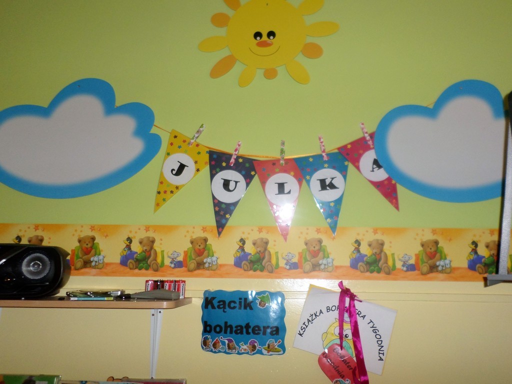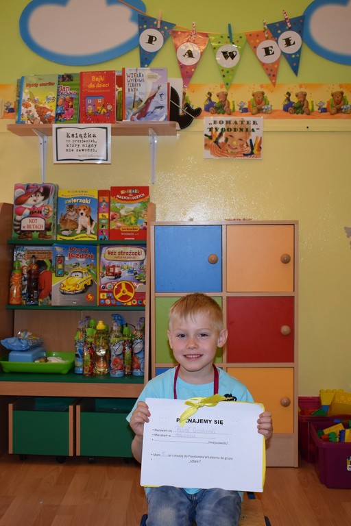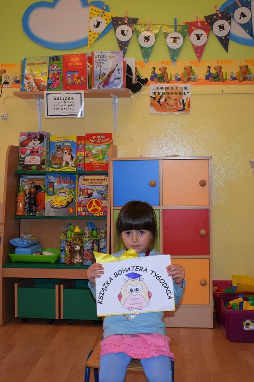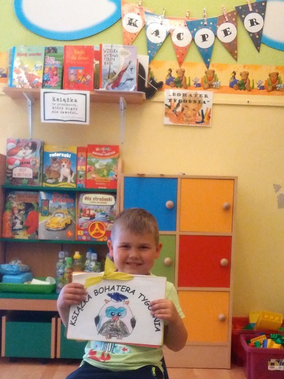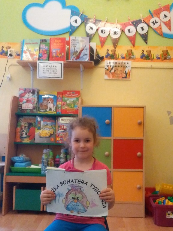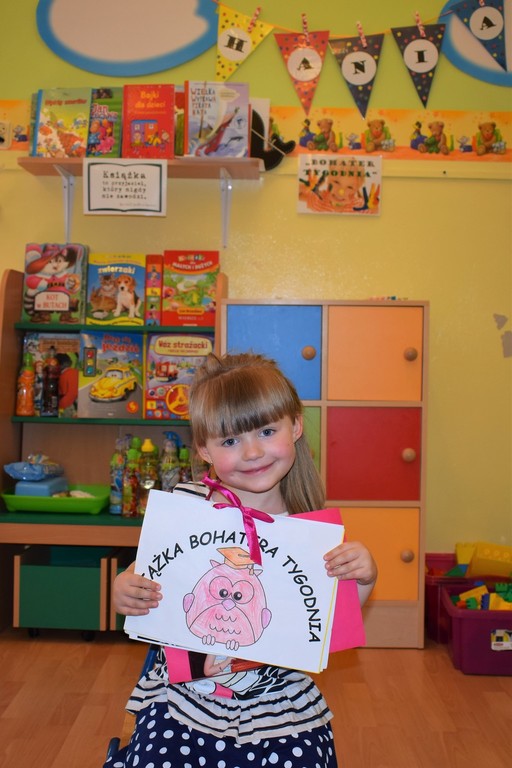 Zakończyliśmy projekt edukacajny - "bohater tygodnia", który realizowaliśmy od połowy września. Polegał on na poświęceniu szczególnej uwagi wybranemu dziecku z grupy. W ciągu tygodnia "bohater" był najważniejszą postacią grupy, a za pomocą zdjęć, osobistych przedmiotów oraz wypełnionej "książeczki bohatera" opowiadał coś o sobie. Przez ten czas mógł również przynosić do przedszkola swoje ulubione zabawki, książki czy gry. Najważniejszym jednak celem projektu było to, aby dziecko zwróciło uwagę na wszystkich swoich kolegów i koleżanki oraz aby zauważało różnorodność grupy. Dzieci uczyły się dostrzegać życie z perspektywy innych, a zarazem szanować ludzi i ich różnice.