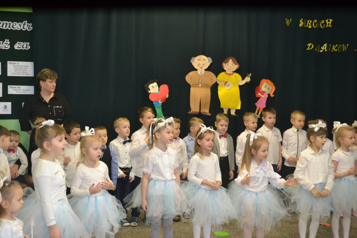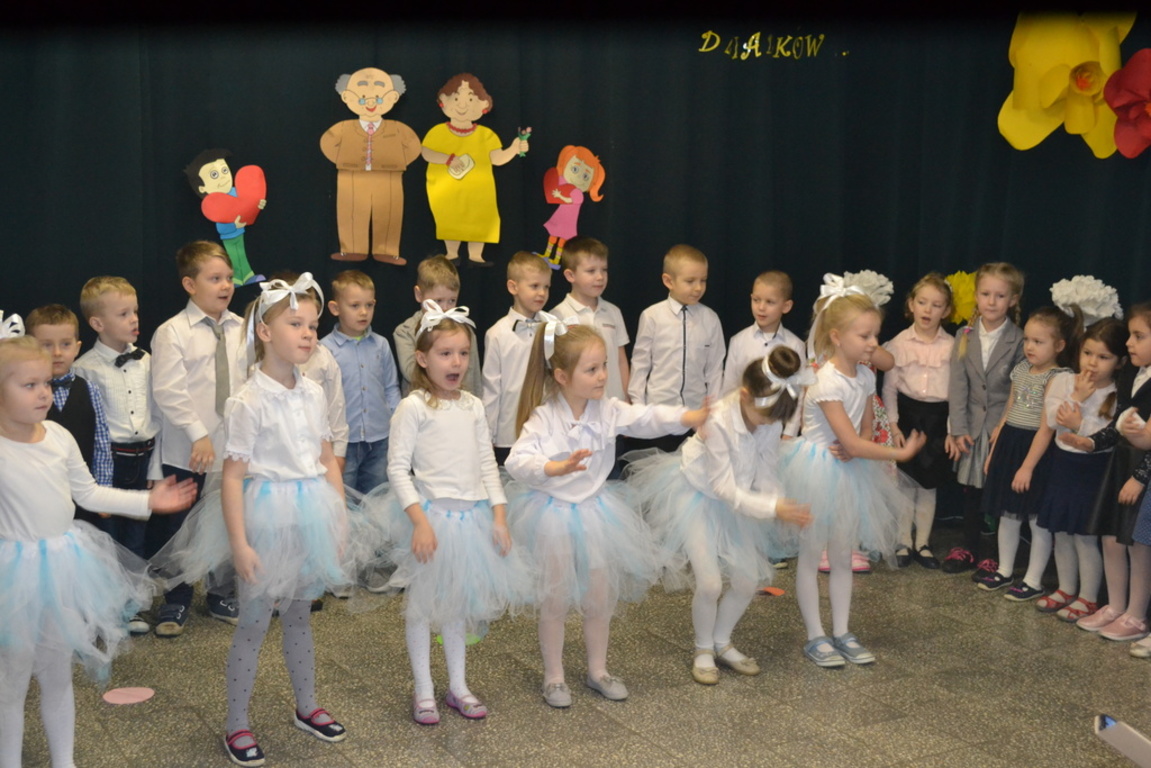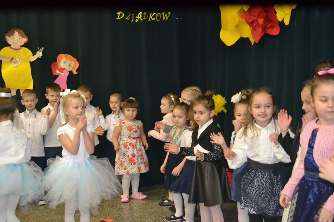 Gości przywitała Szanowna Dyrekcja, chcąc wszystkim babciom i dziadkom złożyć najlepsze życzenia. Wszystkie dzieci dołożyły wszelkich starań wraz z paniami, aby ten dzień wypadł jak najlepiej. Dziadkowie goszcząc się podziwiali występy swoich wnucząt.