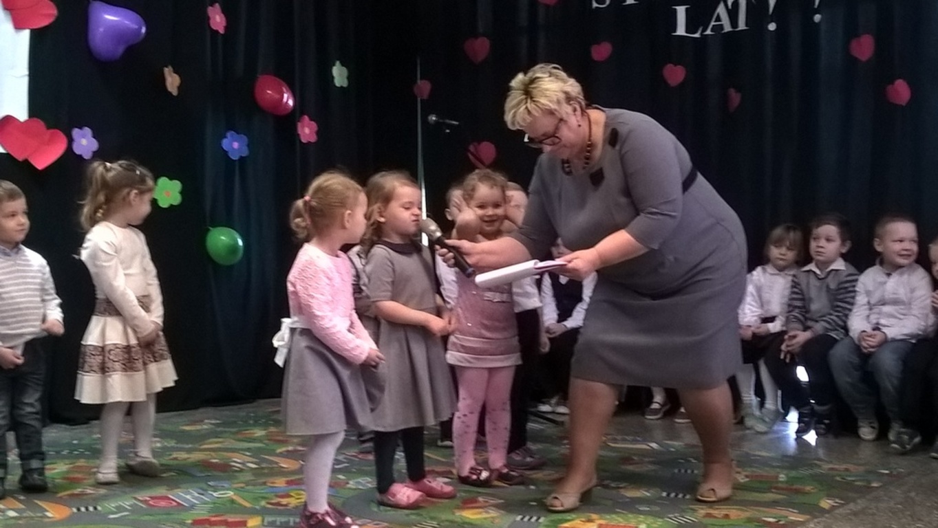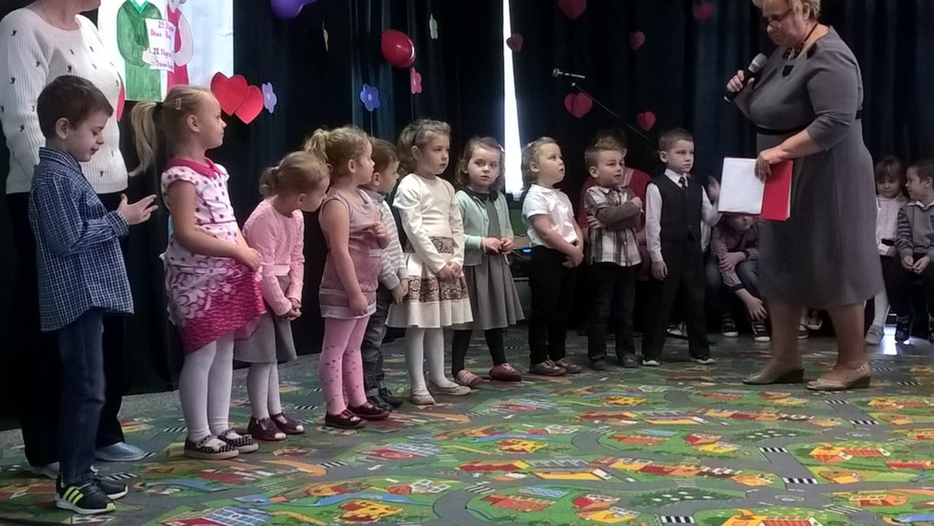 Wychowawcy p. Wanda Kwidzyńska i p. Karolina Paprocka i dzieci z grup „Słoneczka” i „Żabki” przygotowały i przedstawiły krótki program artystyczny, w skład którego weszły: wiersze, piosenki i taniec.