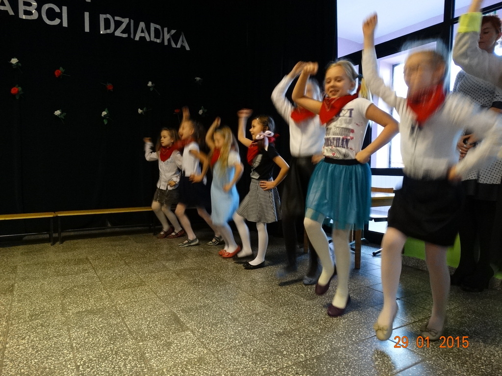 29 stycznia 2015, gościliśmy w naszej szkole babcie i dziadków naszych uczniów z klas I-III, na uroczystości z okazji ich święta. Wychowawczynie klas: p.Kamilla Stanicka kl. IA, p. Gabriela Bowgierd kl.IB, Anna Więczkowska kl.II, p. Bożena Tajchman kl. III, wspólnie ułożyły program składający się z tańców, piosenek, scenek aktorskich, skeczów i wierszy i rewelacyjnie przygotowały dzieci do występu. Babcie śmiały się i wzruszały. Po części artystycznej odbył się słodki poczęstunek dla naszych