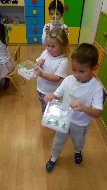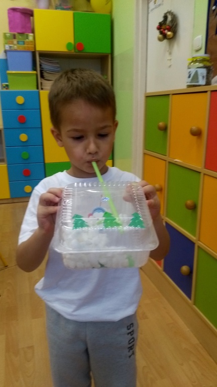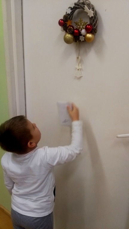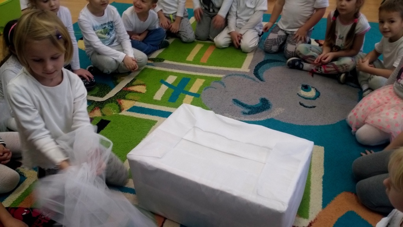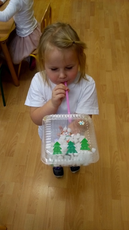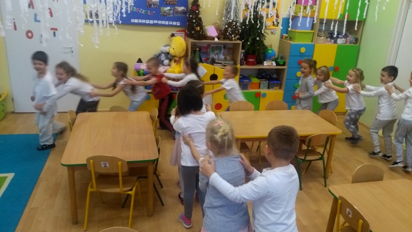07.12.2017 dzieci zastały białą dekorację sali, same też miały na sobie ubranka w tym kolorze. Na środku sali stał bałwanek, który zostawił dla przedszkolaków listy w ponumerowanych kopertach, zadania do wykonania i wielki prezent- niespodziankę, na którą dzieci dzielnie pracowały. Wszyscy czekamy na kolejny kolorowy dzień.