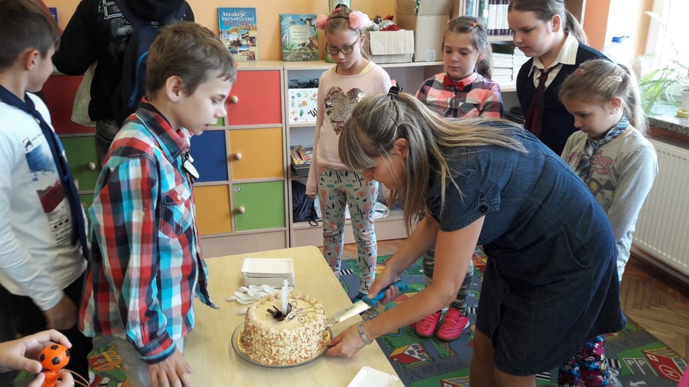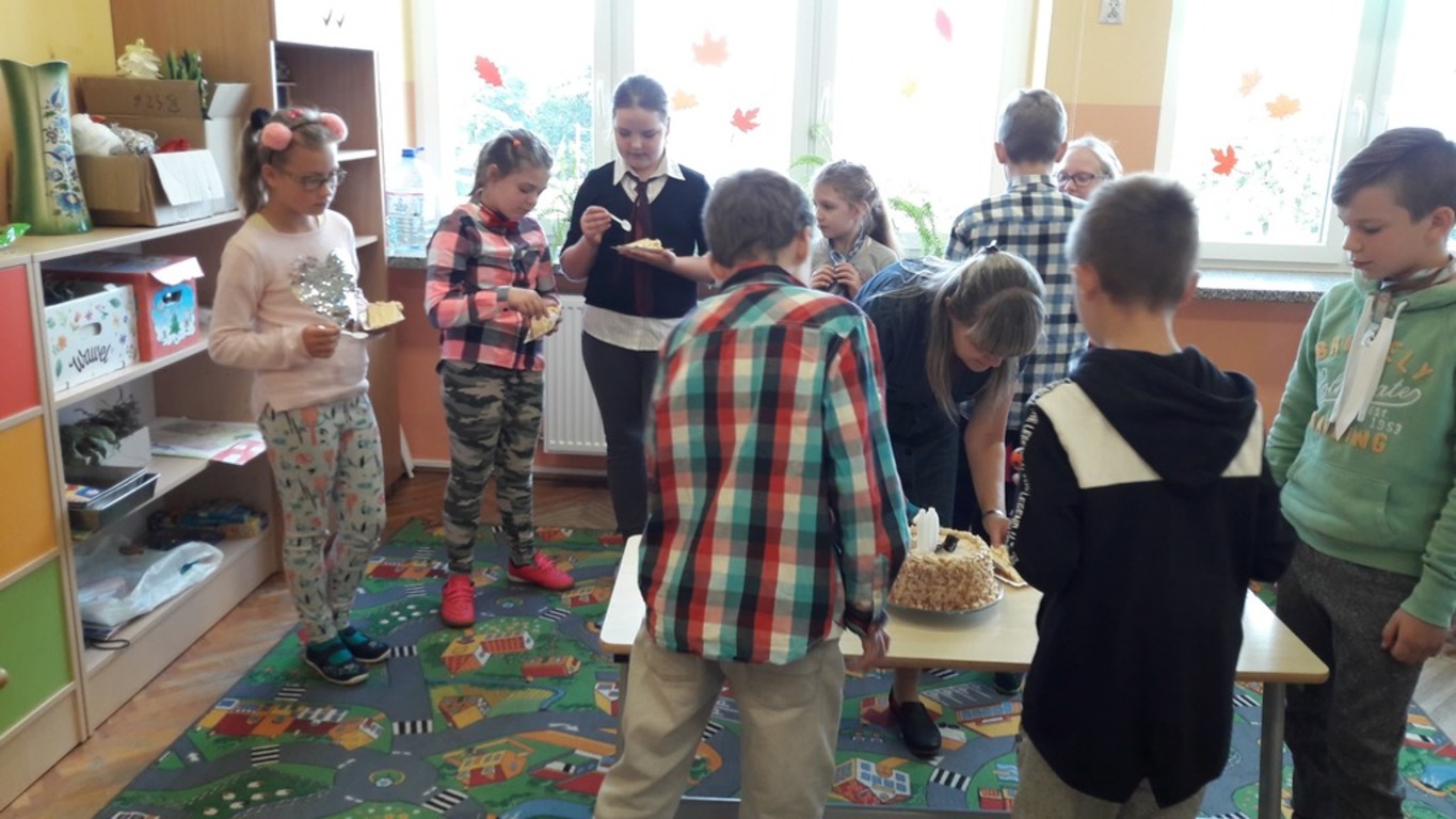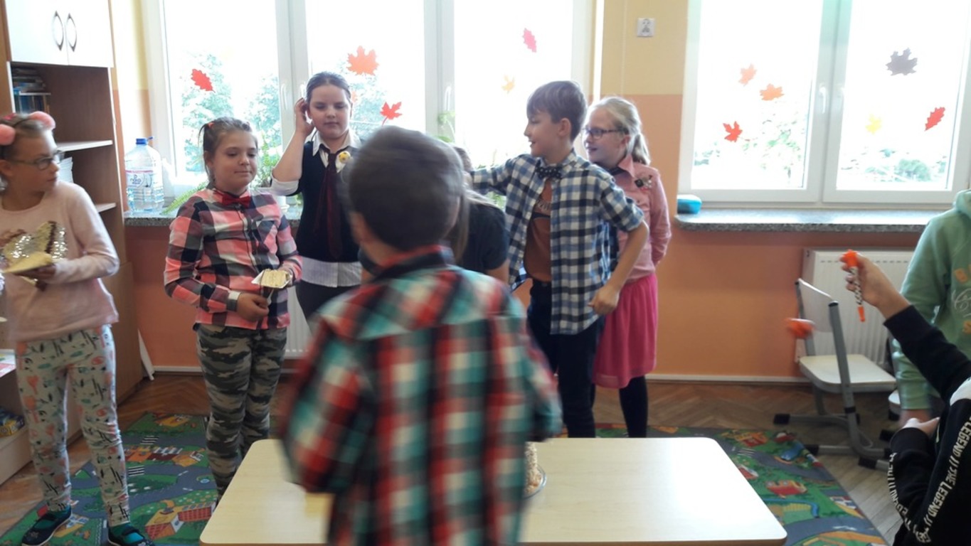 Dziś w klasie IV b dziewczynki przygotowały dla chłopców wspaniałą niespodziankę. Wraz z wychowawczynią i Panią Mariolą Wojtysiak, złożyły chłopcom życzenia i wręczyły upominki. W klasie dziś świętowaliśmy również drugą ważną uroczystość , Kacper Bala obchodził 10 urodziny. Z tej okazji poczęstował wszystkich pysznym tortem, a koledzy i koleżanki odśpiewali głośno "100 lat" ,wspaniałą imprezę zakończyliśmy wręczeniem Kacprowi prezentu.