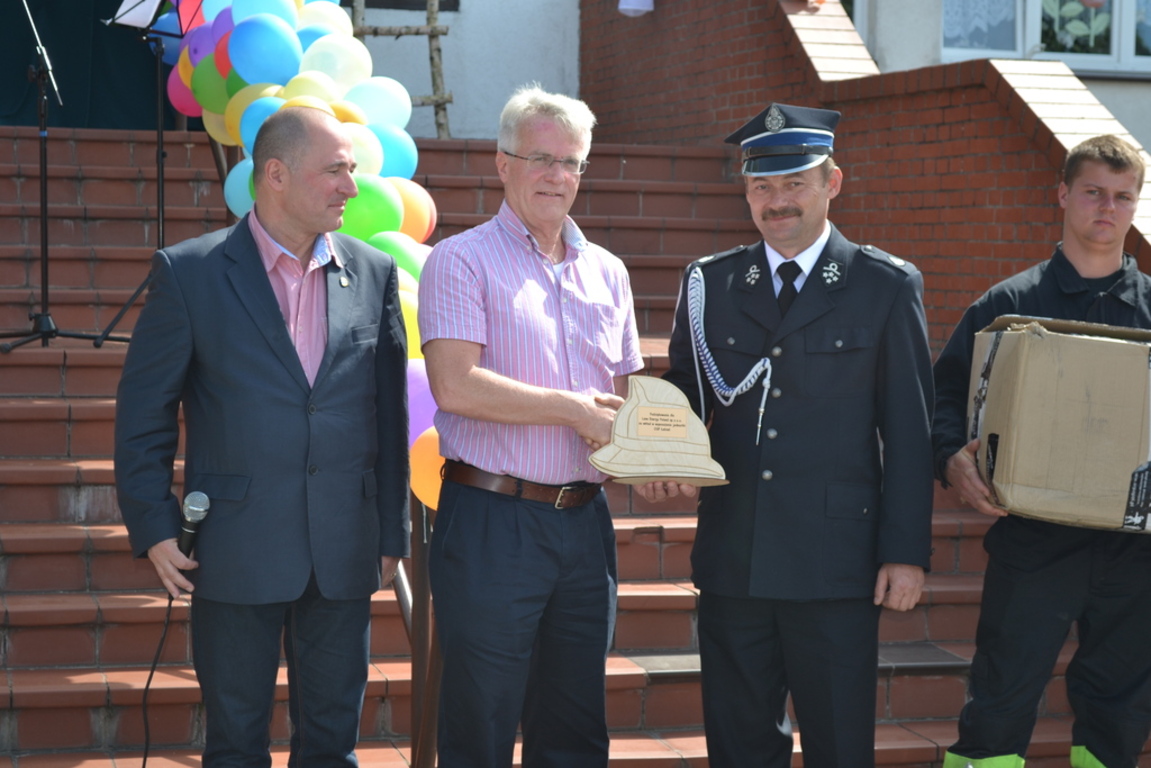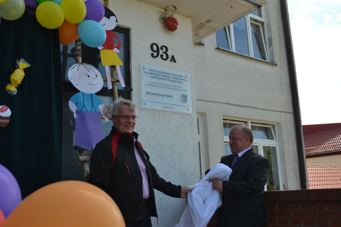 2 czerwca 2014 roku na długo pozostanie w pamięci uczniów z Zespołu Szkół im. Jana Pawła II w Łebieniu i wszystkich dzieci z miejscowości Łebień. Do tego dnia przygotowywaliśmy się długo i pracowicie. To było „ święto radości” dla wszystkich uczestniczących. Od samego rana widać było przy szkole przygotowania. Kolorowe balony, piękne dekoracje i kolorowe stroje dzieci były oznaką, że Dzień Dziecka właśnie się rozpoczął. Dzieci wraz z nauczycielami przygotowali piękny pokaz artystyczny dla gości, którzy nas w tym dniu odwiedzili, a byli to; przedstawiciele firmy Lane Energy Poland na czele z wiceprezesem Timothym Hardingiem, wójt gminy Nowa Wieś Lęborska Ryszard Wittke, proboszcz parafii Łebień ks. Jacek Spychalski, sołtys sołectwa Łebień Elżbieta Religa, przewodnicząca Rady Rodziców Elżbieta Jeka, przedstawiciele Ochotniczej Straży Pożarnej w Łebieniu. Pan Timothy Harding i wójt Ryszard Wittke odsłonili tablicę pamiątkową na szkole przypominającą o wielkim darze serca – wymianie okien w pomieszczeniach lekcyjnych szkoły sfinansowanej przez Lane Energy Poland i Gminę Nowa Wieś Lęborska. Prezes LEP wręczył również strażakom z Łebienia mundury strażackie. Uczniowie zaprezentowali gościom piękne tańce : polonez, belgijkę i tańce kaszubskie, popisy wokalne , wiersze po kaszubsku. Grupa uczniów ucząca się języka kaszubskiego w pięknych strojach kaszubskich otrzymała ogromne brawa, ale najwięcej emocji wzbudziły przedszkolaki, które w zielonych strojach zaśpiewały piosenkę Ufoludki. Po części artystycznej goście udali się na degustację potraw kaszubskich, a wszystkie dzieci na czekające ich atrakcje, a było ich wiele. Ogromne, kolorowe dmuchane zabawki były największą atrakcją tego dnia. Wszystkie dzieci mogły do woli bawić się na „dmuchawcach”. Pokazy Straży Pożarnej, Straży Granicznej z grupą uczniów z klasy mundurowej z Łeby oraz Ochotniczej Służby Ratowniczej z Lęborka były dodatkową atrakcją, a zarazem ważnym elementem edukacyjnym i wychowawczym. Lody, cukierki, kiełbaski oraz nagrody za udział w zawodach sportowych były dopełnieniem i tak wielu już atrakcji. Największą radością i podziękowaniem dla organizatorów były radosne twarze dzieci, ich uśmiech i ogromna ekspresja jaka towarzyszyła im w czasie całego dnia. Cieszy również fakt, że wśród uczestników zabawy były nie tylko dzieci z Zespołu Szkół w Łebieniu, ale również spora grupa dzieci z Łebienia i najbliższych okolic i duża grupa rodziców. Organizatorami całego przedsięwzięcia byli: Zespól Szkół im. Jana Pawła II w Łebieniu, Lane Energy Poland, Sołectwo Łebień z panią sołtys Elżbietą Religą, Wójt Gminy Nowa Wieś Lęborska Ryszard Wittke, Rada Rodziców przy Zespole Szkół w Łebieniu oraz Ochotnicza Straż Pożarna w Łebieniu. Dyrektor Zespołu Szkół w Łebieniu, nauczyciele i uczniowie dziękują wszystkim sponsorom, dzięki którym mogliśmy przeżyć tak piękny dzień: Lane Energy Poland, wójtowi gminy Nowa Wieś Lęborska Ryszardowi Wittke, Radzie Rodziców Zespołu Szkół w Łebieniu, Ochotniczej Straży Pożarnej w Łebieniu, Straży Granicznej w Łebie, Ochotniczej Służbie Ratowniczej w Lęborku, Leśnictwu Łebień, Hurtowni Agawa z Lęborka, Hurtowni Aut Jan Domaros z Lęborka, Hurtowni Familly Ice z Kobylnicy, Hurtowni „Dzióbek” z Bukowiny i Piekarni E. Głodowski z Leborka.