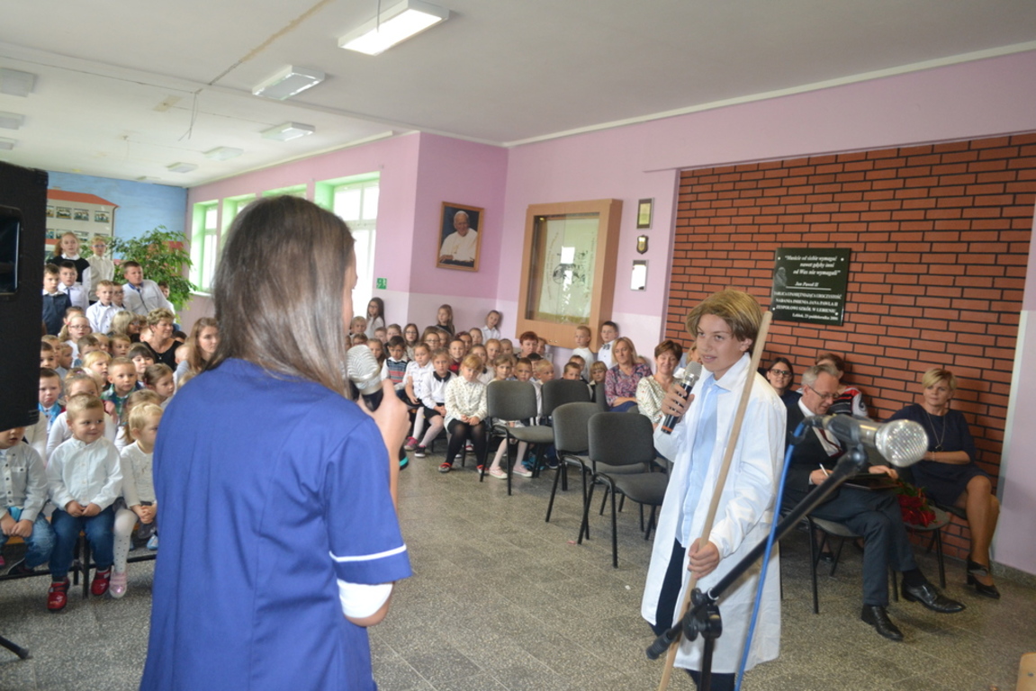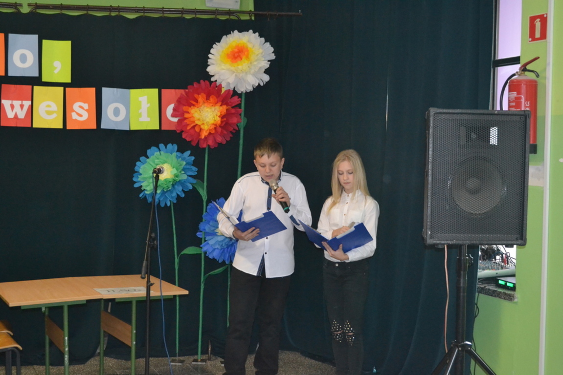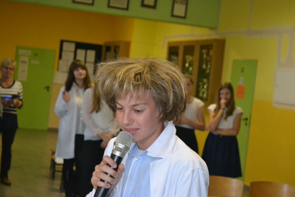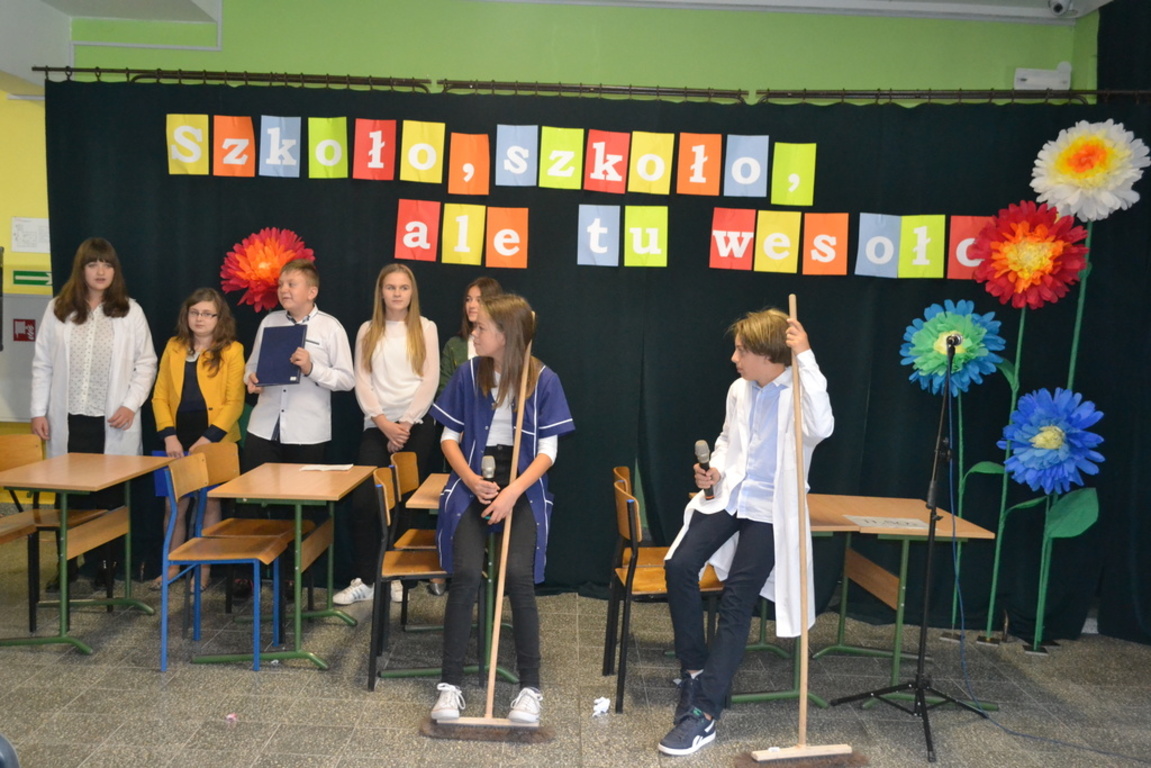 Dzień Edukacji Narodowej uczciliśmy występem przygotowanym przez uczniów klasy VIIa i VIIb. Nadarzyła się niepowtarzalna okazja, by uczniowie choć na chwilę mogli wczuć się w rolę nauczyciela języka polskiego, fizyki czy biologii. Młodzi aktorzy w swym programie przedstawili na wesoło rożne scenki z życia szkolnego. Wcielili się także w role uczniów, którzy trochę inaczej niż ich nauczyciele rozumieją naukę w szkole.