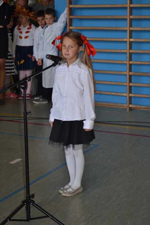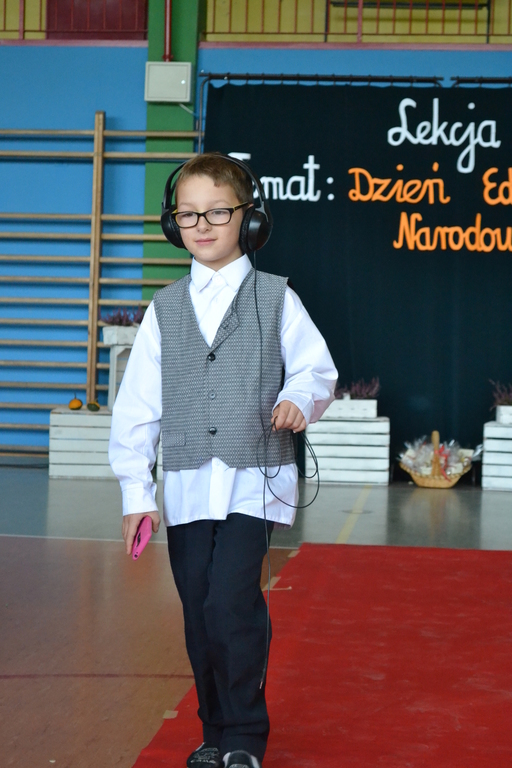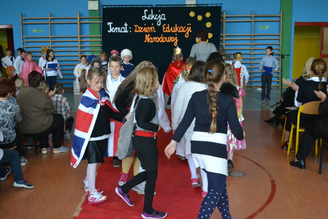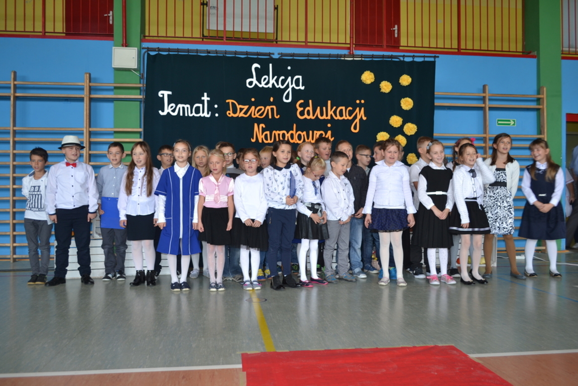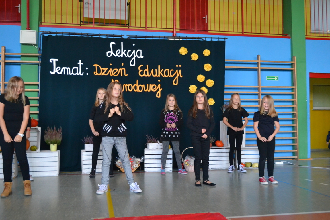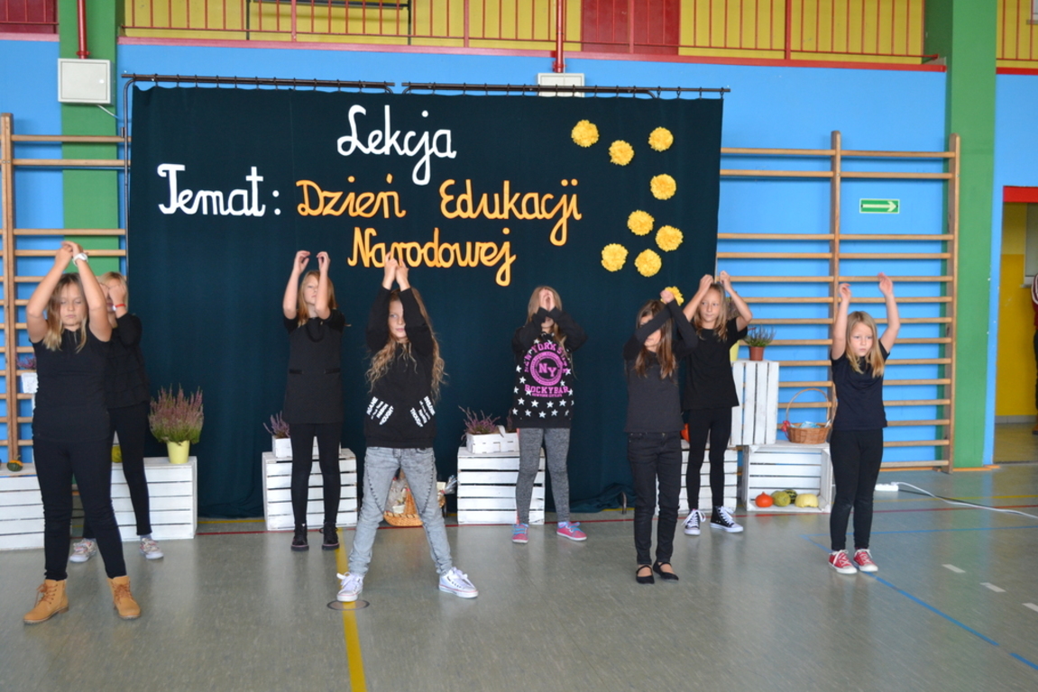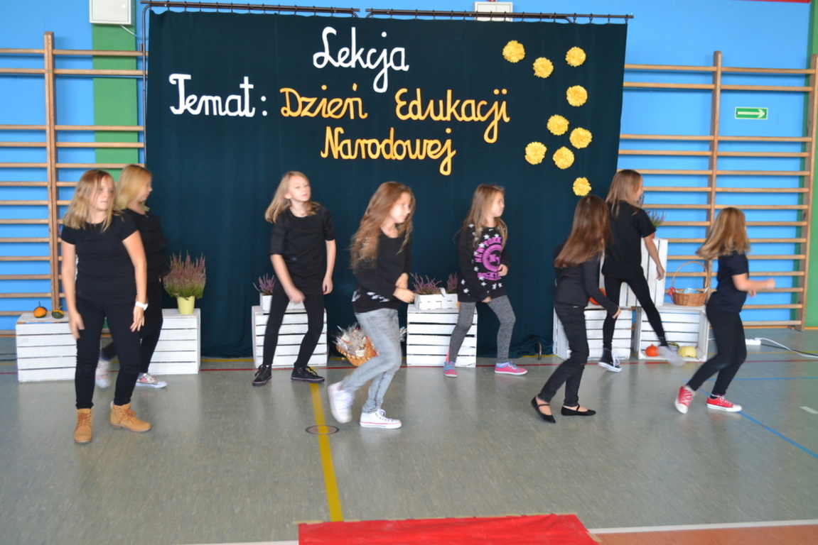 Dzień Edukacji Narodowej, nazywany tradycyjnie Dniem Nauczyciela, to święto wszystkich pracowników szkoły. W tym roku szkolnym, akademię na tą uroczystość przygotowały dzieci z klas drugich i trzecich szkoły podstawowej pod przewodnictwem swoich wychowawczyń. Występy dzieci były bardzo wesołe; zaprezentowały skecz o paniach sprzątających, pokaz mody nauczycielskiej oraz quiz, w którym zmagała sie Pani wicedyrektor z uczniem. Występ uświetniły dziewczynki z klasy IV tańcem nowoczesnym.