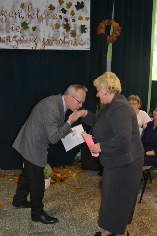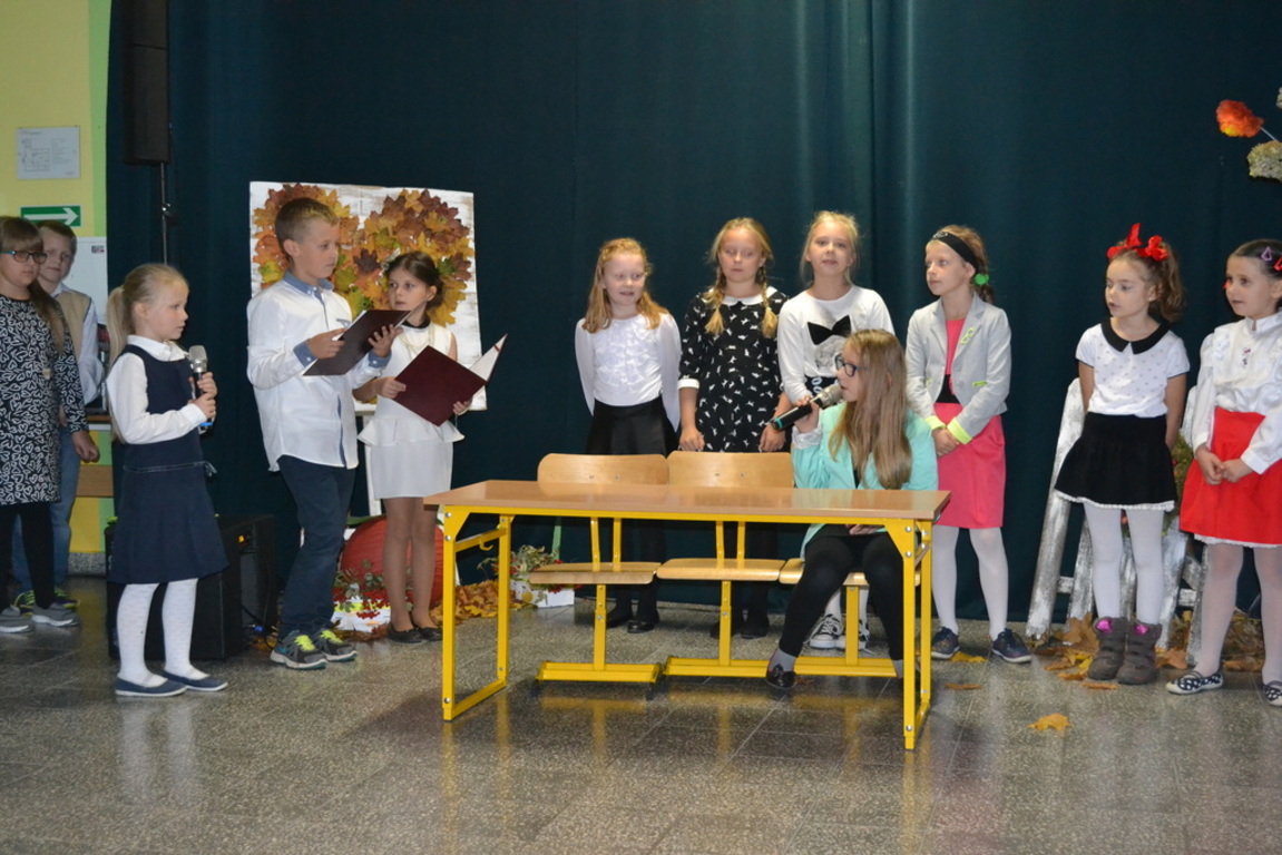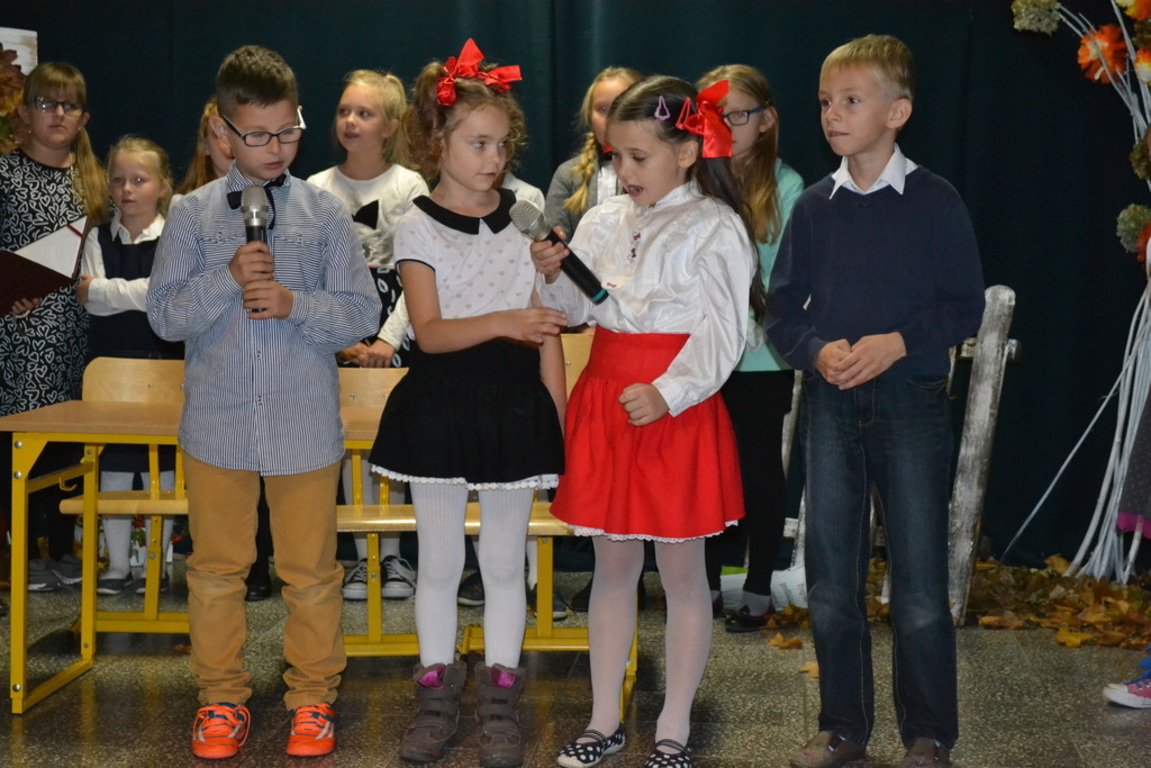 13 października świętowaliśmy w naszej szkole Dzień Edukacji Narodowej. Uczniowie pod kierunkiem pań: Marioli Wojtysiak, Kamilli Stanickiej i Gabrieli Bowgierd przygotowali piękną akademię między innymi scenki z życia szkoły, piosenki i tańce. Były to występy naszych najmłodszych uczniów i zostały nagrodzone ogromnymi brawami. Po występie przemówił Pan Dyrektor Krzysztof Wojtysiak, który oprócz życzeń, wręczył coroczne nagrody nauczycielom, którzy swoją pracą wyróżnili się w poprzednim roku szkolnym. Dyplomy dla nauczycieli, którzy w tym roku świętują swoje jubileusze 20, 25 i 30- lecia pracy zawodowej wręczyła prezes ZNP pani Renata Stolicka.