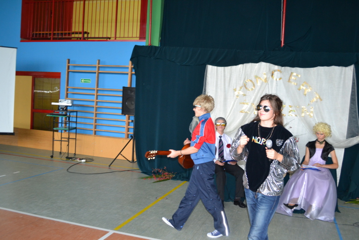W poniedziałek 13 października świętowaliśmy w naszej szkole Dzień Edukacji Narodowej. Uczniowie pod kierunkiem pań: Doroty Studzińskiej, Eweliny Gaffka i Ewy Chaciej przygotowali przepiękny koncert życzeń dedykowany poszczególnym pracownikom szkoły. Występy uczniów, którzy wcielili się w postaci znanych piosenkarzy i zespołów „ubawiły wszystkich do łez” i nagrodzone zostały ogromnymi brawami. Po występie przemówił Pan Dyrektor Krzysztof Wojtysiak, który oprócz życzeń, wręczył coroczne nagrody nauczycielom, którzy swoją pracą wyróżnili się w poprzednim roku szkolnym.
