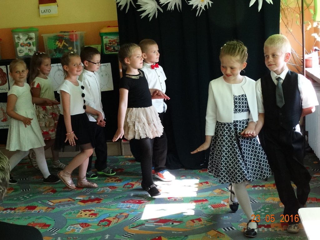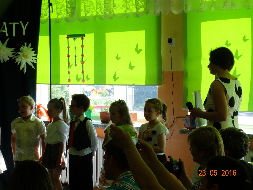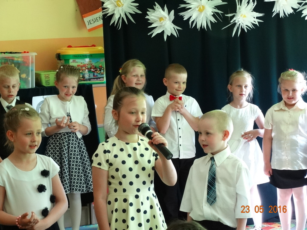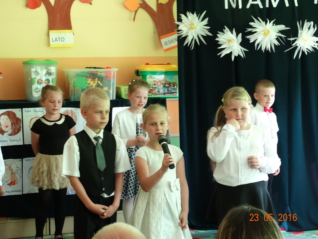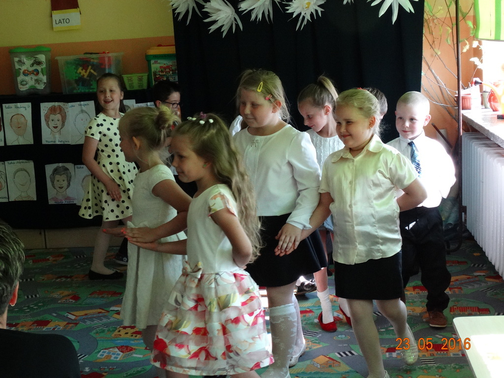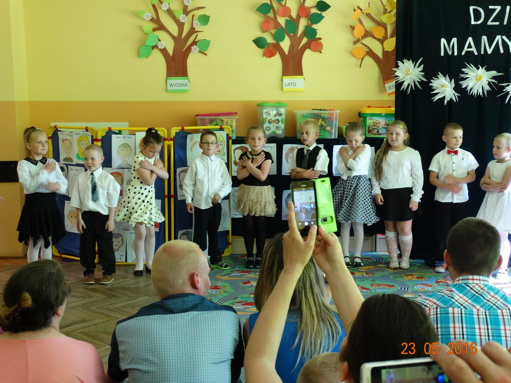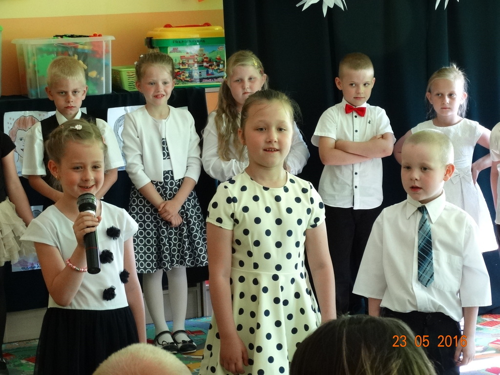 Dzieci z klasy 1a przygotowały uroczystość z okazji nadchodzących rodzinnych świąt: Dnia Mamy i Dnia Taty. Na dzień 23 maja 2016r. zaprosiły rodziców do szkoły, aby zaprezentować im pięknie wyuczone tańce, wierszyki i piosenki. Pierwszaki sprawiły się rewelacyjnie, a rodzicom zakręciła się łezka w oku ze wzruszenia. Po przedstawieniu, dzieci wręczyły rodzicom samodzielnie wykonane prezenty: dla mam - śliczne stroiki w szkle, a dla tatusiów - breloczek do kluczy z filcu. Zakończyliśmy