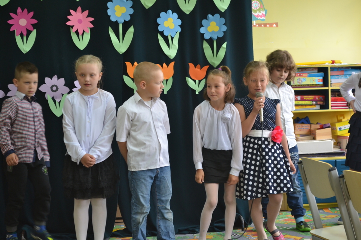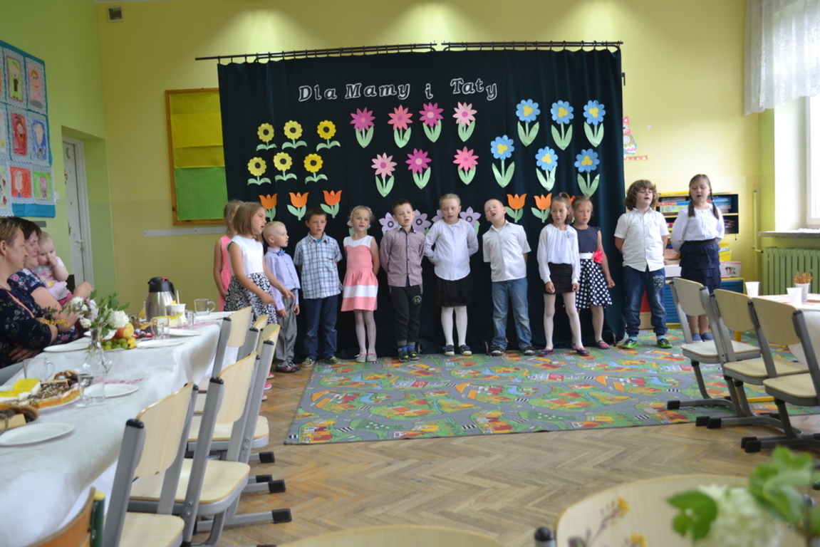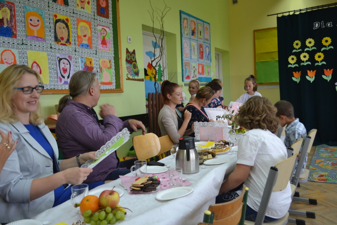 31 maja pierwszoklasiści postanowili uczcić wyjątkową uroczystością swoich wspaniałych rodziców, zapraszając do swojej klasy zarówno kochane Mamy jak i kochanych Tatusiów. Przybyli goście zasiedli przy pięknie nakrytym stole. Następnie rodzice obejrzeli montaż słowno-muzyczny pt. „ Dla Mamy i Taty”.