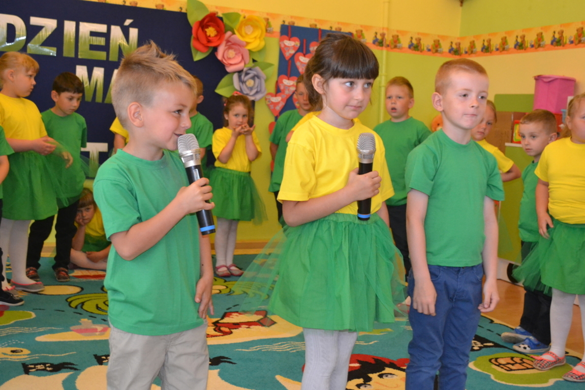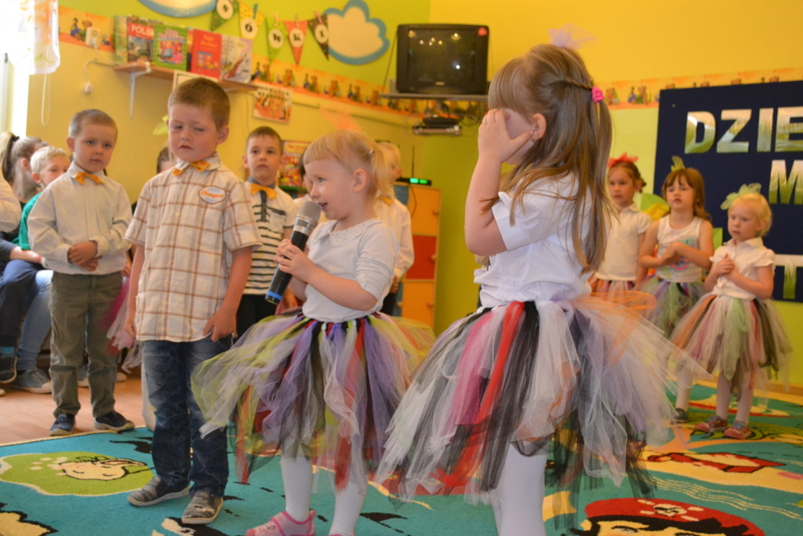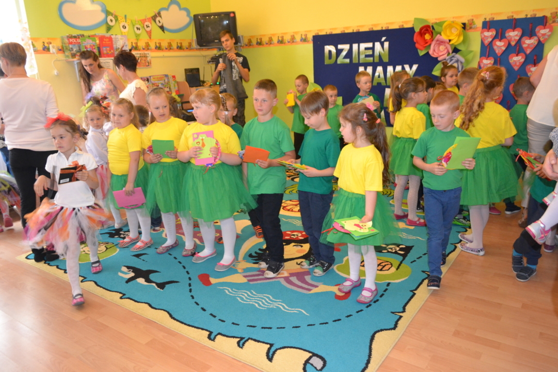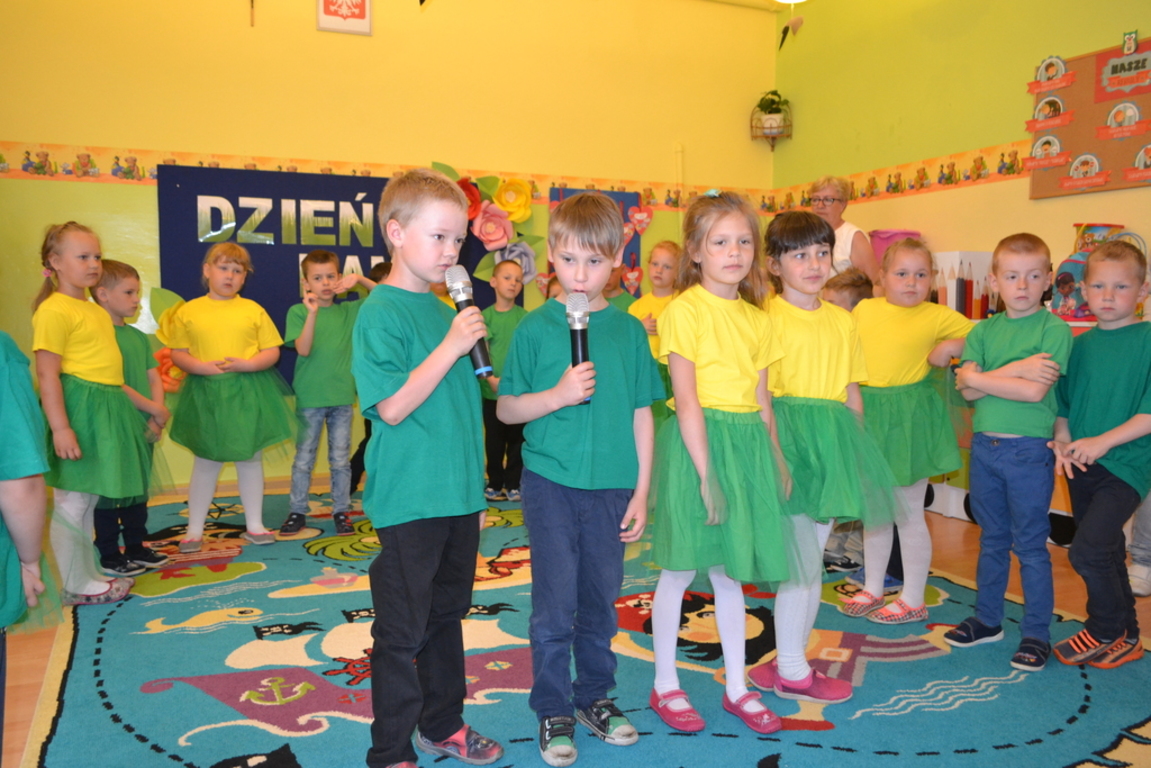 Dnia 29 maja w naszym przedszkolu odbyło się uroczyste spotkanie z okazji Dnia Mamy i Taty. Dzieci zaprezentowały swój występ artystyczny, dziękując swoim rodzicom za ich codzienną troskę i opiekę. Były życzenia, wiersze i piosenki, było wesoło i radośnie, chwilami wzruszająco… Po części artystycznej dzieci podarowały rodzicom upominki i wspólnie udali się na słodki poczęstunek.