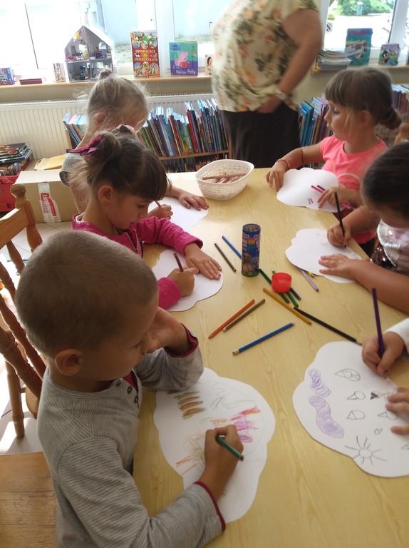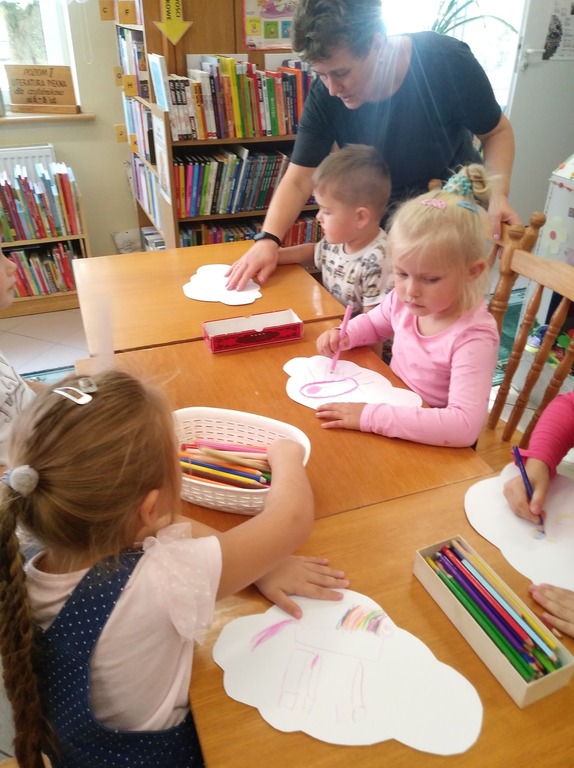 Swoje marzenia każde dziecko przeniosło na kartkę w kształcie chmurki. Po świetnej zabawie dzieci pełne wrażeń wróciły do swojej sali.