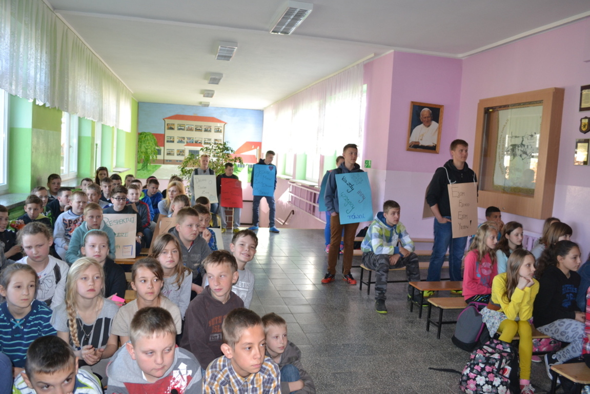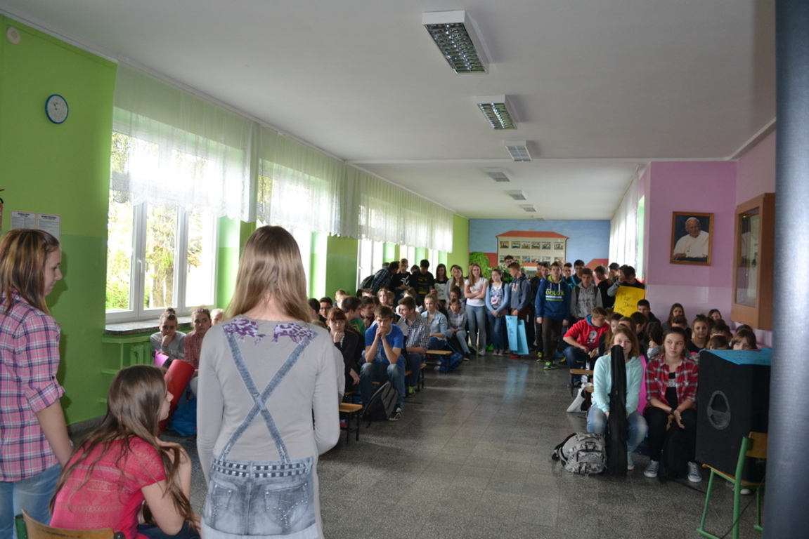 W tym dniu podczas apelu dla uczniów Szkoły Podstawowej i Gimnazjum zaprezentowano wszystkie przygotowane działania.