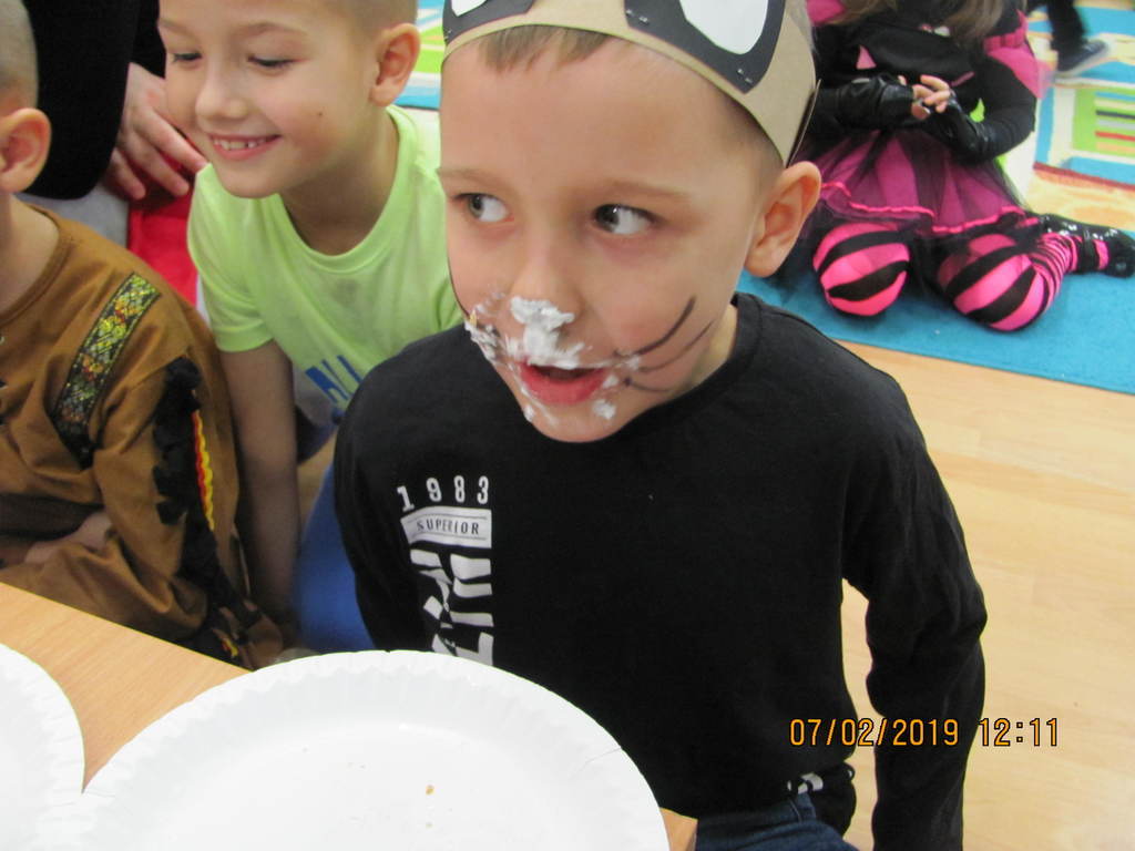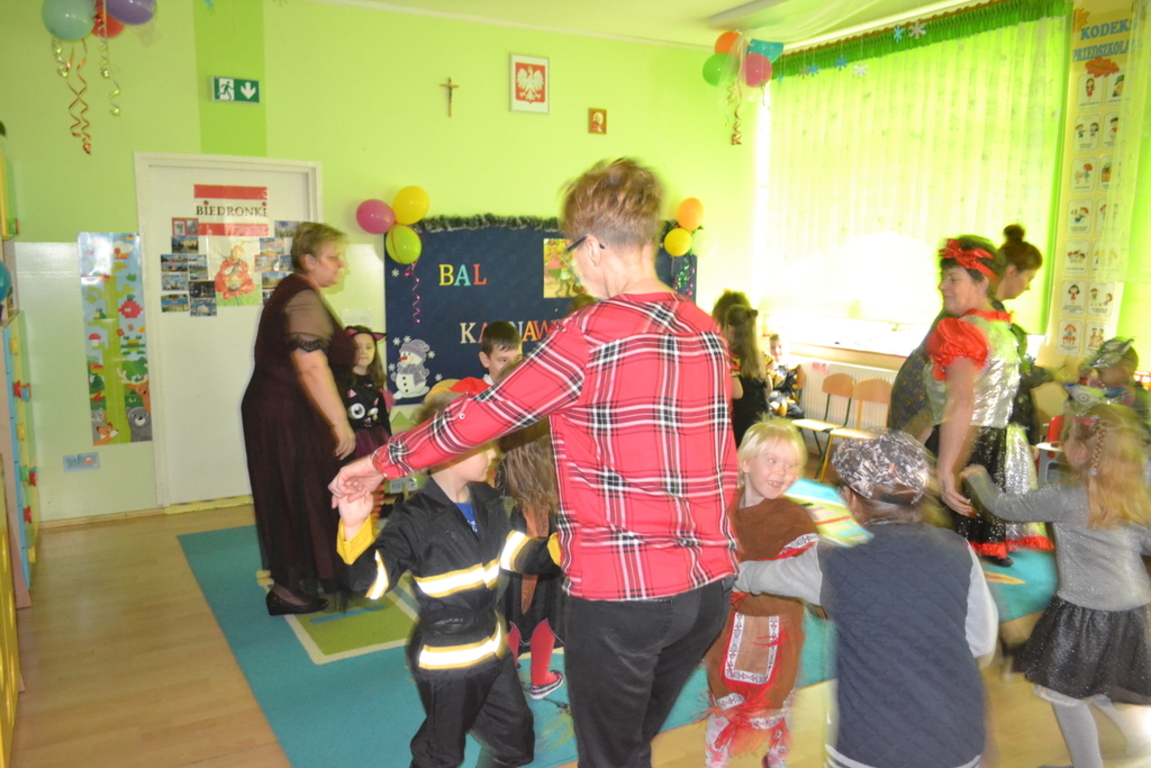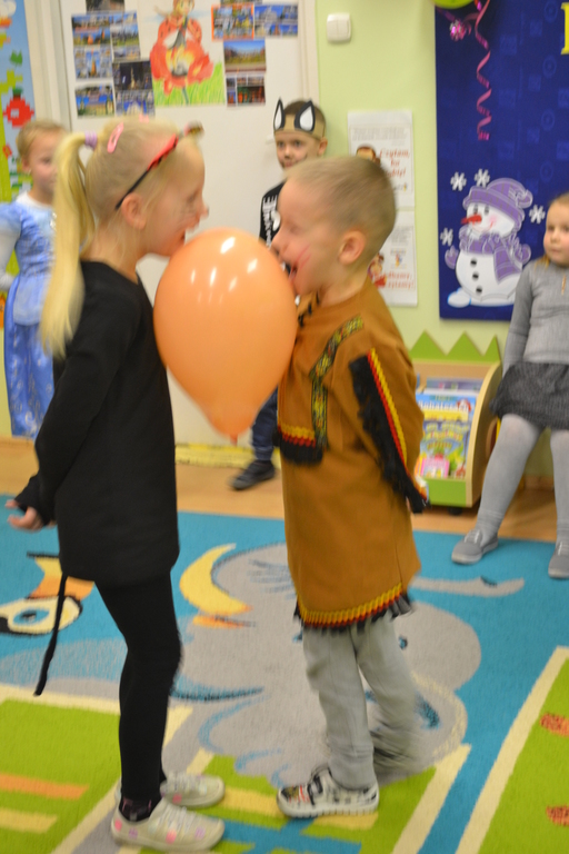 Na początku zabawy każde dziecko zaprezentowało swój strój i opowiedziało o nim. Tego dnia czekało na nas wiele zabaw i konkursów. Dzieci chętnie uczestniczyły w tańcach i z wielką ochotą brały udział w rywalizacjach, które były nagradzane . W przerwach pomiędzy zabawami dzieci odpoczywały przy stole, gdzie czekał na nich słodki poczęstunek przygotowany przez rodziców.