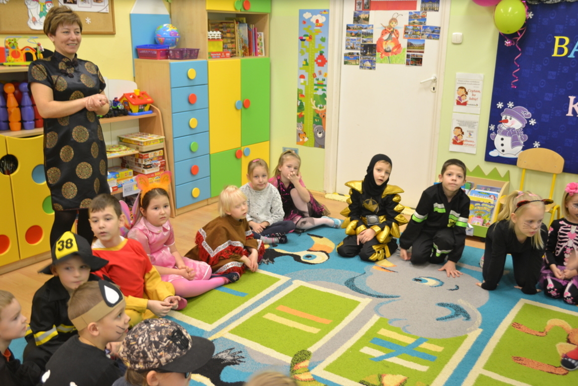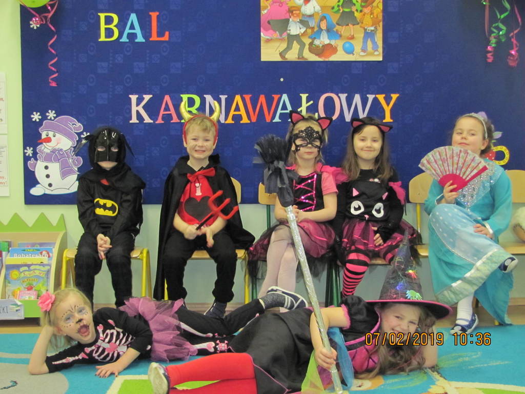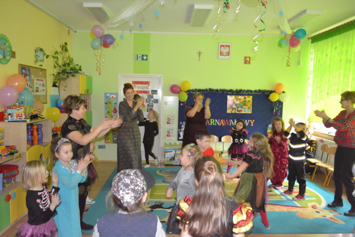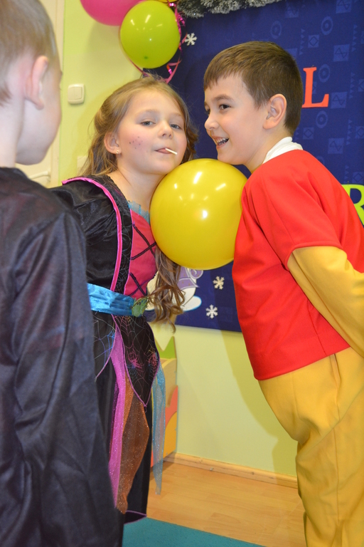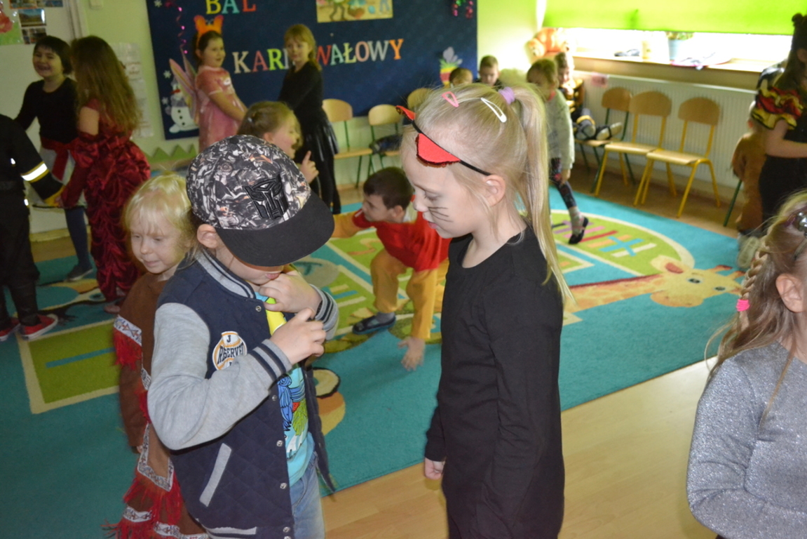 Na początku zabawy każde dziecko zaprezentowało swój strój i opowiedziało o nim. Tego dnia czekało na nas wiele zabaw i konkursów. Dzieci chętnie uczestniczyły w tańcach i z wielką ochotą brały udział w rywalizacjach, które były nagradzane . W przerwach pomiędzy zabawami dzieci odpoczywały przy stole, gdzie czekał na nich słodki poczęstunek przygotowany przez rodziców.