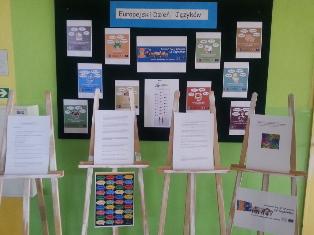 W tym dniu w naszej szkole można było obejrzeć bogatą ekspozycję przedstawiającą ciekawostki o językach. Dowiedzieliśmy się m.in. ile języków funkcjonuje w Europie i jak są ze sobą spokrewnione, poznaliśmy najdłuższe europejskie słowo, dowiedzieliśmy się jak witają się w różnych krajach, a z zabawnych plakatów odczytywaliśmy odgłosy zwierząt. Ku naszemu zaskoczeniu prosiaczek wg Holendrów wydaje odgłos „knorknor”, a wg Szwedów „nöffnöff” J. Odbyła się również interaktywna lekcja językowa, na której to uczniowie mogli zweryfikować swoje sprawności językowe rozwiązując quizy i bawiąc się w gry pamięciowe, ponadto zapoznali się z językiem migowym, z palindromami, idiomami i łamańcami językowymi w różnych krajach. Dowiedzieliśmy się także jakie języki znają celebryci.