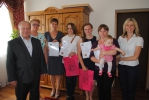 Podczas uroczystego spotkania w Urzędzie Gminy, Wójt Gminy wręczył naszym najlepszym absolwentkom nagrody rzeczowe oraz listy gratulacyjne dla rodziców. Następnie od wszystkich przybyłych gości otrzymały gratulacje i życzenia pomyślności i dalszych sukcesów w nauce.