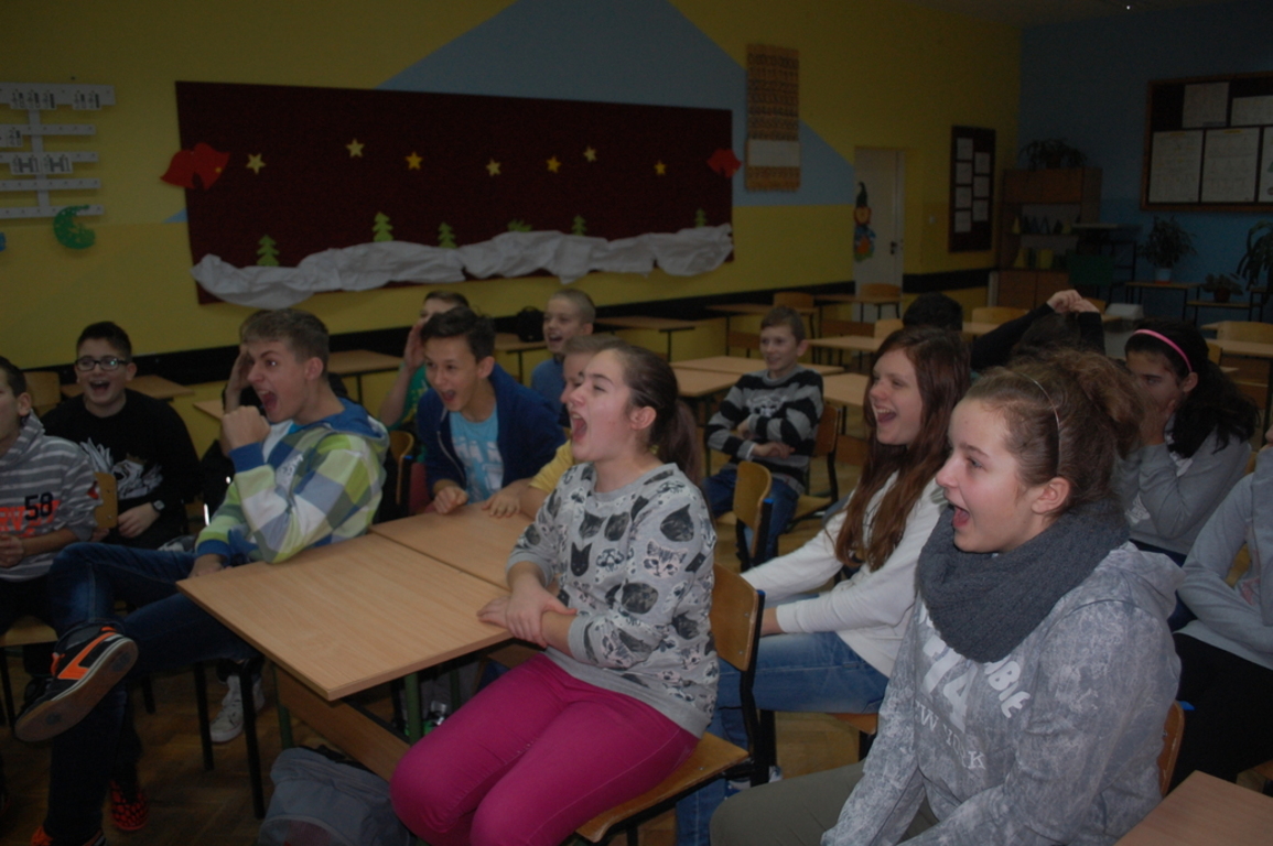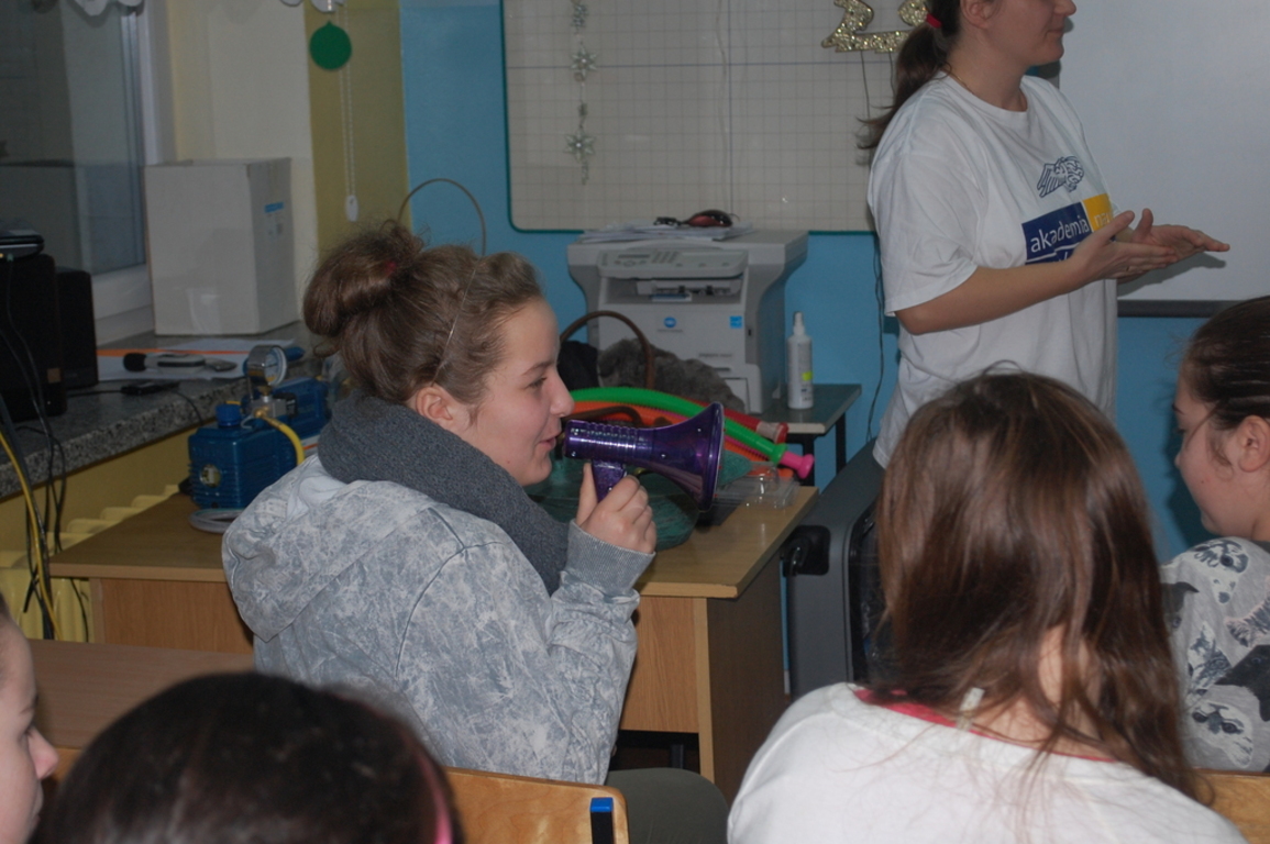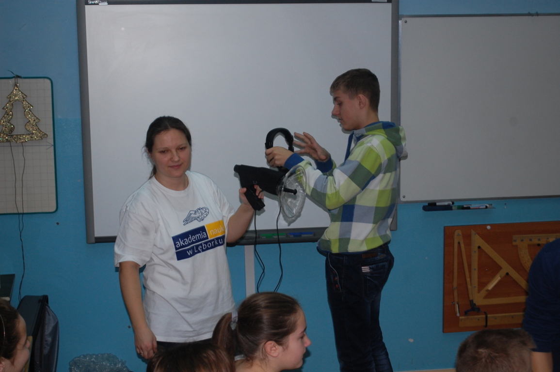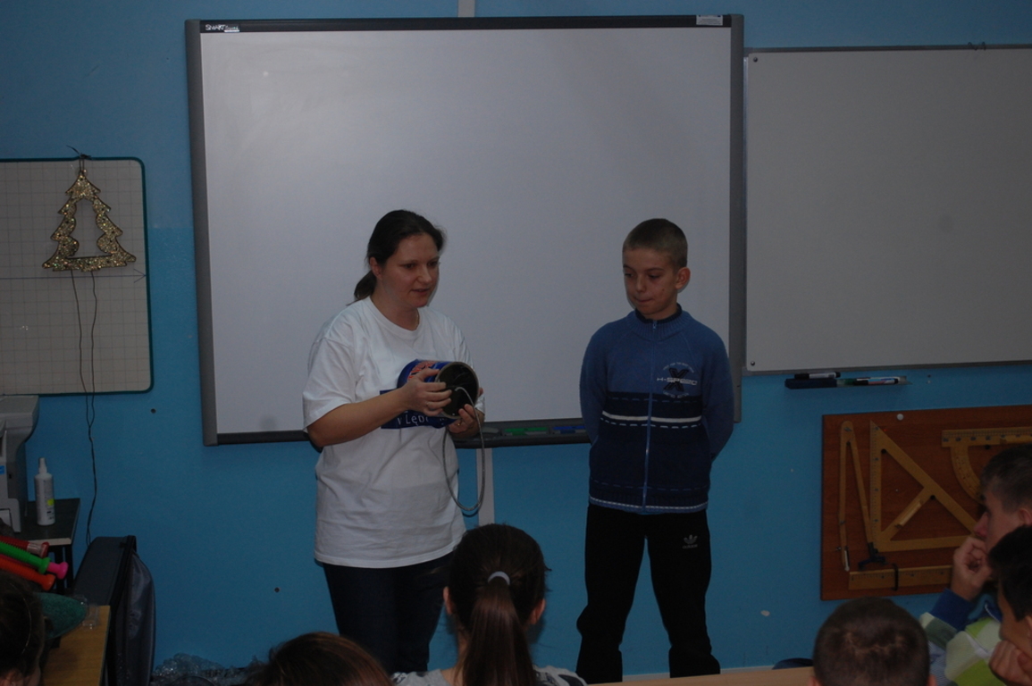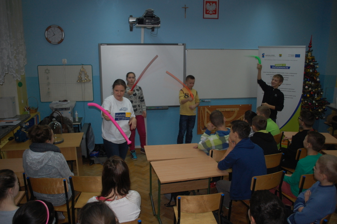 Dnia 18 grudnia 2014 roku w naszej szkole w ramach projektu "Nauka z przyjemnością" odbyły się zajęcia - Fizyka dla smyka. Wzięli w nich udział uczniowie z klas IV - VI Szkoły Podstawowej. Dzieci dowiedziały się m. in. jak powstaje tęcza, jak działa i do czego służy peryskop. Przez specjalne okulary zobaczyły jak widzi mucha. Przeprowadzono szereg eksperymentów dotyczących optyki i iluzji optycznych. Uczniowie nauczyli się wywoływać burzę, mierzyli poziom hałasu i mówili "kosmicznym " głosem. Zajęcia okazały się bardzo ciekawe, uczniowie już nie mogą doczekać się następnych.