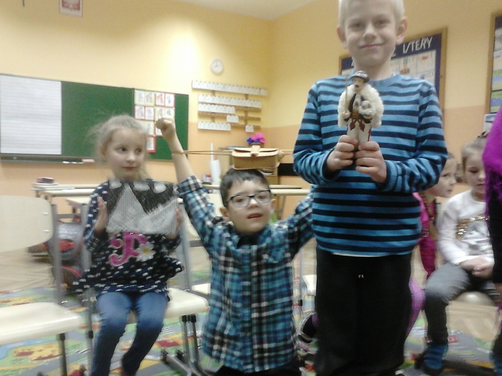 Pierwszaki poznały literkę "g" jak góry, z tej okazji, mogliśmy poznać troszkę klimat naszych polskich Tatr. Dzieci dowiedziały się jak żyją górale, z czego robią tradycyjne ubrania, potrawy. Wysłuchały legend podhalańskich, a nawet potańczyły do muzyki góralskiej, którą prezentują zespoły: "Zakopower", "Future folk" i Golec uOrkiestra". Zabawa była przednia i każdy pierwszak ma teraz ochotę na wycieczkę w góry.