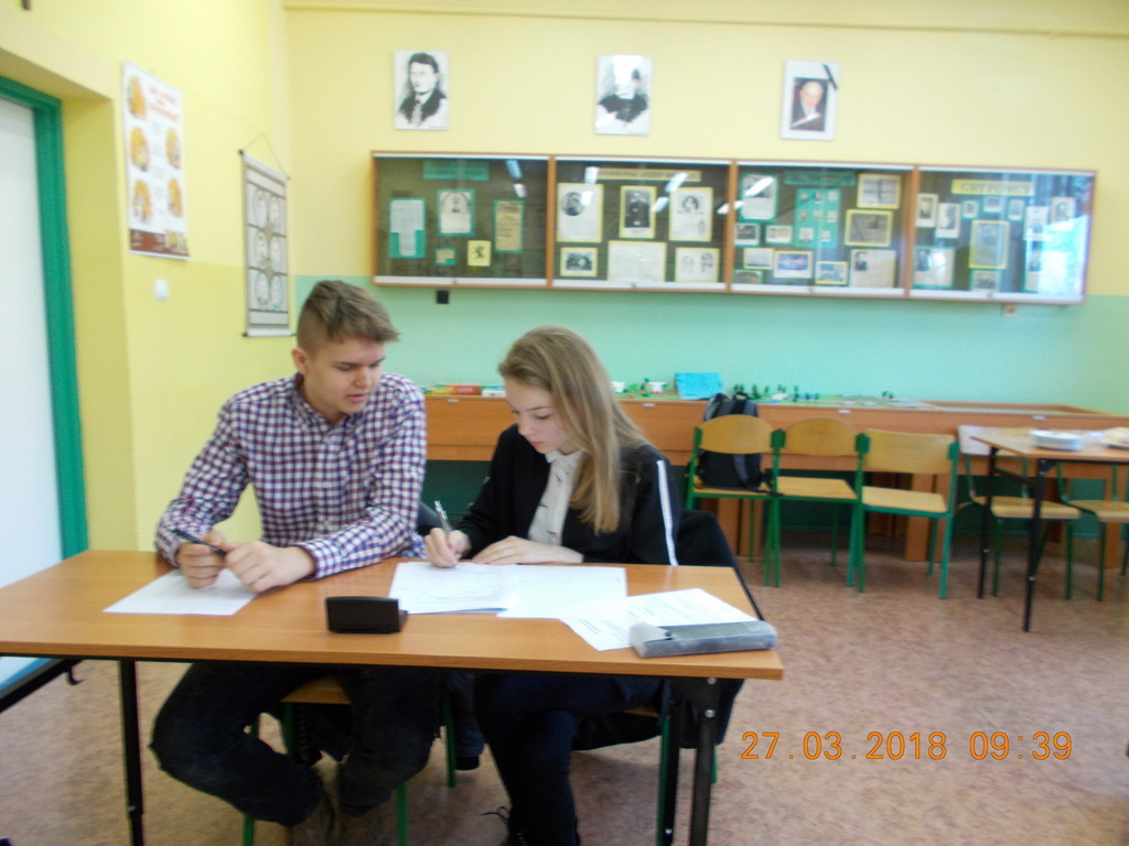 27 marca 2018 r. odbył się Gminny Konkurs Geograficzny „ Obliczenia w geografii”. Naszą szkołę reprezentował dwuosobowy zespół w składzie: Zuzanna Wrzesień z II B i Jakub Kossewski z III B gimnazjum. Uczniowie Ci wykazali się dużą wiedzą i umiejętnościami w zakresie geografii, matematyki i zajęli I miejsce.