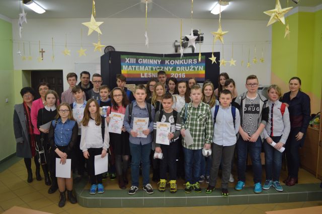 9 marca 2016 r. w Zespole Szkół w Leśnicach odbył się - już po raz trzynasty - Gminny Konkurs Matematyczny Drużyn. W konkursie tym wzięli udział uczniowie wszystkich szkół podstawowych i gimnazjów naszej gminy. Odbył się on z inicjatywy i przy współudziale Gminnego Zespołu Nauczycieli Matematyki gminy Nowa Wieś Lęborska.