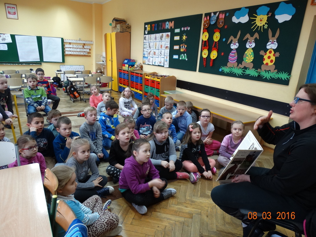 Dzisiaj klasa Ia i Ib gościła panią Karolinę Barszcz. Zaprosiliśmy na lekcję panią Karolinkę, ponieważ jest właścicielką koni, kocha te zwierzęta i potrafi pięknie o nich opowiadać. Pierwszaki na ostatnich lekcjach dużo rozmawiają o koniach, ich zwyczajach o hipoterapii i dziś mieli okazję posłuchać o tych nadzwyczajnych zwierzętach od profesjonalisty. Pani Karolina brała udział w zawodach jazdy konnej od małej dziewczynki; zna się na nich i opiekuje się nimi. Pokazała dzieciom jak wygląda