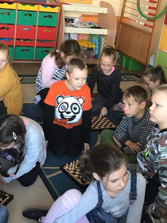 W poniedziałek 21 października uczniowie klasy II i III wspólnie uczyli się i poznawali zasady - jednej z najstarszych gier strategicznych . Szachy – w przeszłości często rozgrywane na dworach królewskich okazały się bardzo atrakcyjnym wyzwaniem dla naszych uczniów .