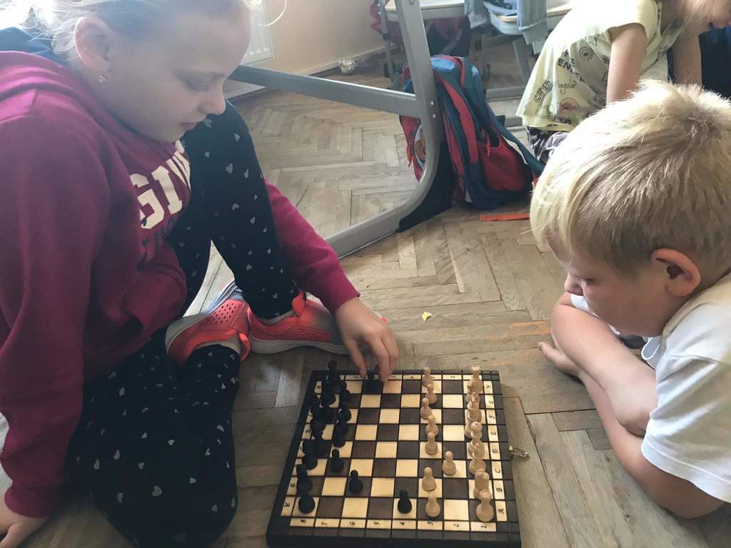 Najpierw było przypomnienie zasad gry, sposobów poruszania się poszczególnych figur …. potem uczniowie próbowali swoich sił rozgrywając już pierwsze pojedynki szachowe. Gra choć na pozór wydaje się dość skomplikowana, bardzo spodobała się uczniom. Z pewnością niedługo powtórzymy zajęcia i będziemy doskonalić nasze umiejętności, by w przyszłości wyłonić prawdziwych pasjonatów i mistrzów szachowych.